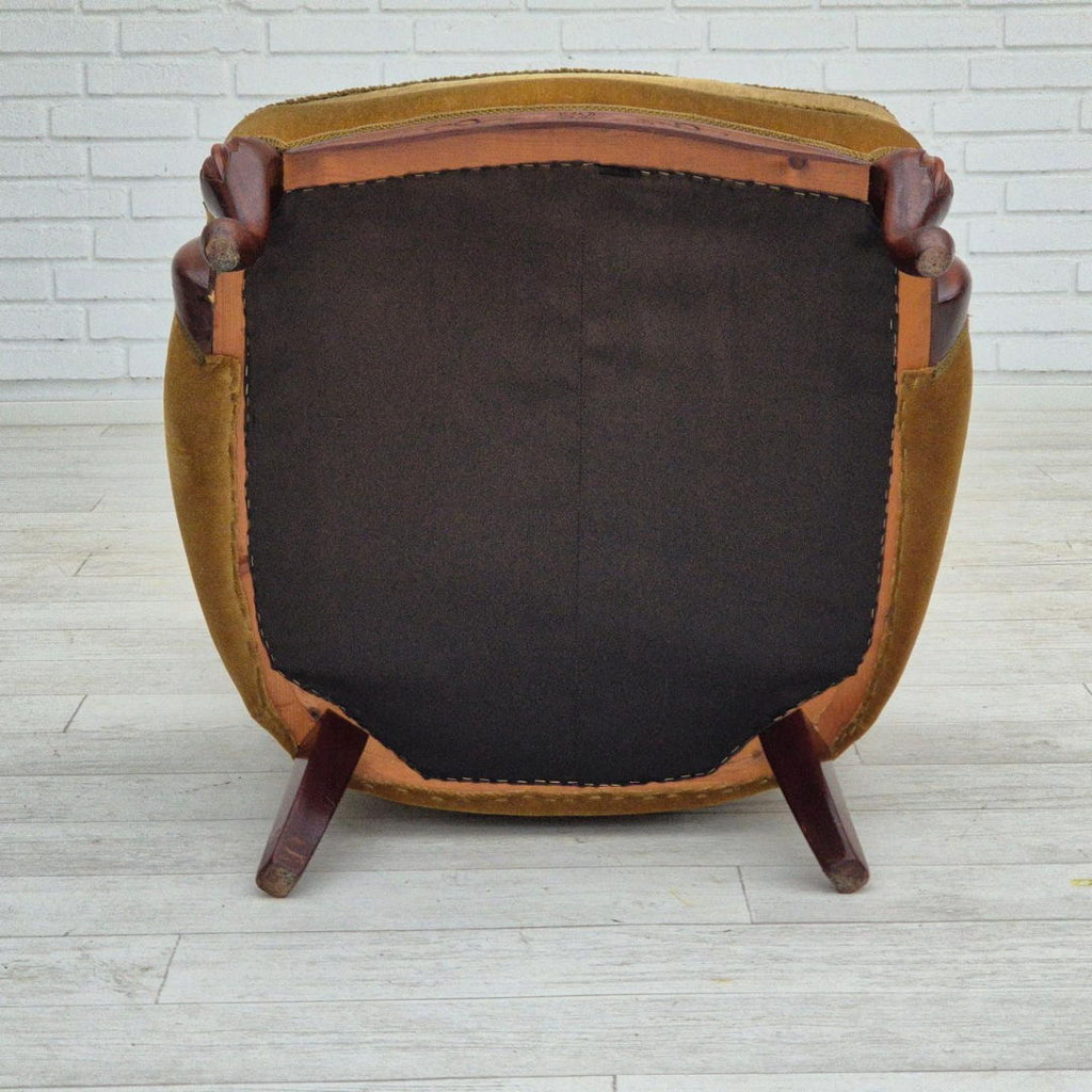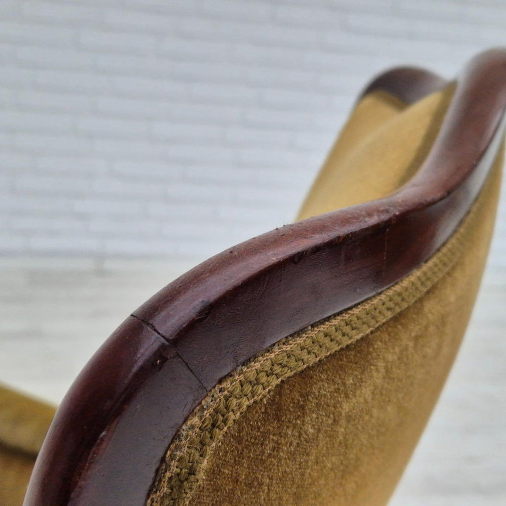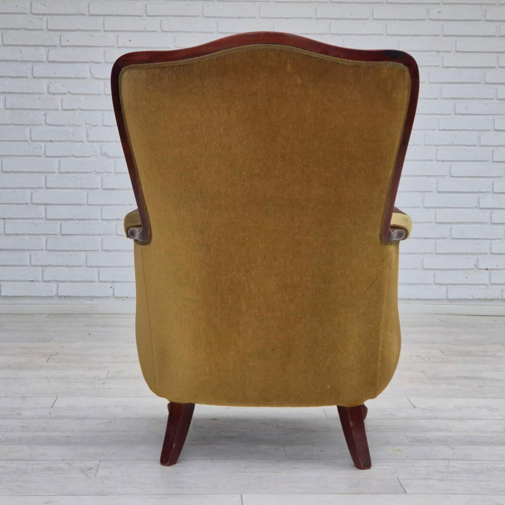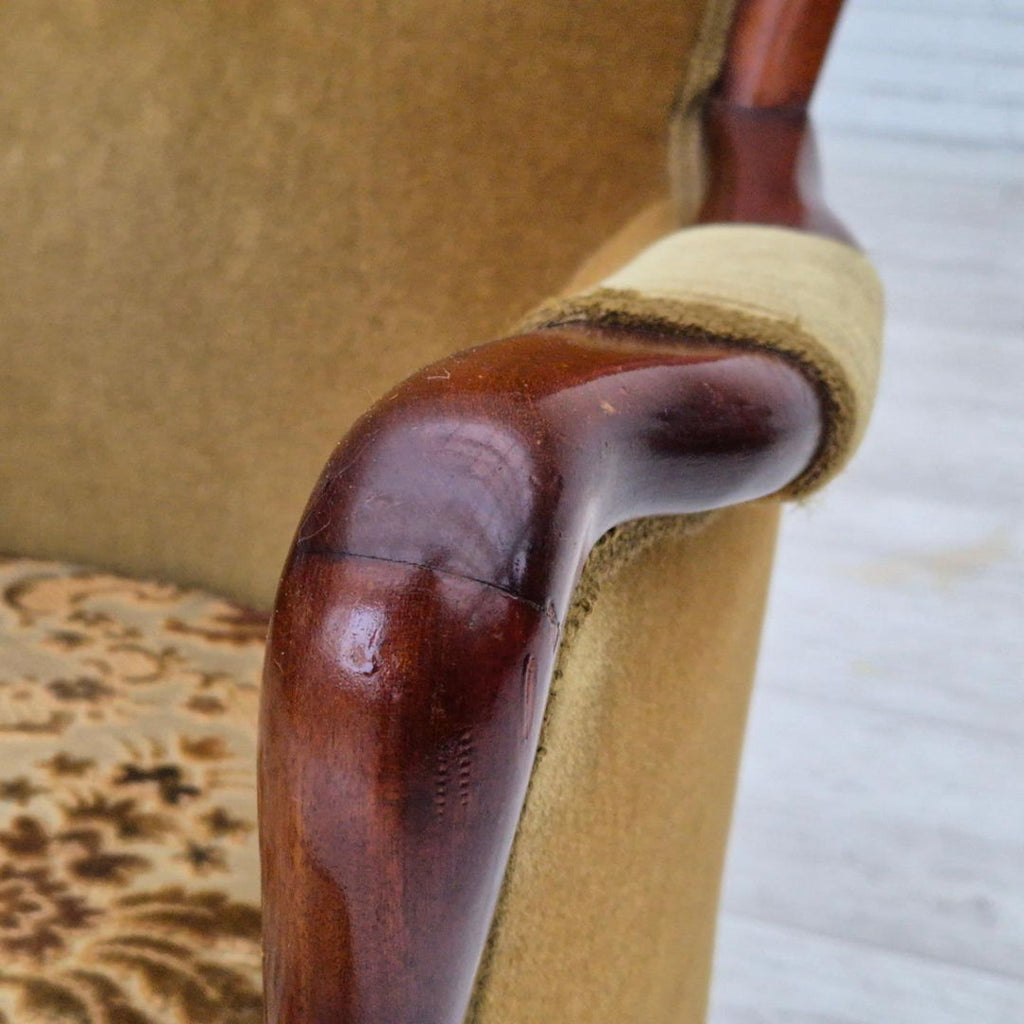 1950s, Danish highback armchair, original upholstery, green velour.