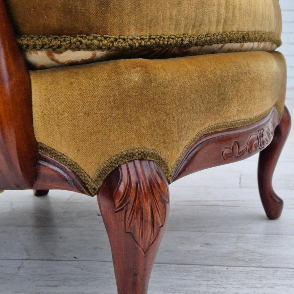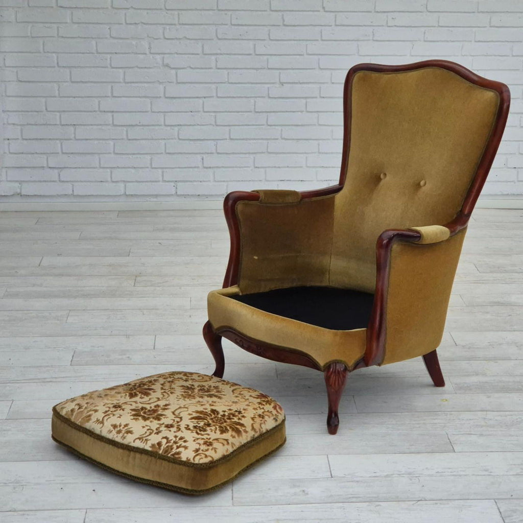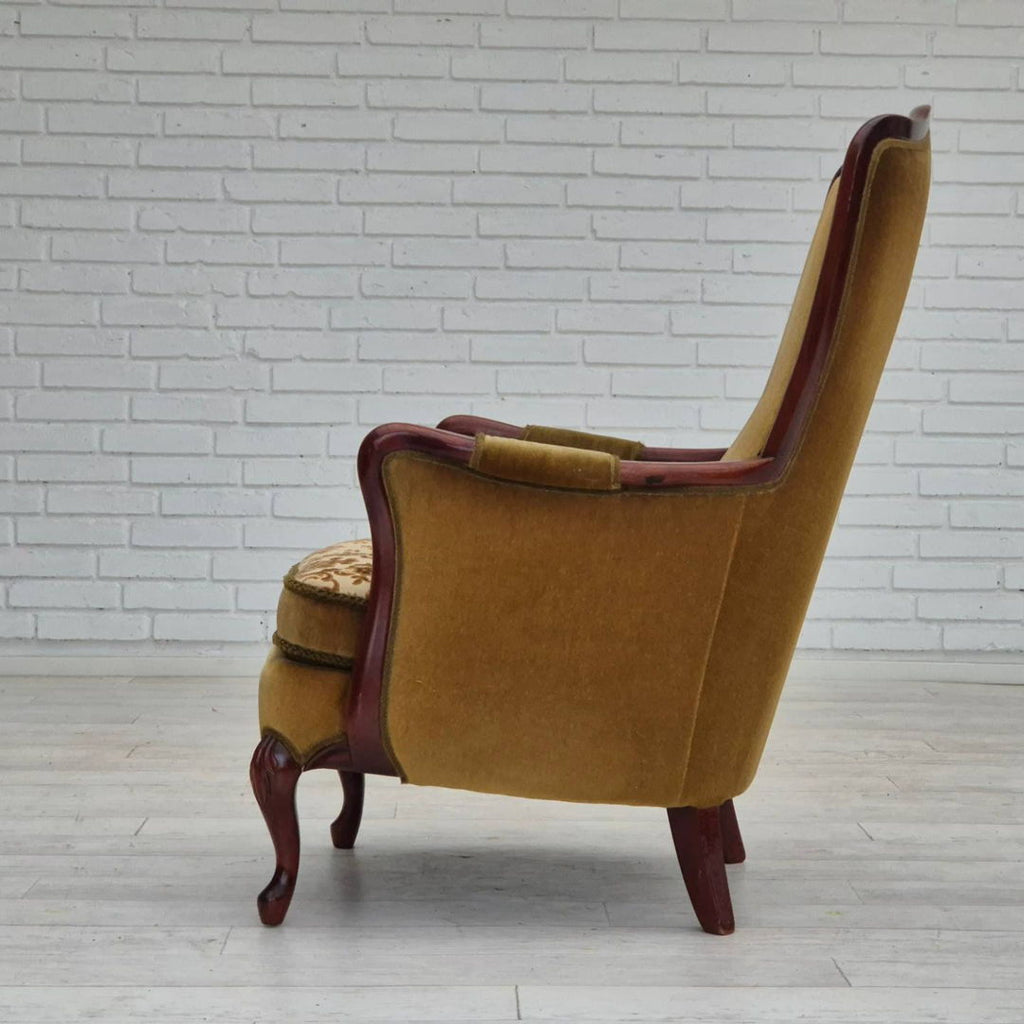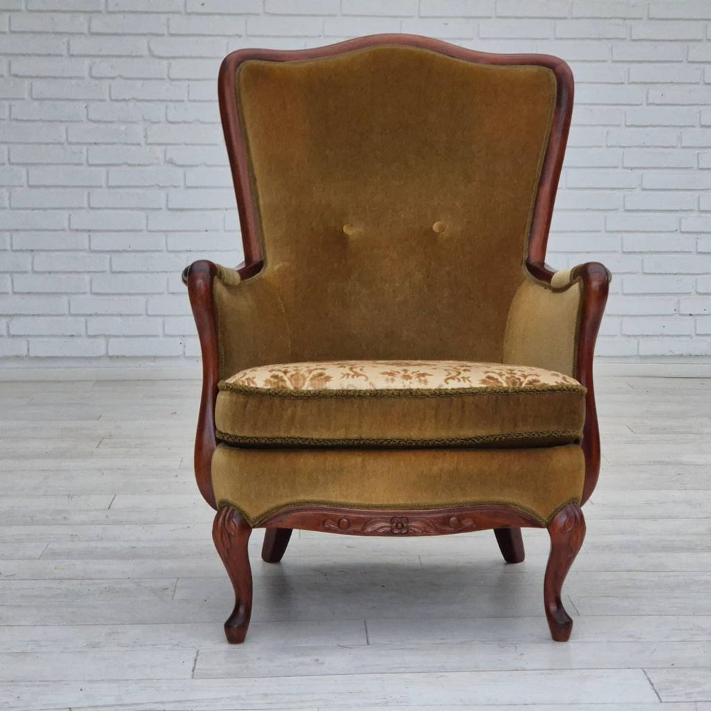 1950s, Danish highback armchair, original upholstery, green velour.