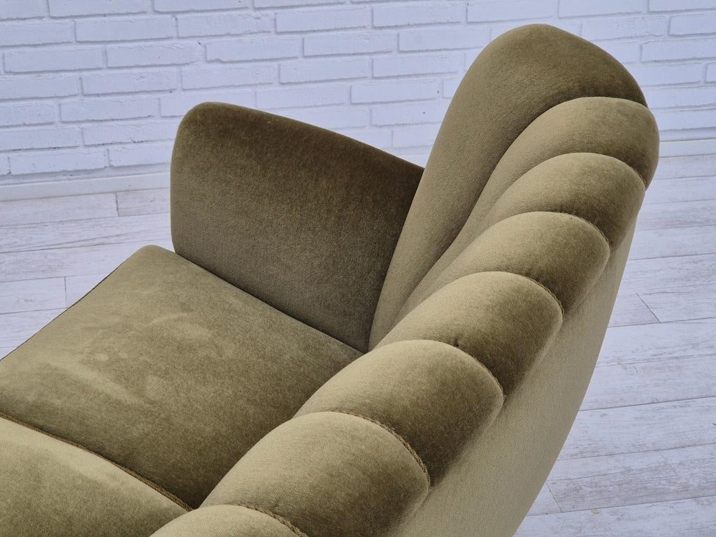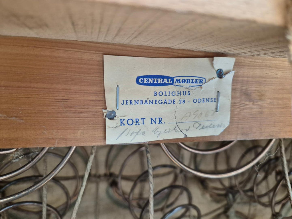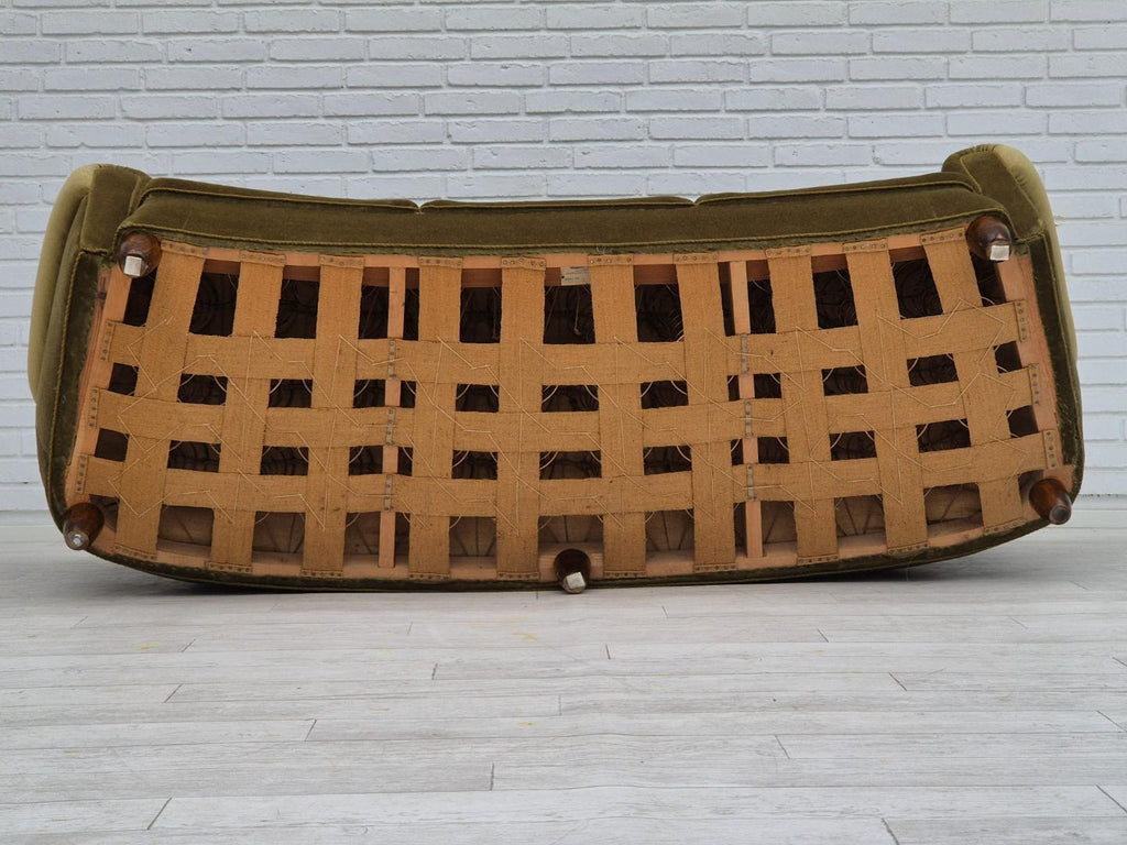 1960년대 덴마크산 3인용 소파 오리지널 상태 매우 양호함: 냄새도 얼룩도 없습니다. Central Møbler Odense의 덴마크 디자인. 녹색 가구 벨루어, 너도밤나무 다리, 좌석과 등받이의 황동 스프링. 1965년대경 덴마크의 가구 제조사가 제조한 제품입니다.