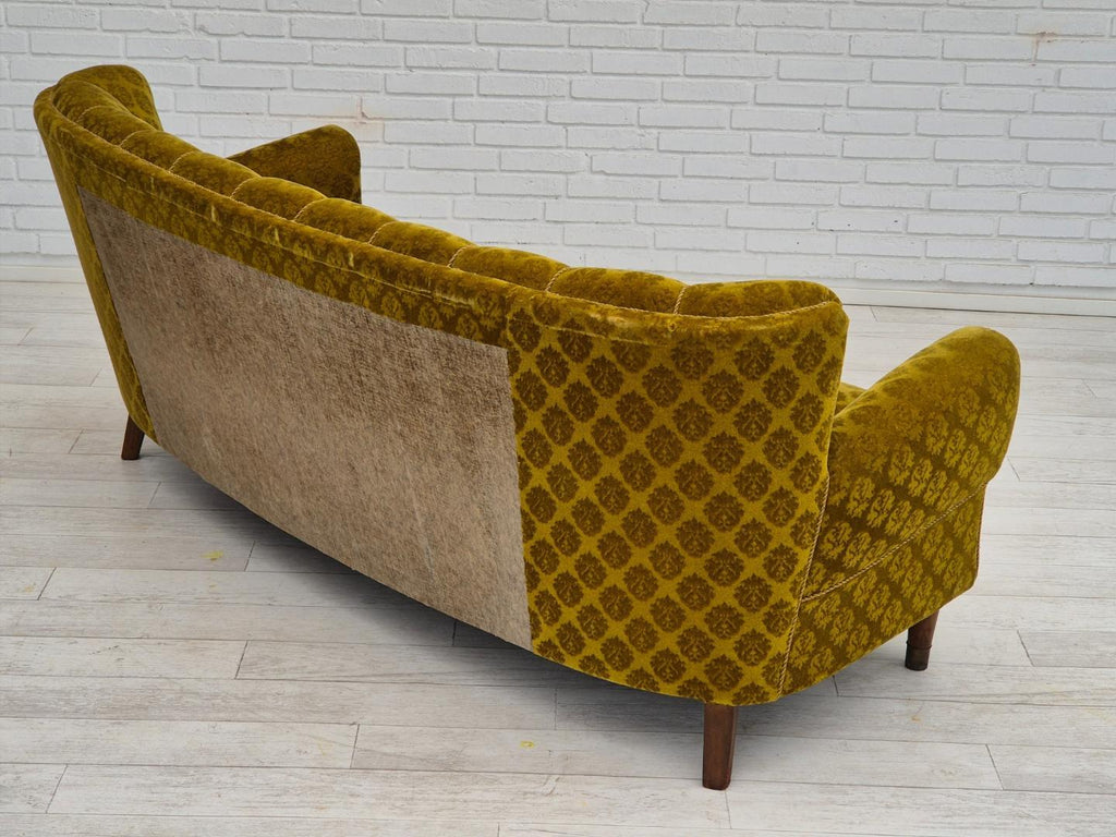 1960s, Danish 3 seater curved sofa, original condition, furniture velour, beech wood.