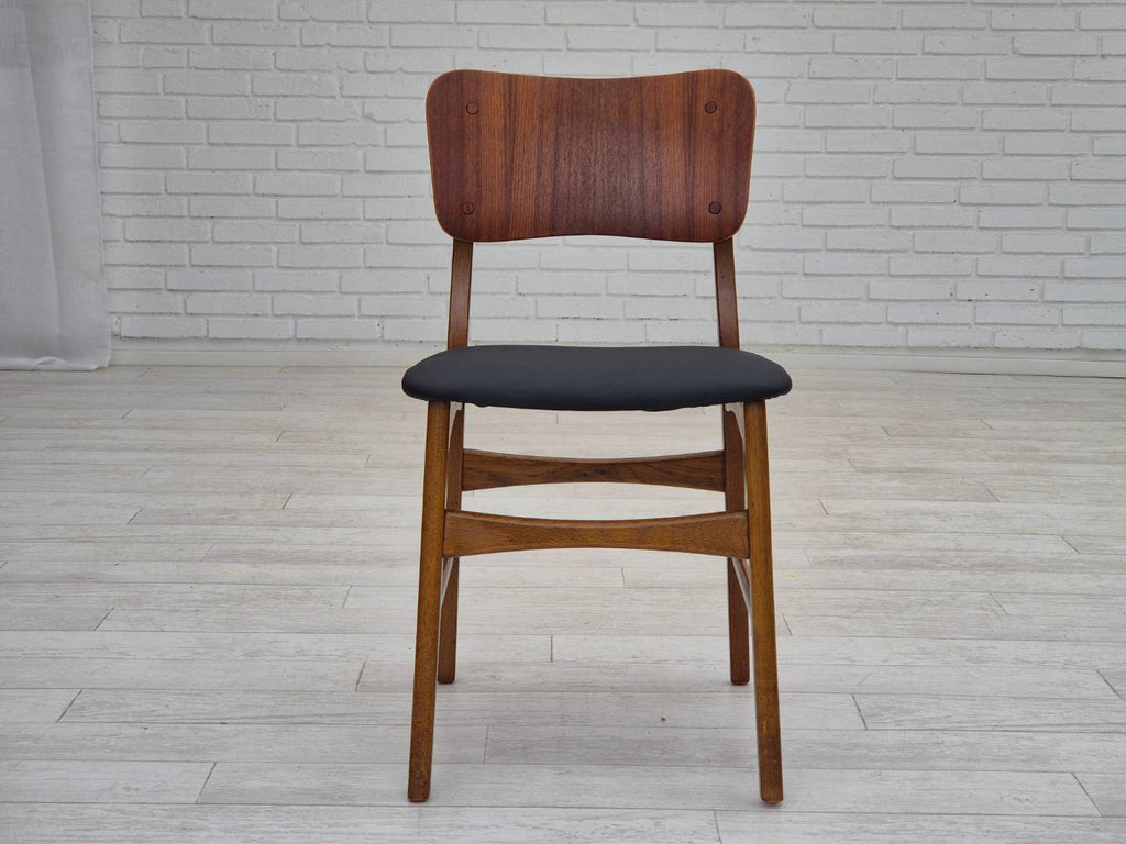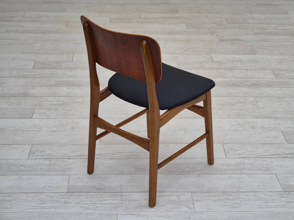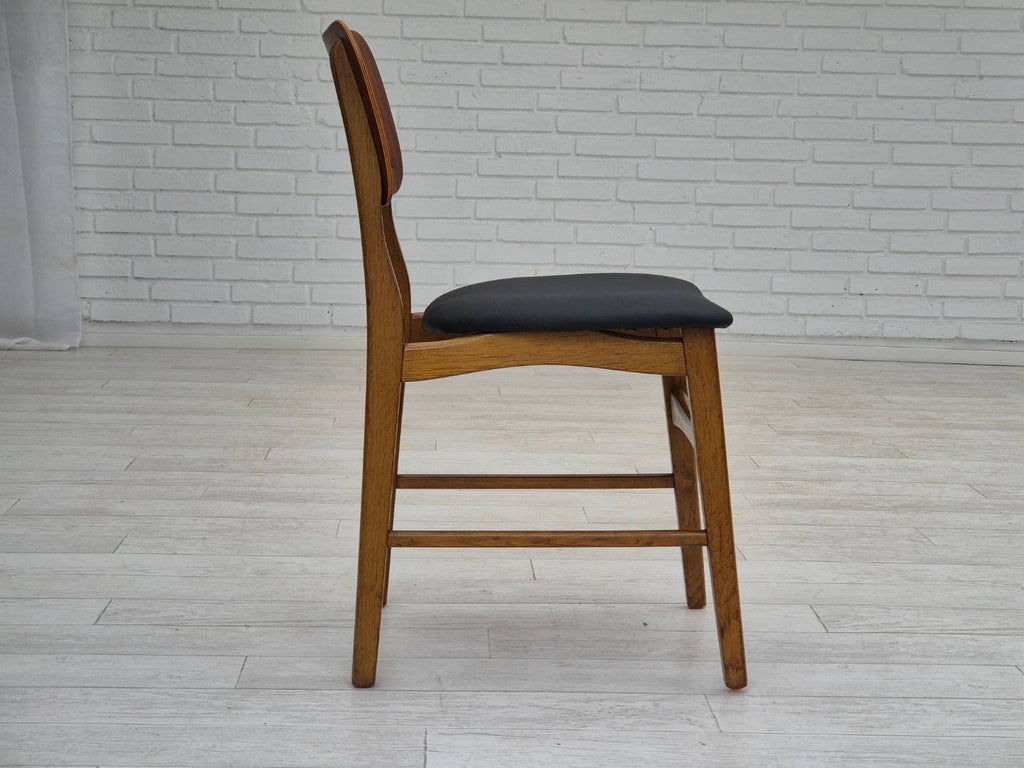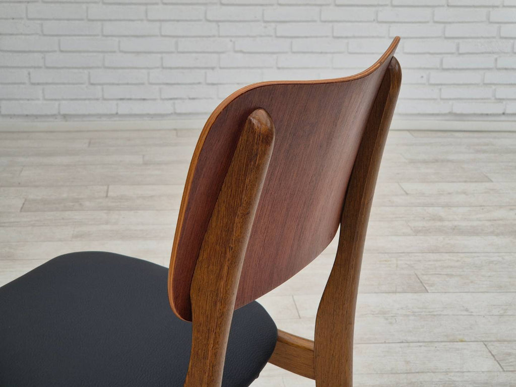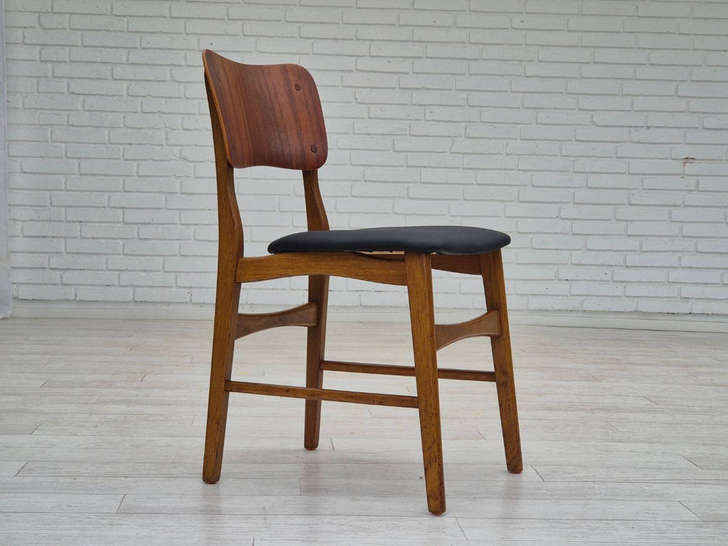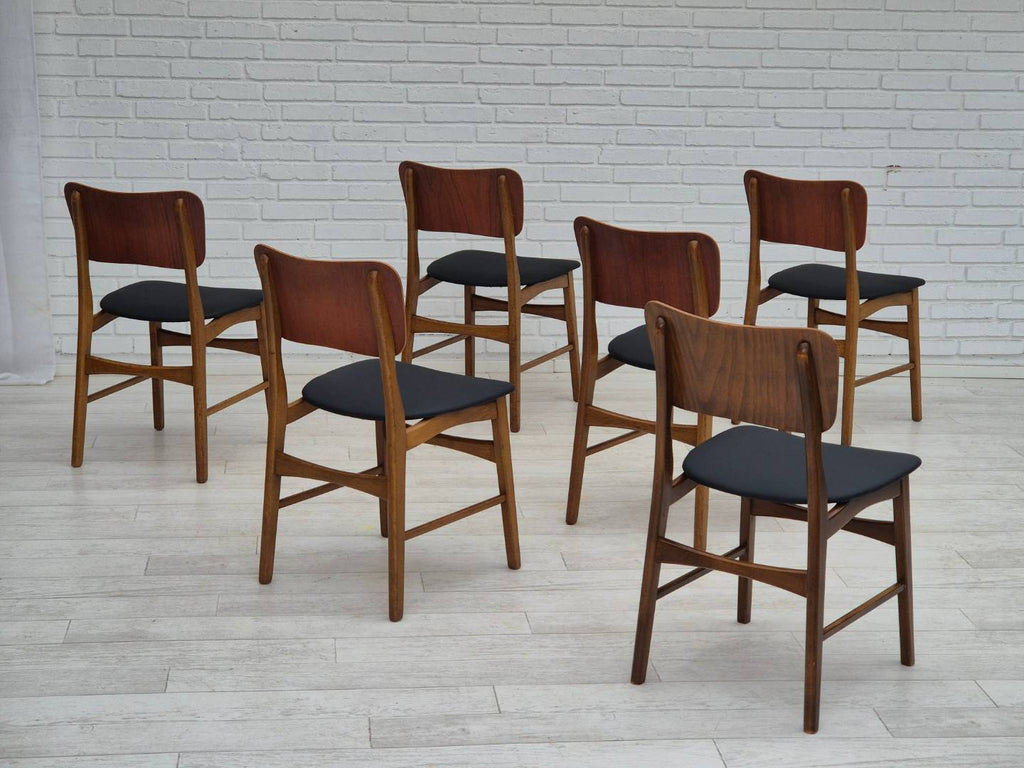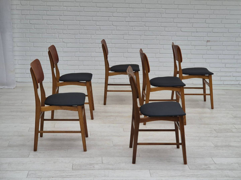 1960s, Danish design by Ib Kofod Larsen for Boltinge Stolefabrik. Set of 6 new reupholstered dining chairs model 62. Oak and teak wood. Reupholstered in quality artificial leather. Wood renewed. Manufactured by Danish furniture manufacturer in about 1960s. Reupholstered by craftsman.