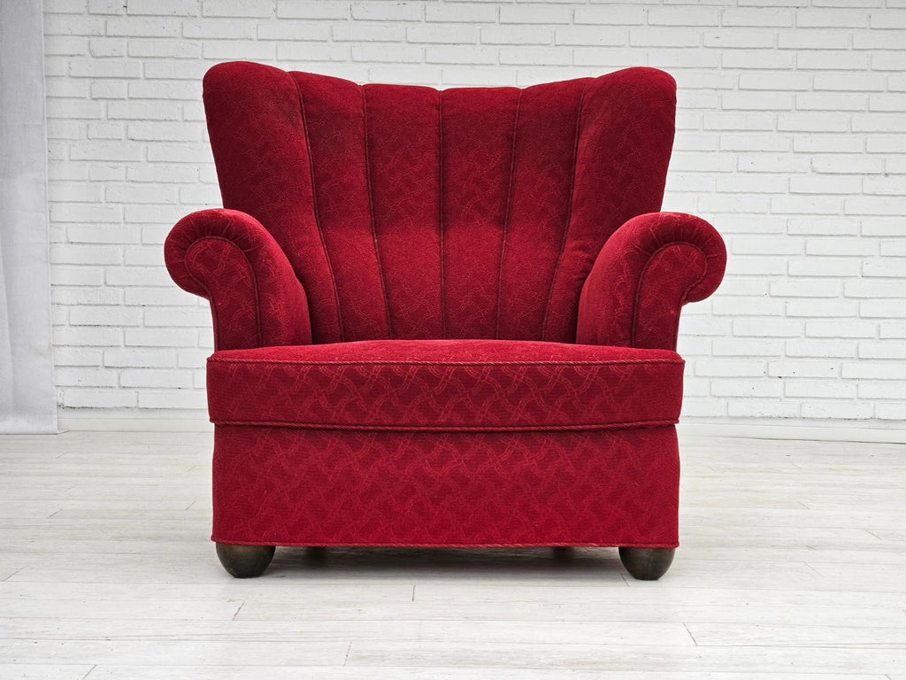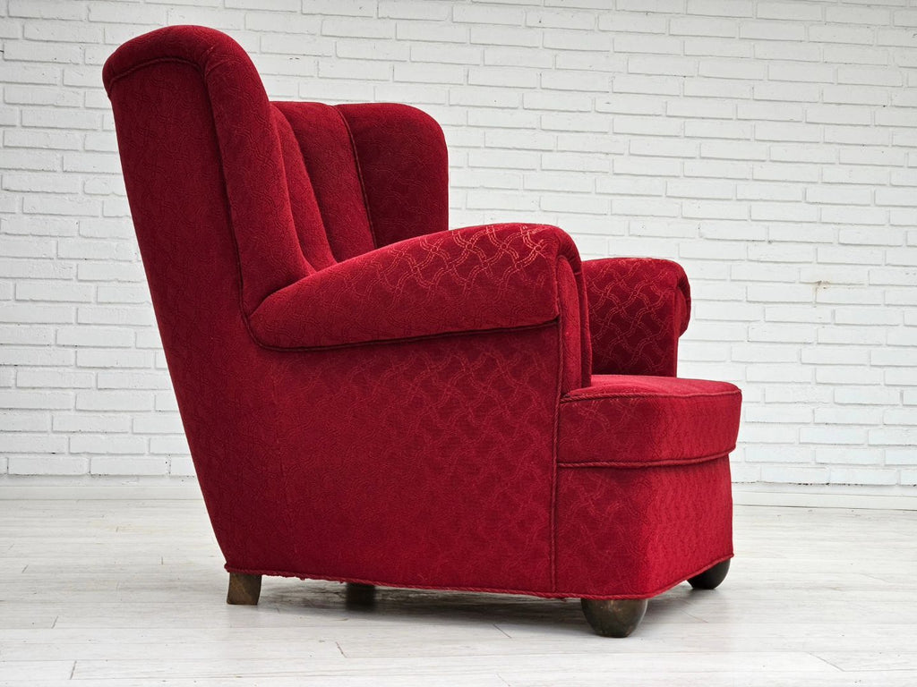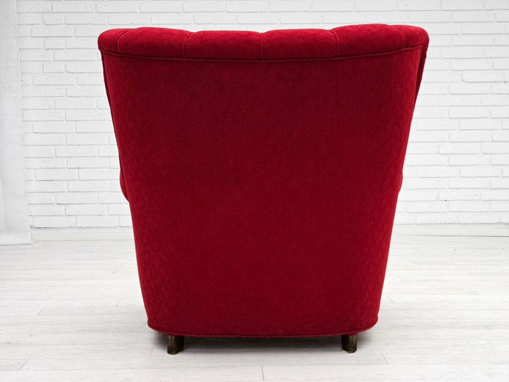 1960s, Danish relax armchair, original condition, red cotton/wool, oak wood.