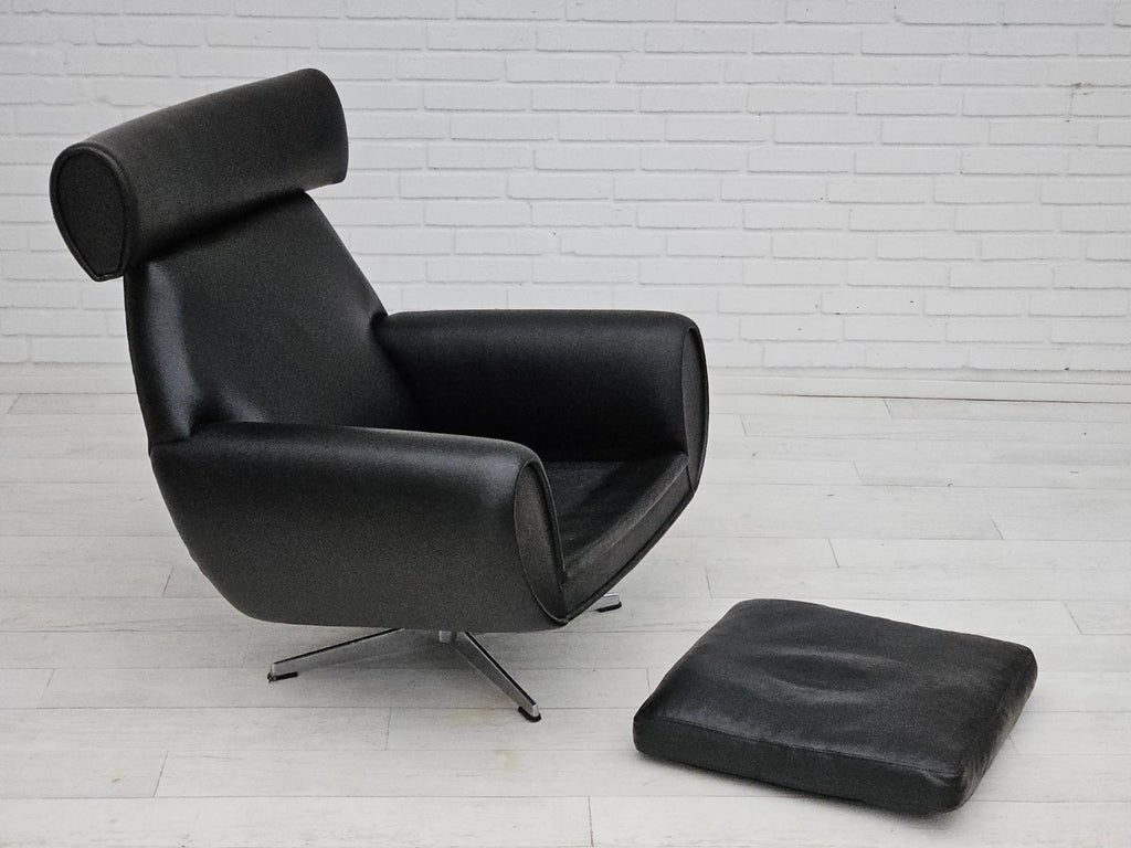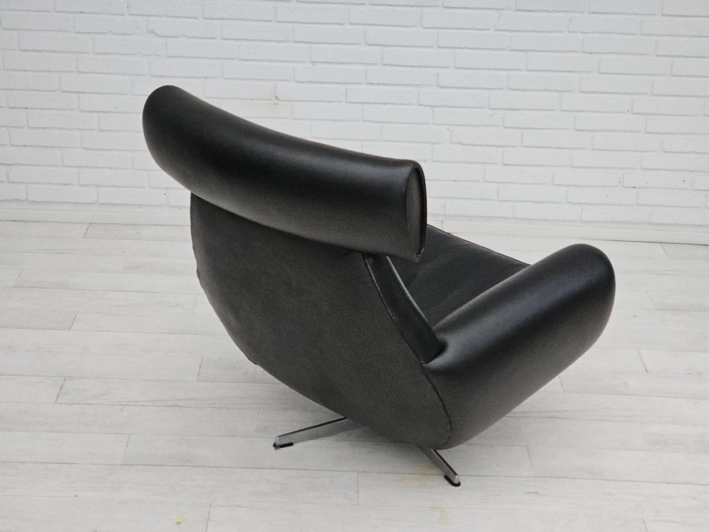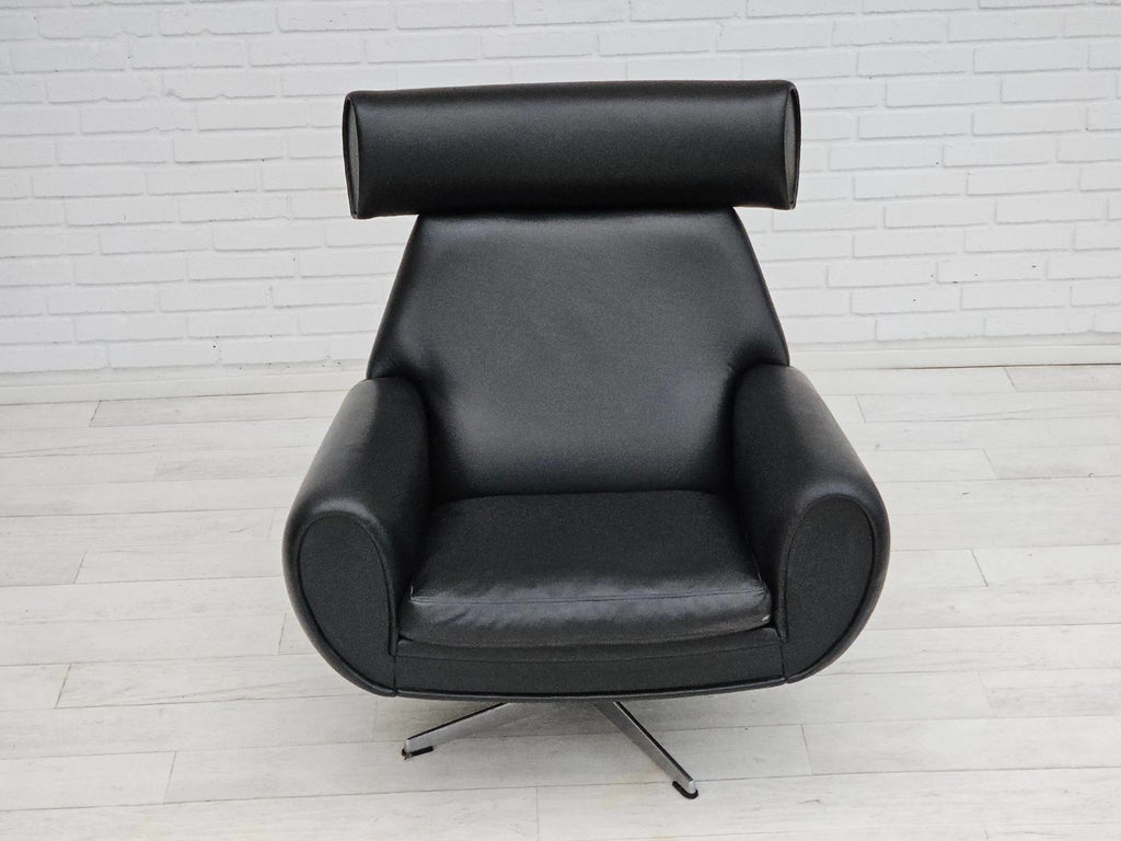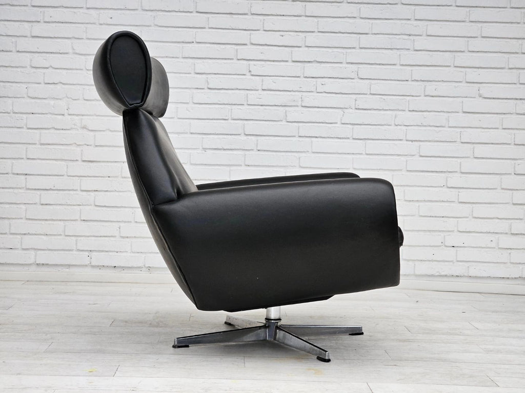1960s, Danish swivel chair in original very good condition: no smells and no stains. The chair used not too much from the 1960s. Original black leather, cast aluminum base. Manufactured by Danish furniture manufacturer in about 1960-65s.
