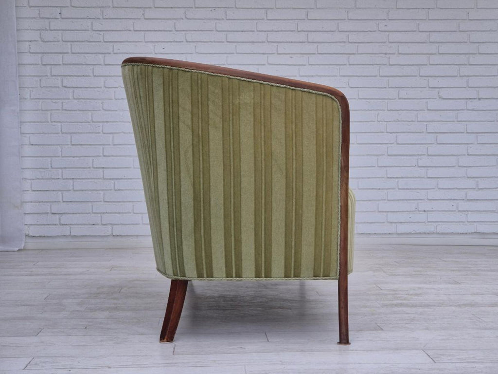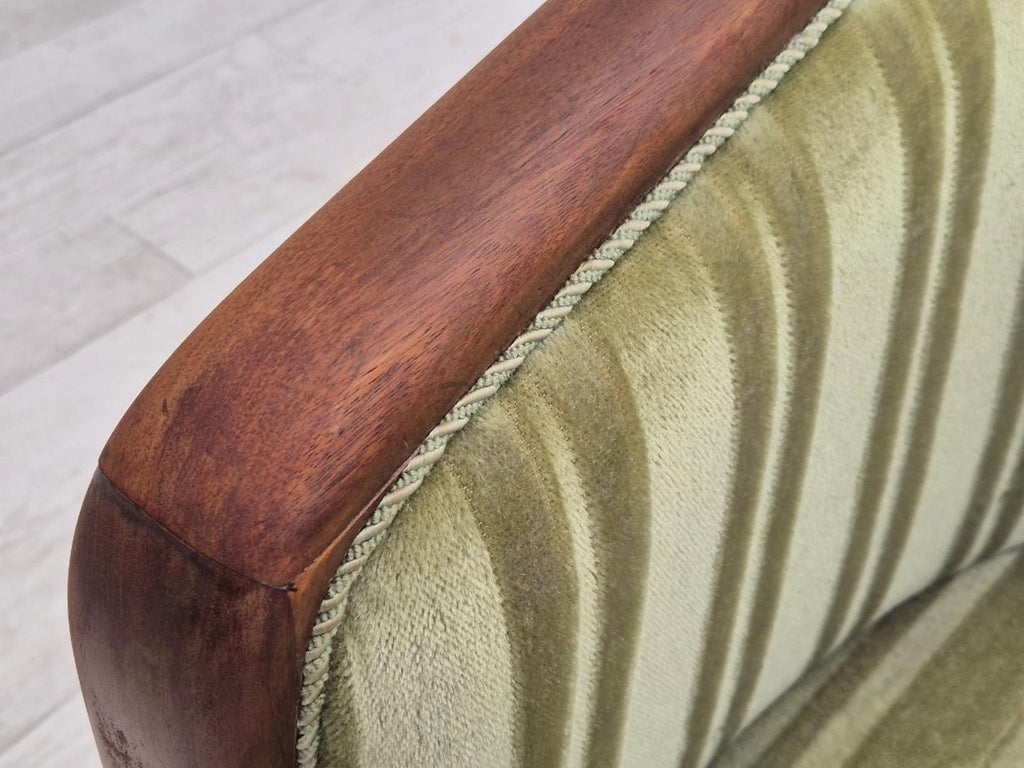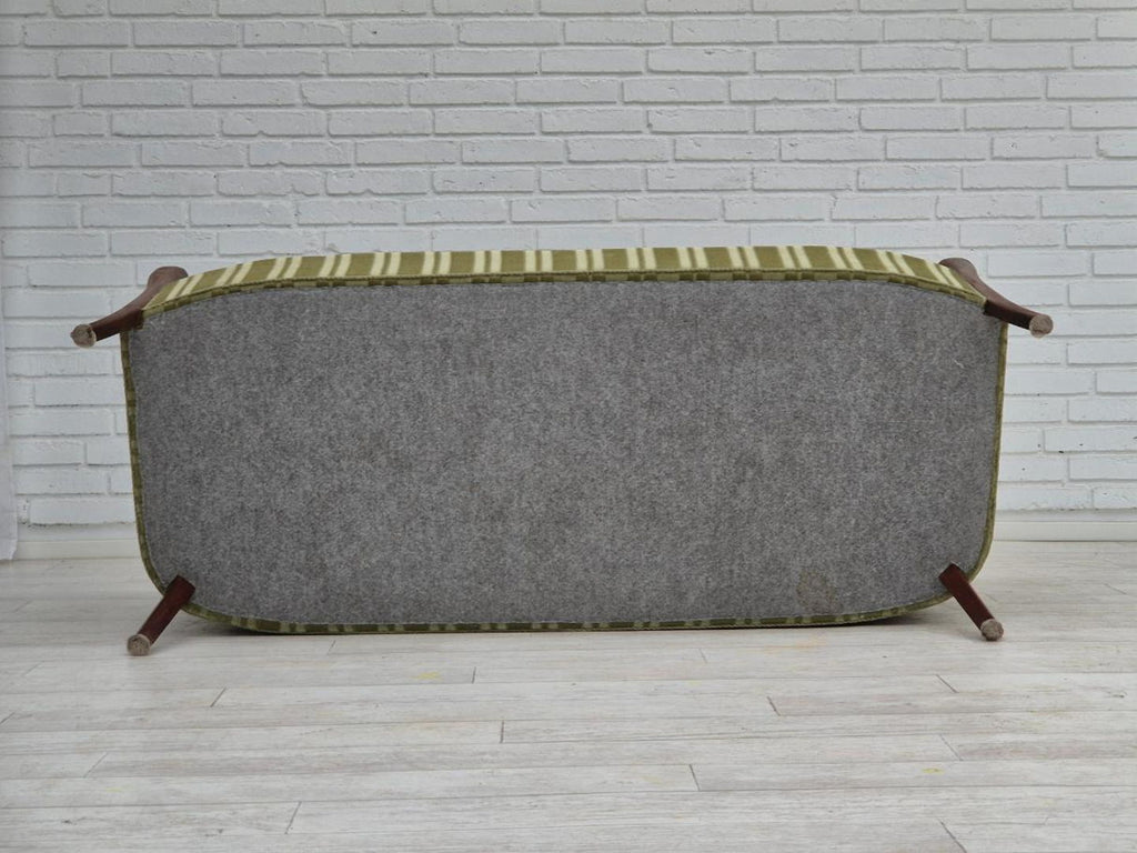 1960s, Scandinavian 2 seater sofa. Original very good condition: no smells and no stains. Original light green furniture velour, teak wood. Springs in the seat. Manufactured by Danish or Swedish furniture manufacturer in about 1955-60s.