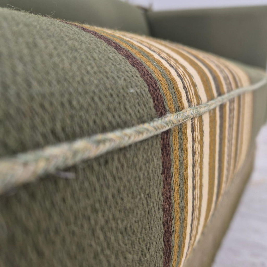 1970년대, 덴마크 2인용 드롭 암 소파, 오리지널 상태 매우 좋음: 냄새도 얼룩도 없습니다. 녹색 가구 양모, 너도밤나무 다리 조절 가능한 팔걸이(등받이 소파 아래 조절 레버). 팔걸이 조절용 장식 코드. 1965~70년대 덴마크 가구 제조업체에서 제조되었습니다.