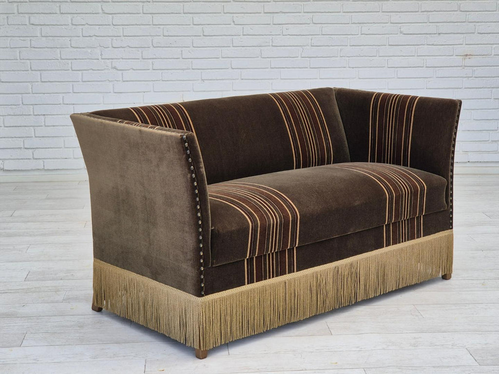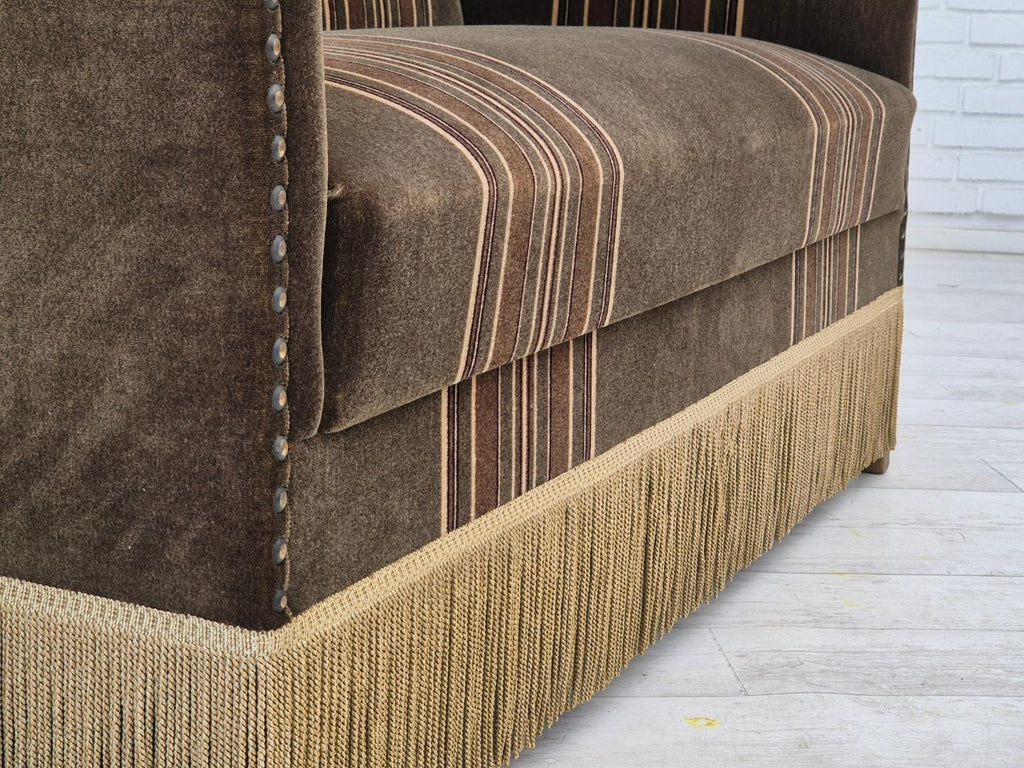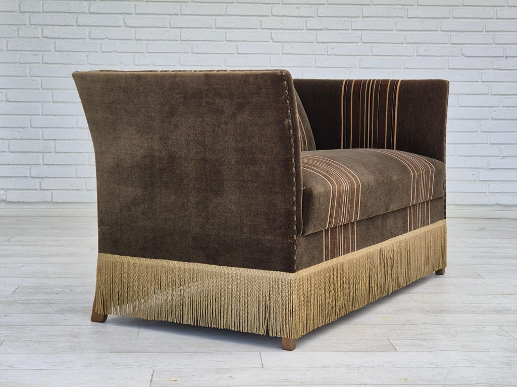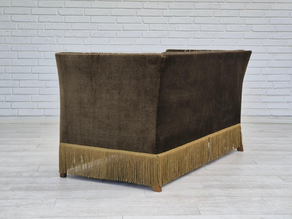 1970s, Danish 2 seater sofa, original condition, green velour, beech wood legs.