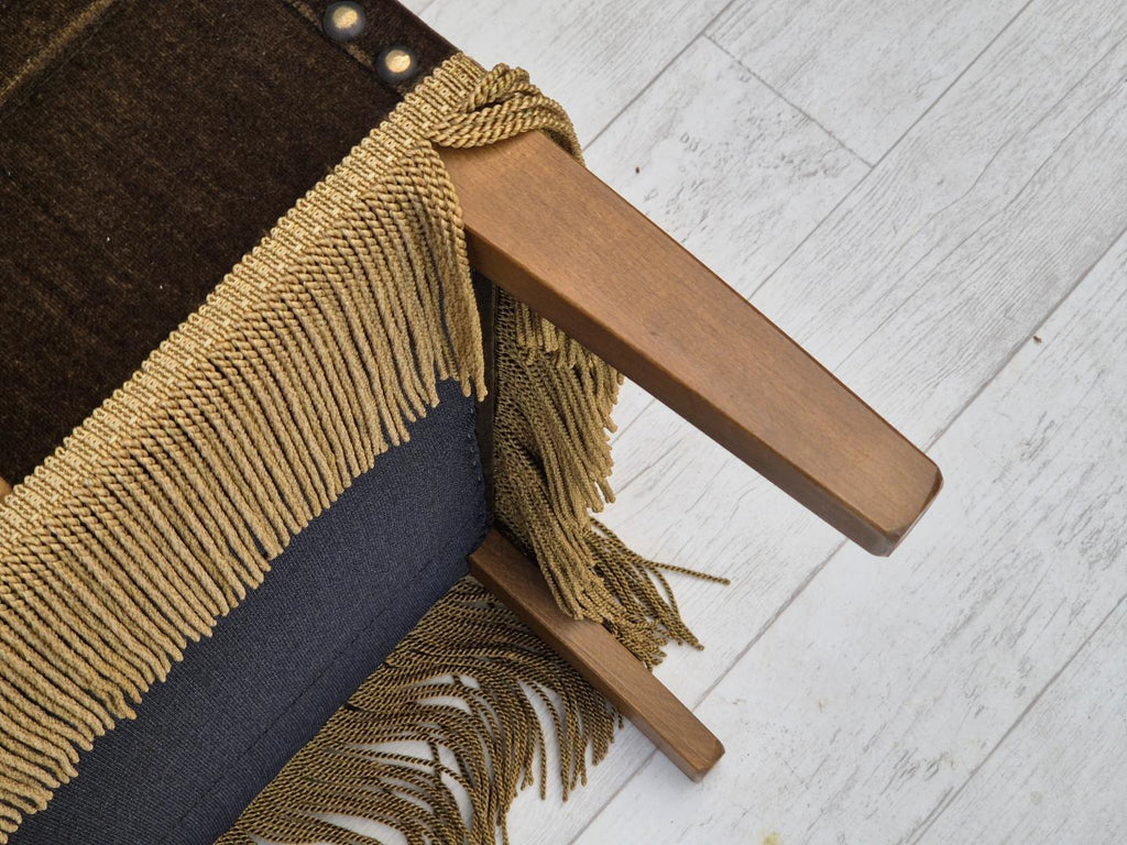 1970년대 덴마크산 2인용 소파 오리지널 상태 매우 양호함: 냄새도 얼룩도 없습니다. 짙은 녹색 가구 벨루어, 너도밤나무 다리. 좌석에 스프링이 있습니다. 70년대 후반 덴마크 가구 제조사에서 제작한 제품입니다.