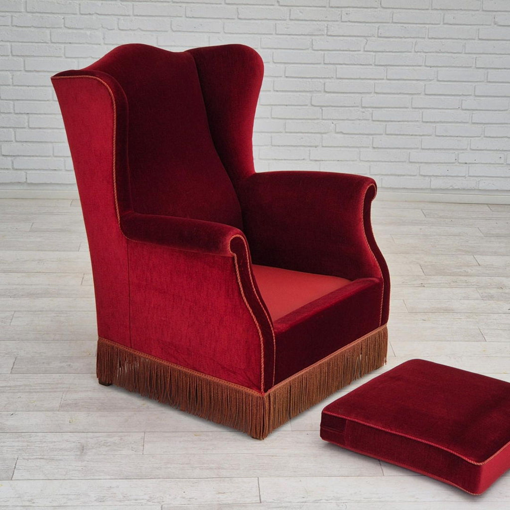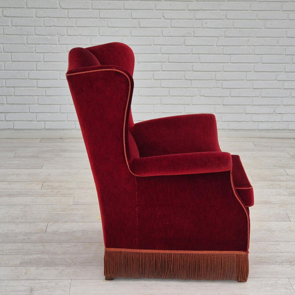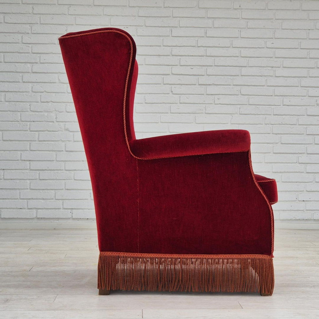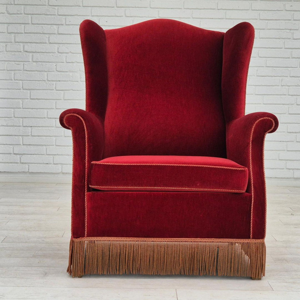 1970s, Danish highback wingback armchair, original condition, furniture velour, ash wood.