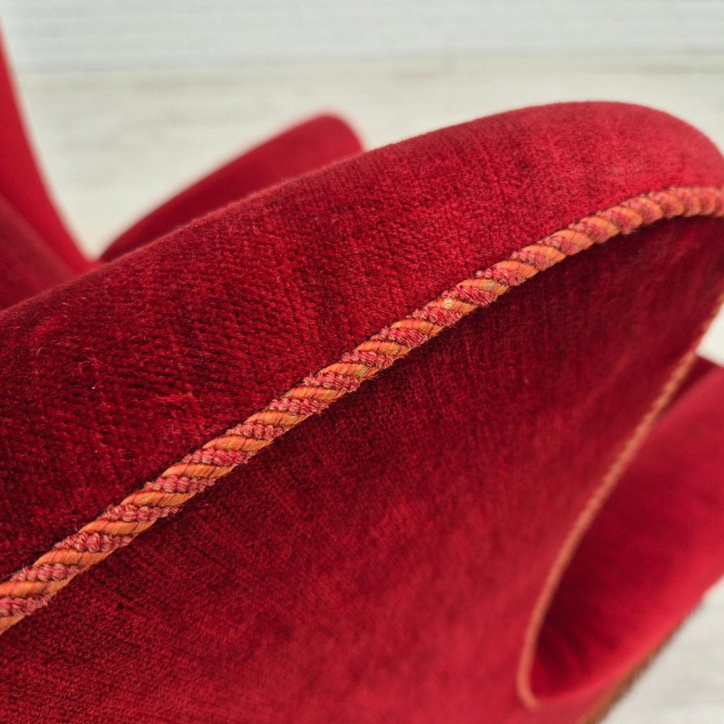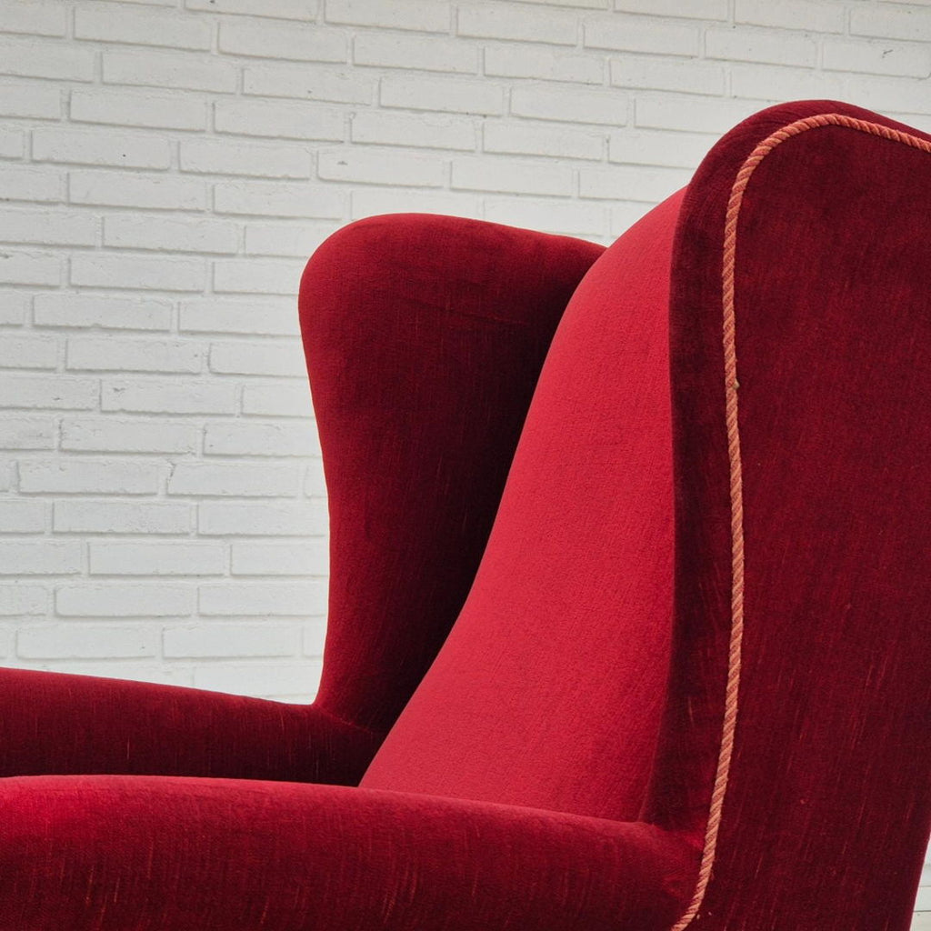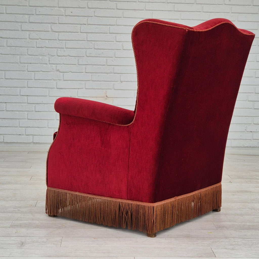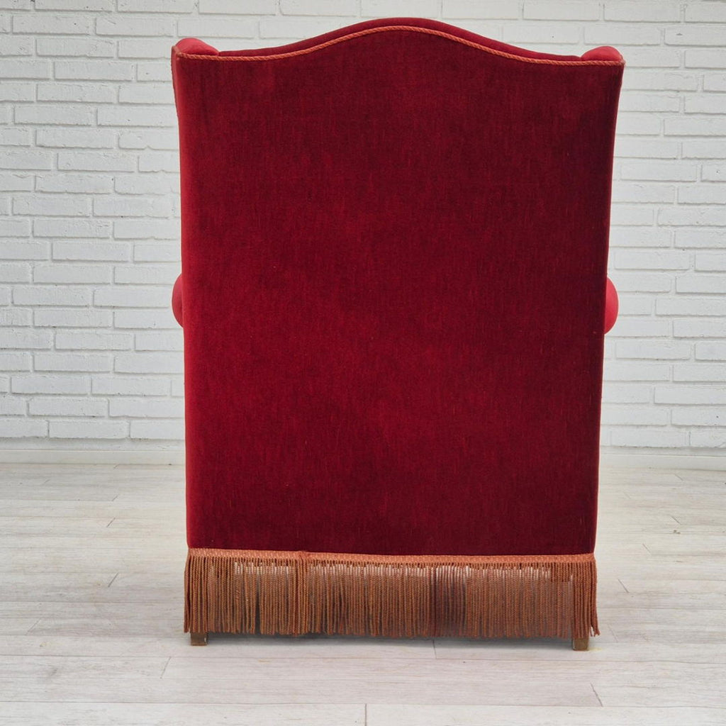 1970s, Danish highback wingback armchair, original condition, furniture velour, ash wood.