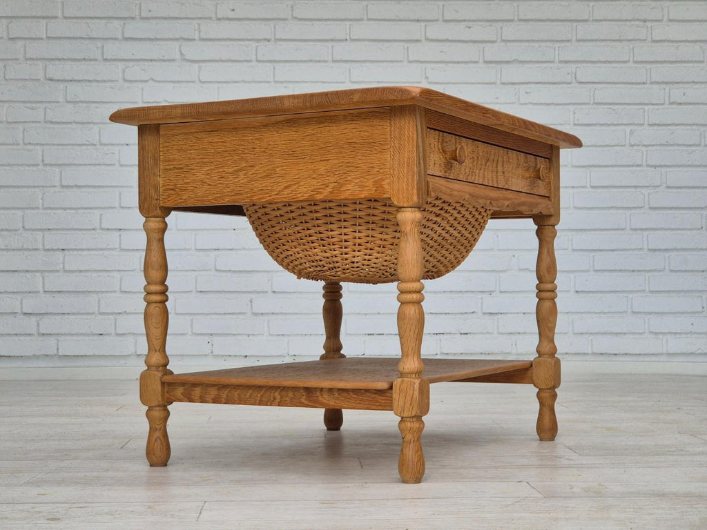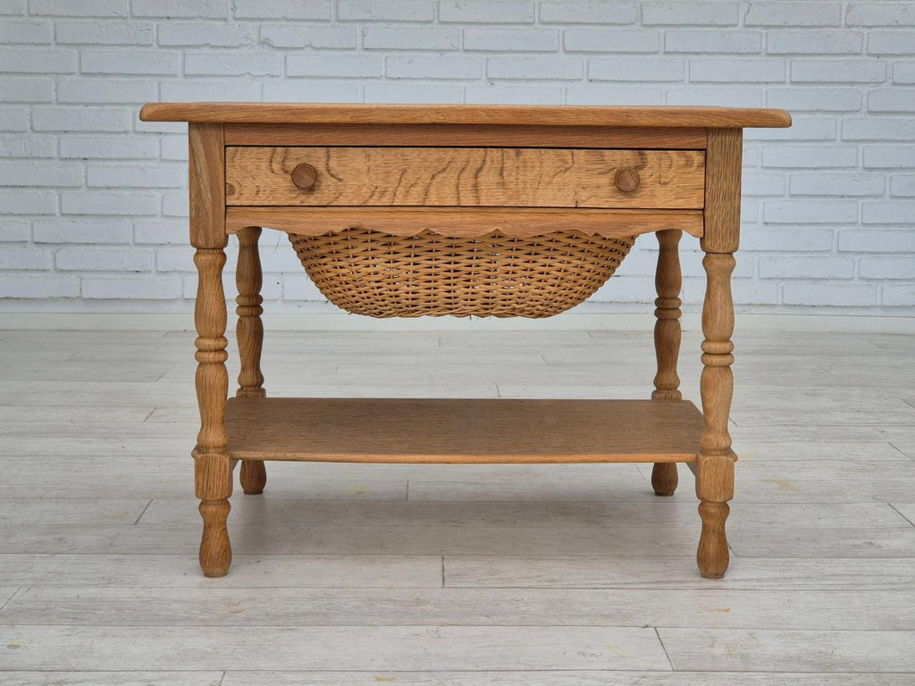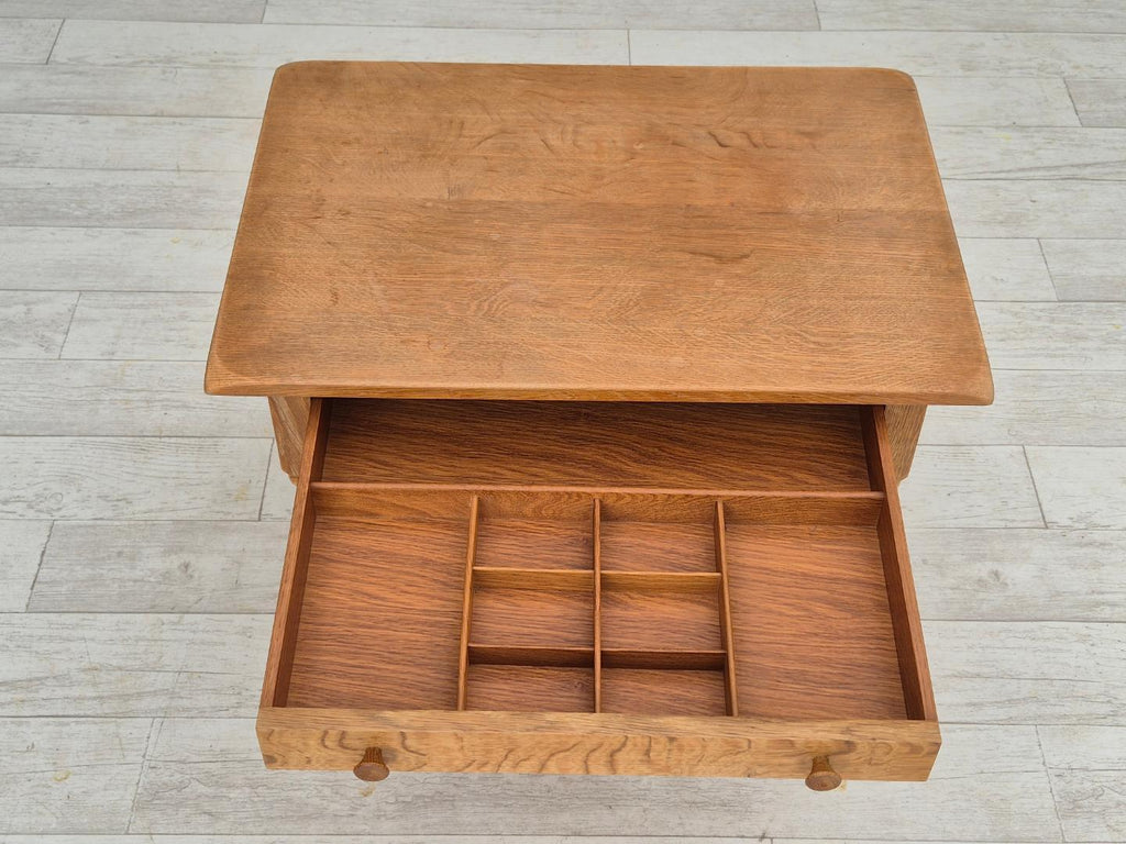1970s, Danish sewing chest of drawers. Original very good condition. Solid oak wood, rattan. Manufactured by Danish furniture maker in about 1970s.