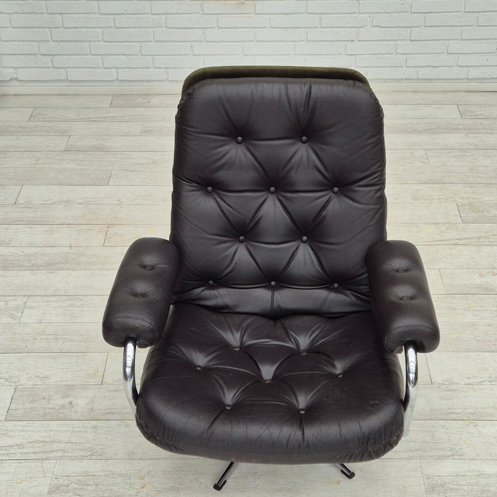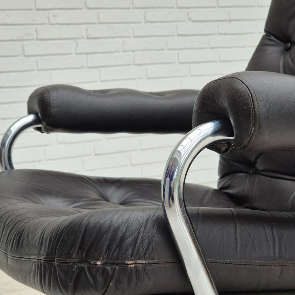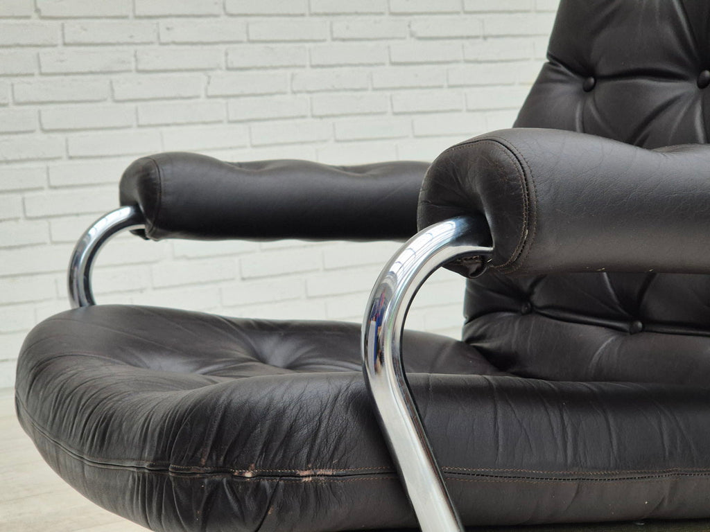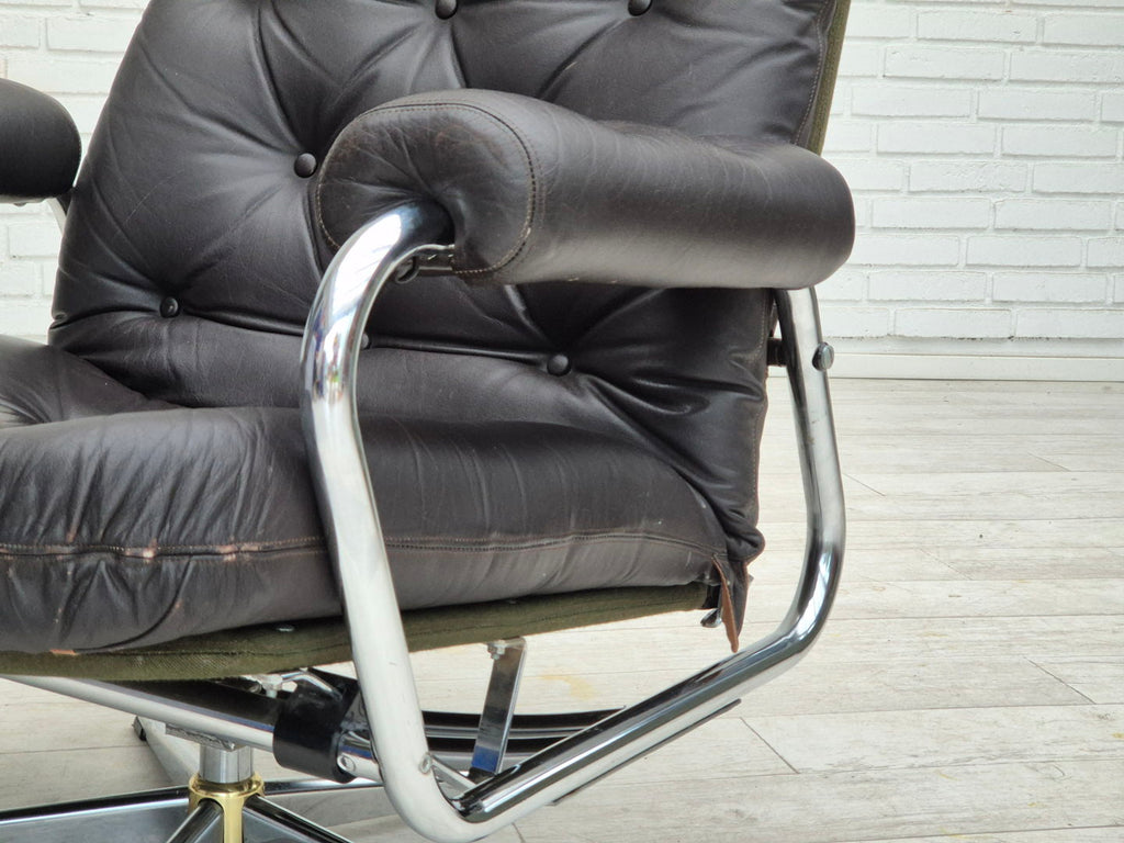 1970s, Danish swivel chair, original condition, leather, chrome steel.