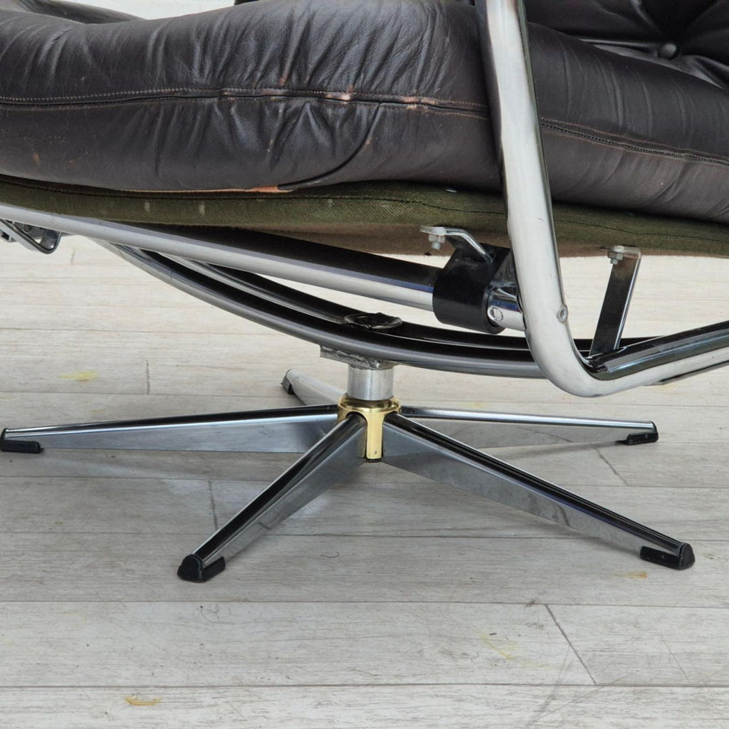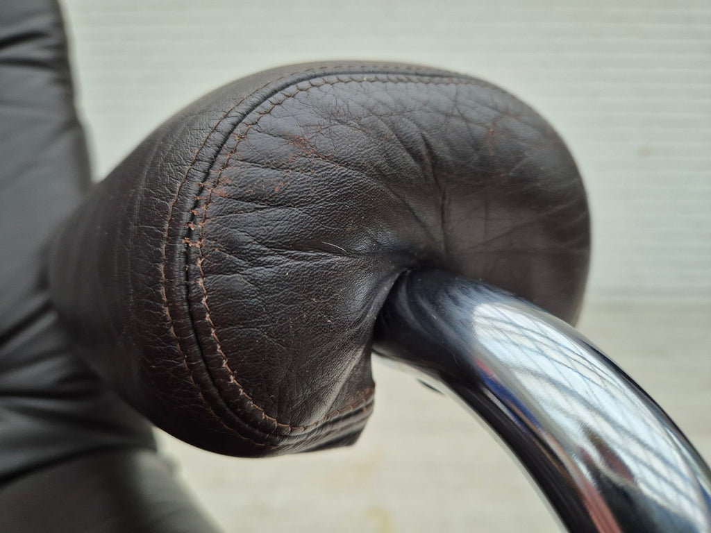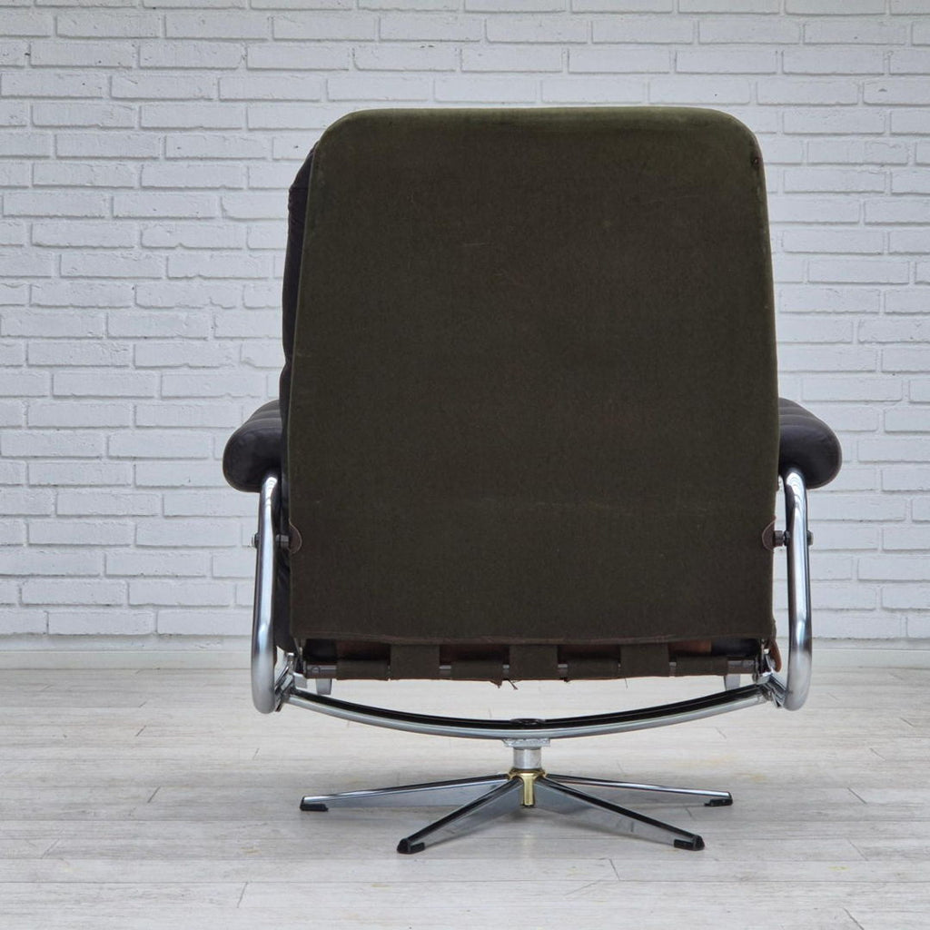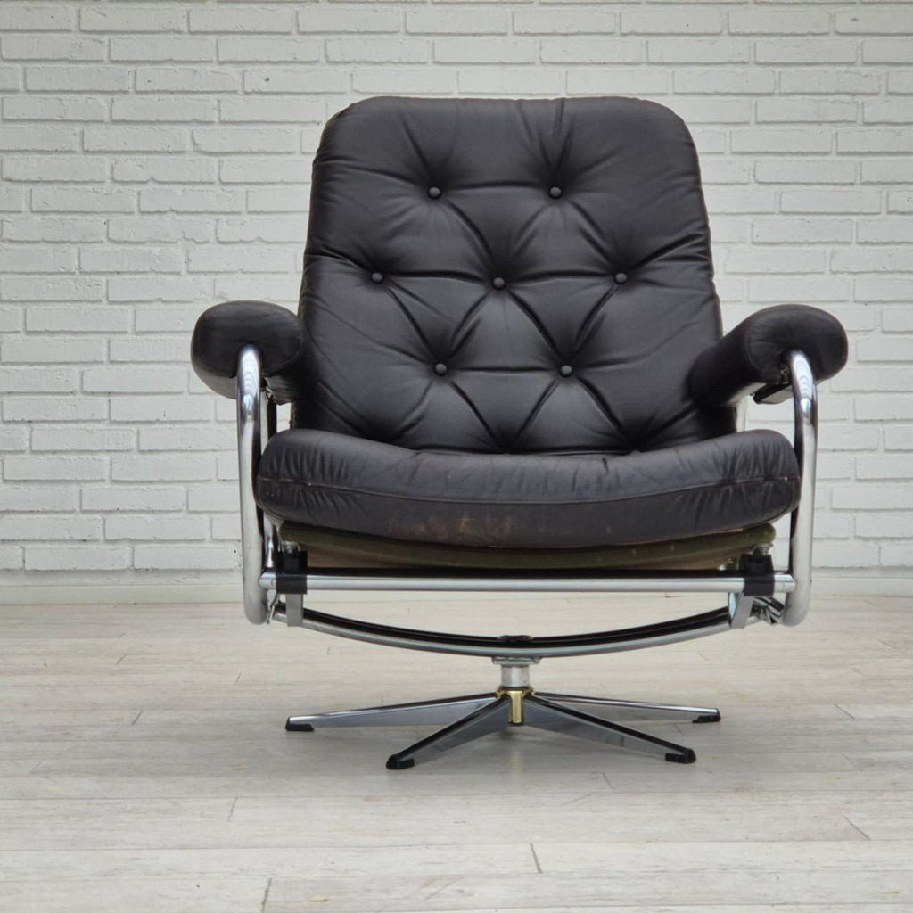 1970s, Danish swivel chair, original condition, leather, chrome steel.