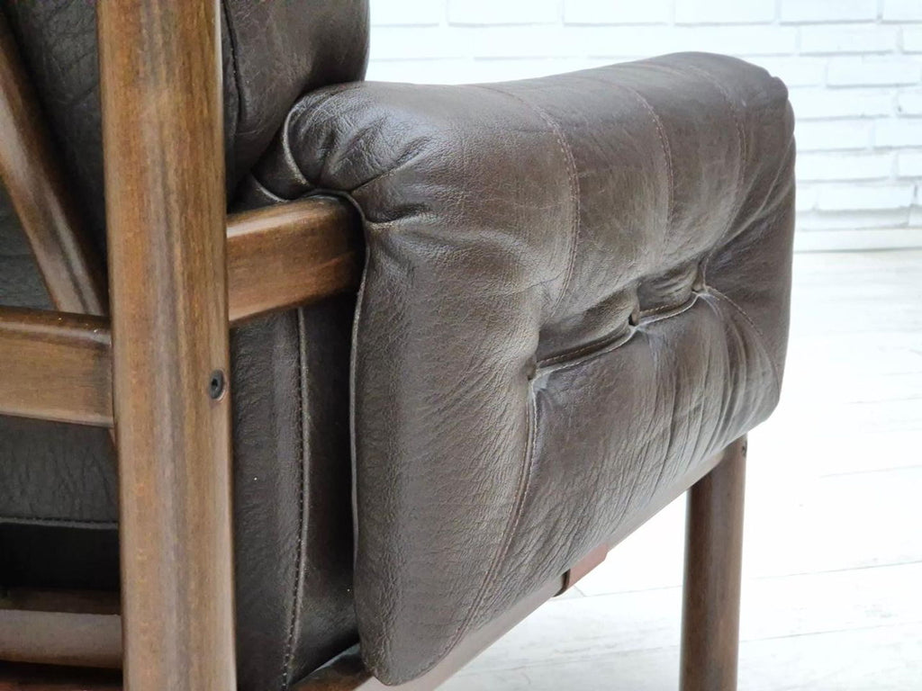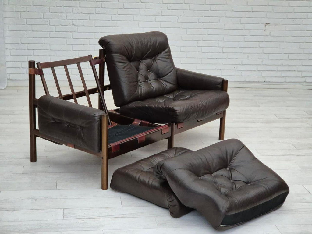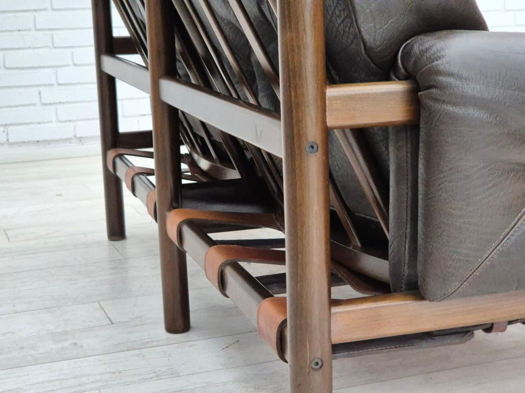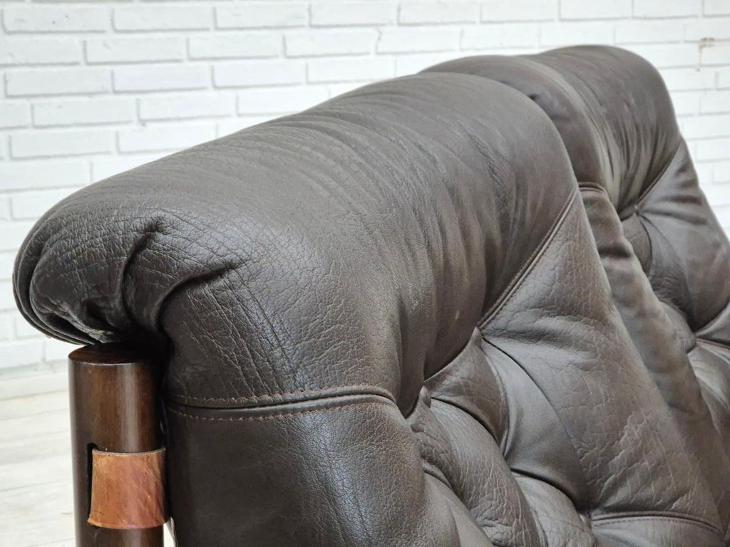 1970년대, Ivar Opsvik이 Bruksbo 노르웨이를 위해 노르웨이 디자인. 2인용 소파, 모델 "Safari". 원래 매우 좋은 상태: 냄새도 없고 얼룩도 없습니다. 브라운 가죽, 캔버스, 너도밤나무. 1970년대경 노르웨이의 가구 제조업체에서 제조되었습니다.