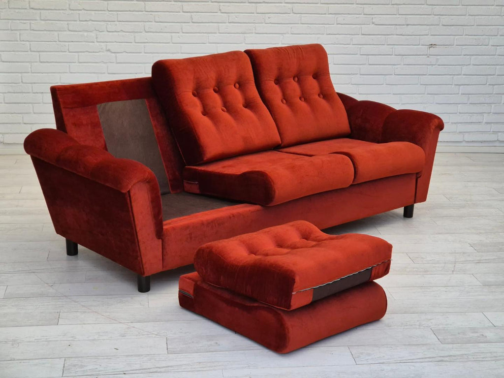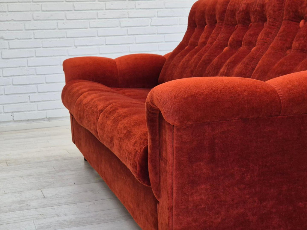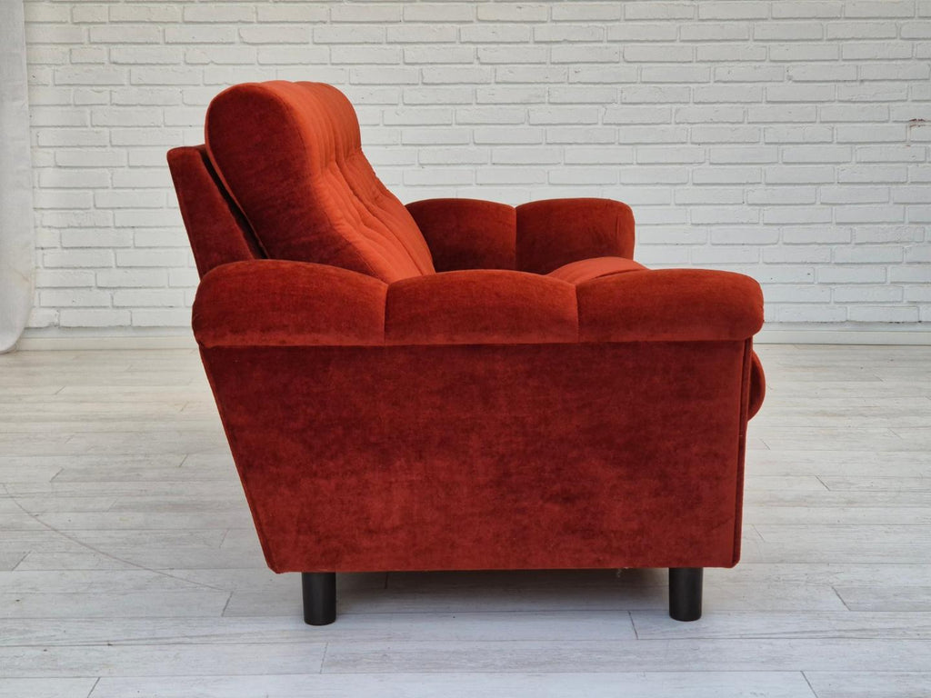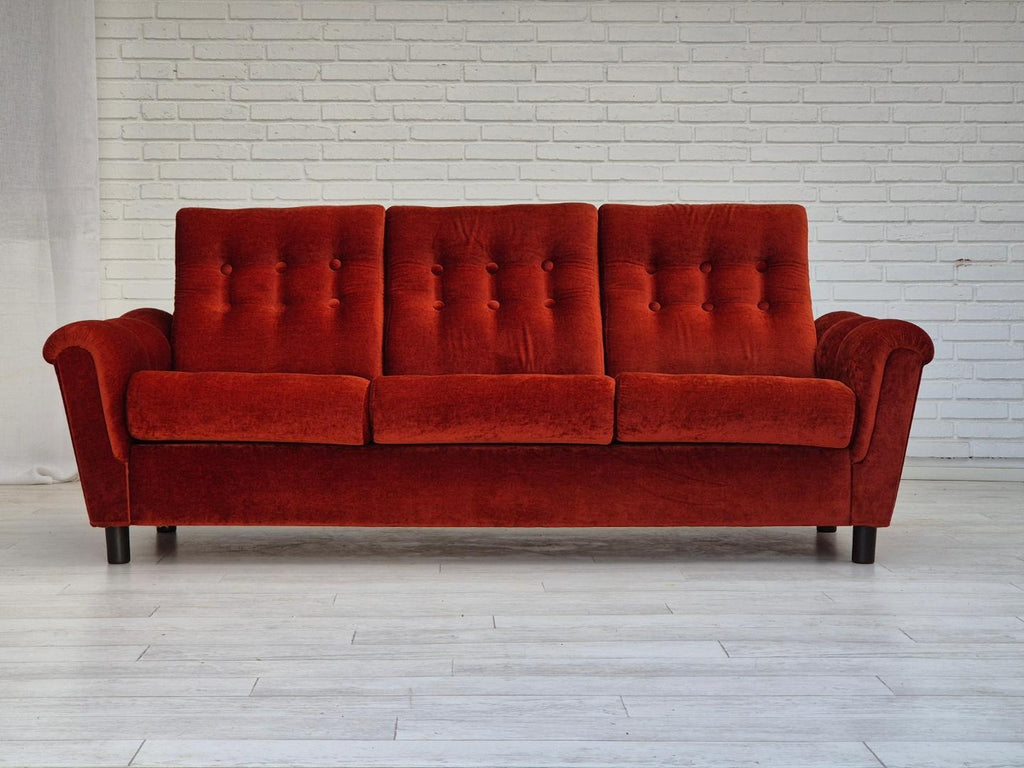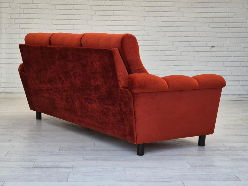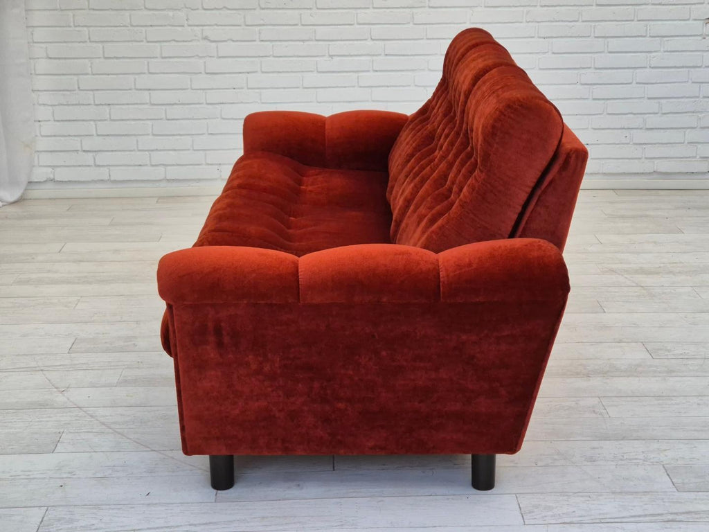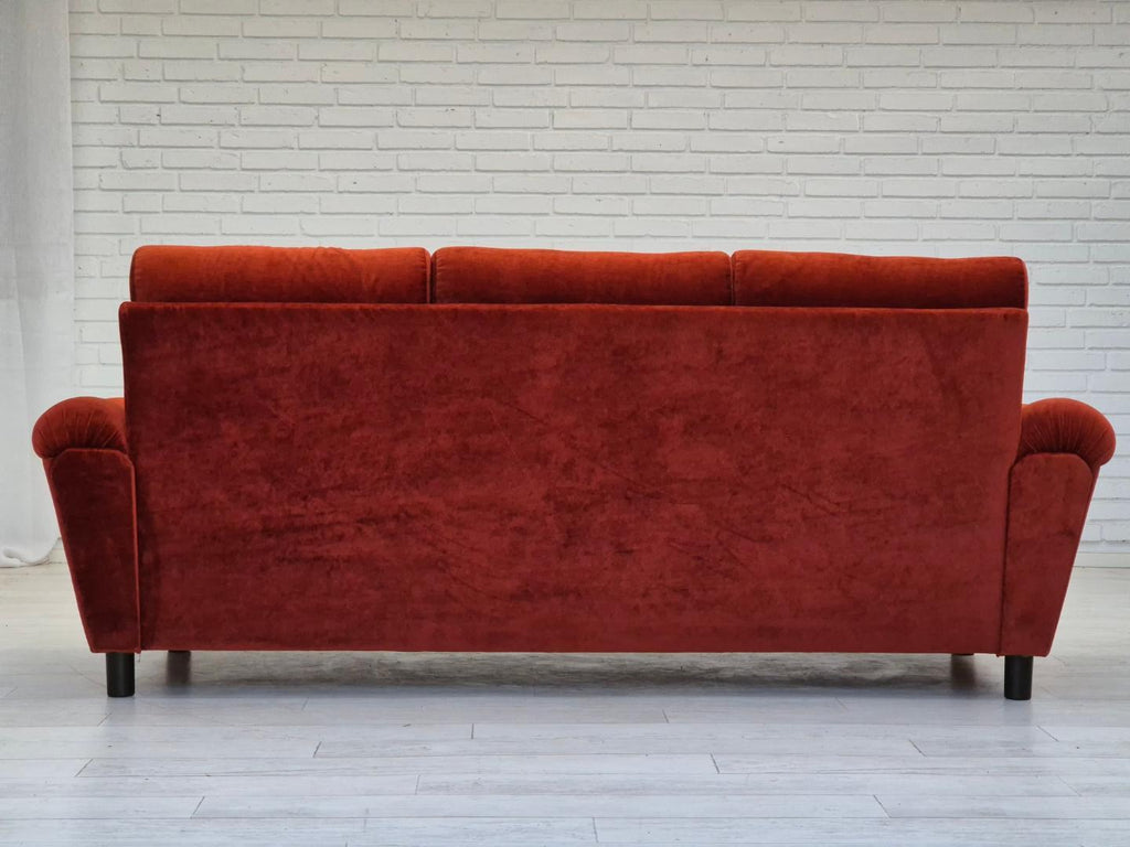 1980s, Danish 3 seater sofa, original very good condition, brown/red furniture velour.