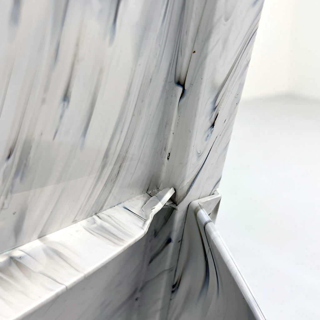 한쪽 가장자리가 뒤쪽에서 뒤틀려 있습니다. 세부 정보 사진을 참조하십시오.