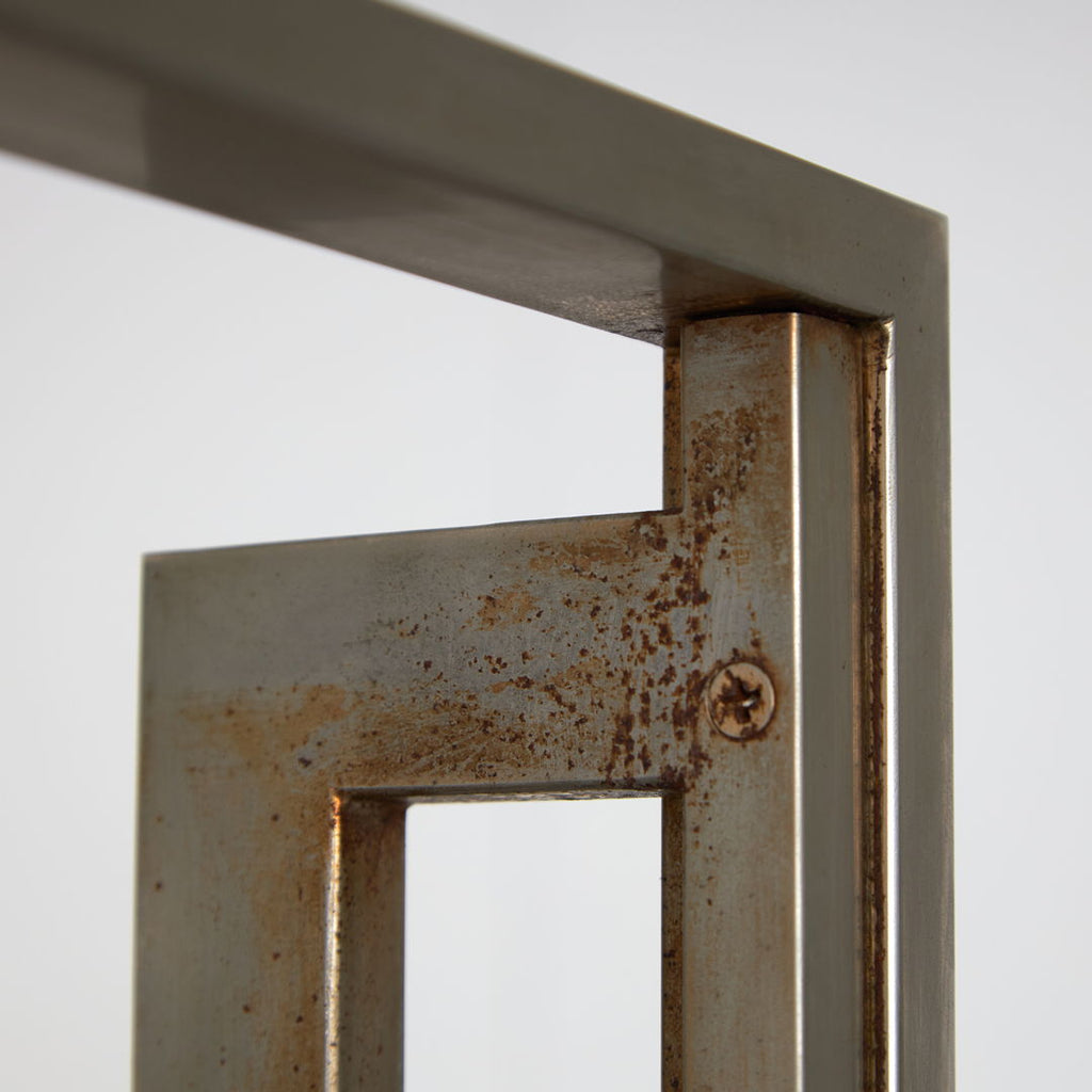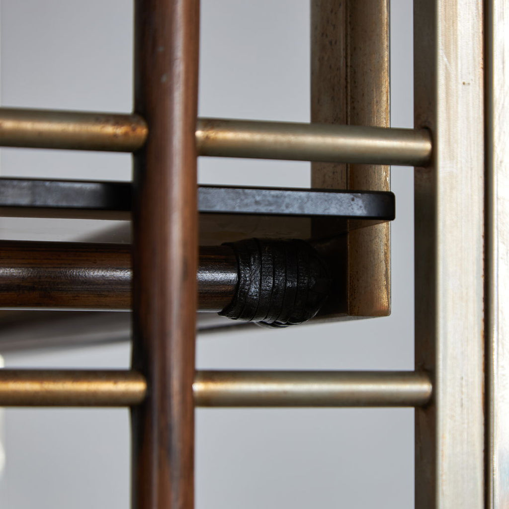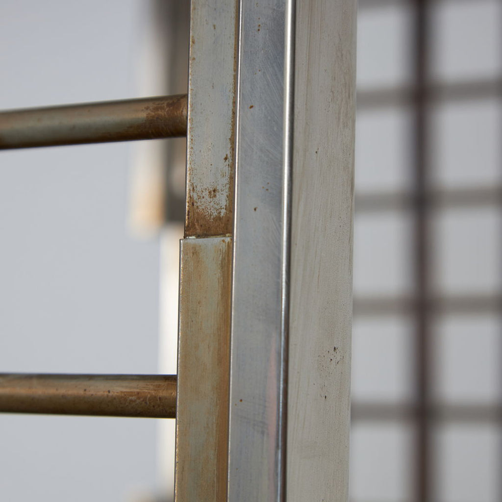 이 1970년대 선반유닛은 크롬 도금된 황동으로 세련되게 제작되었으며 장식용 대나무 부분과 4개의 스모크 유리 상판이 특징입니다. 프레임에 약간의 마모 및 마모 흔적이 있지만 이 제품은 견고하고 세심하게 제작되어 오래되었으며 이전에 사용했던 흔적이 남아 있습니다. SKU: GB0178