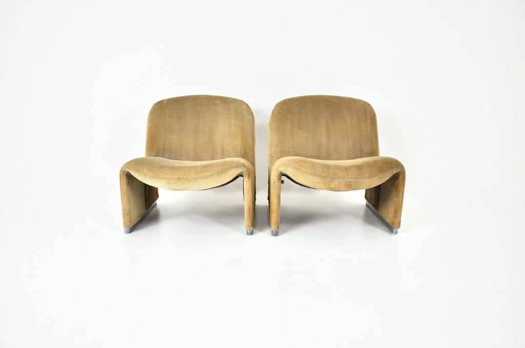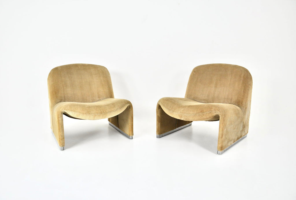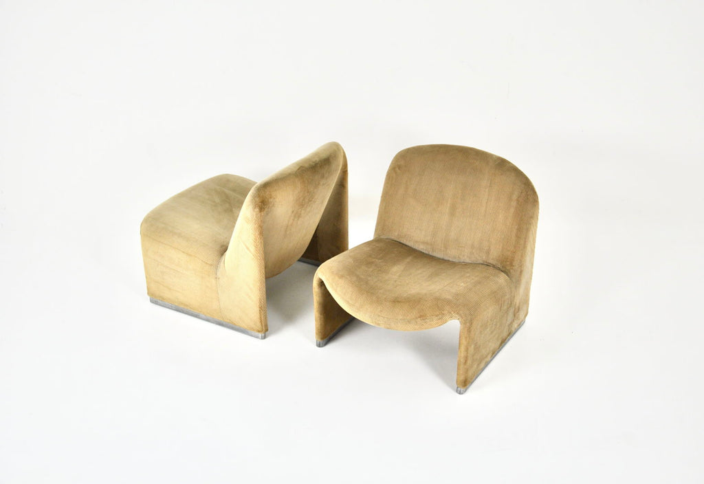 Pair of Alky chairs in velvet with a label Anonima Castelli. Seat height: 39cm. Wear due to time and age.