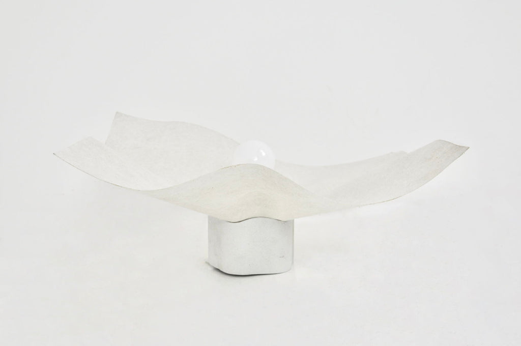 Cream coloured lamp with ceramic base by Mario Bellini. Wear due to time and age of the lamp.