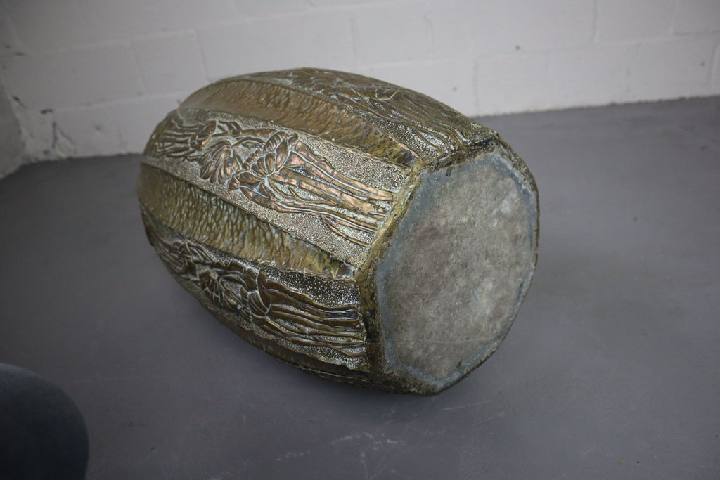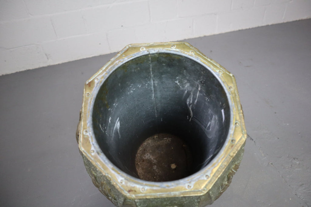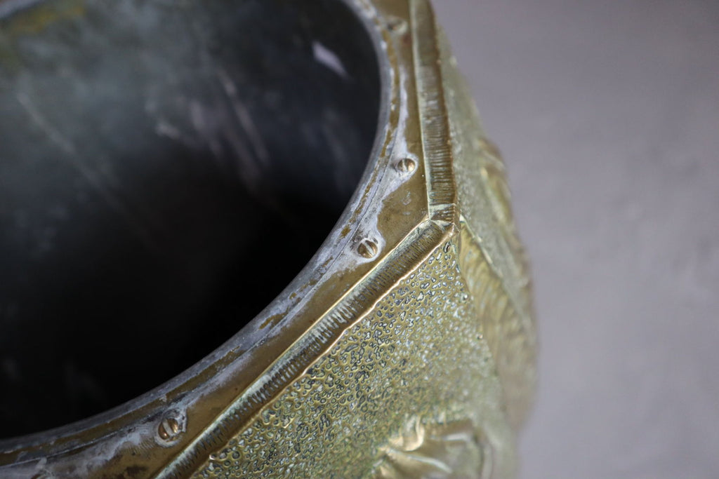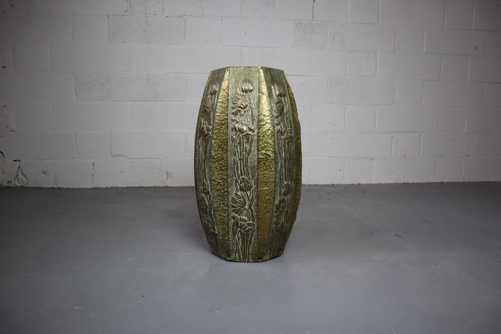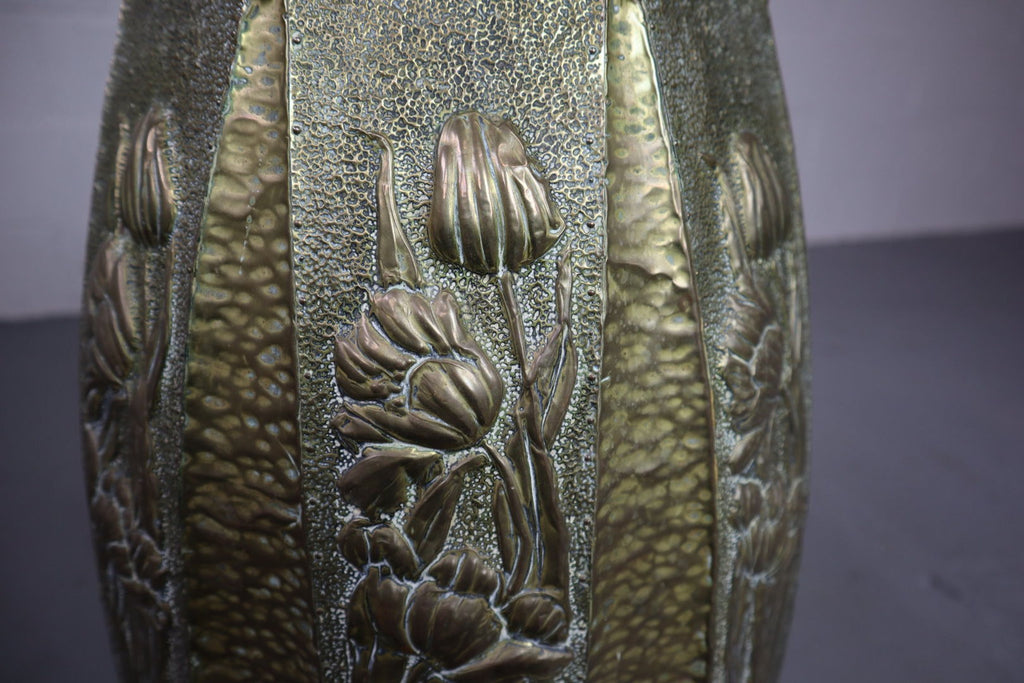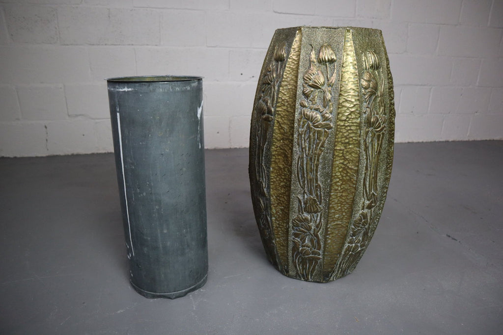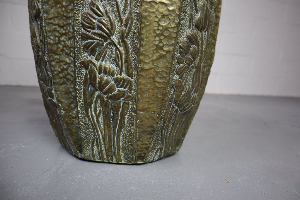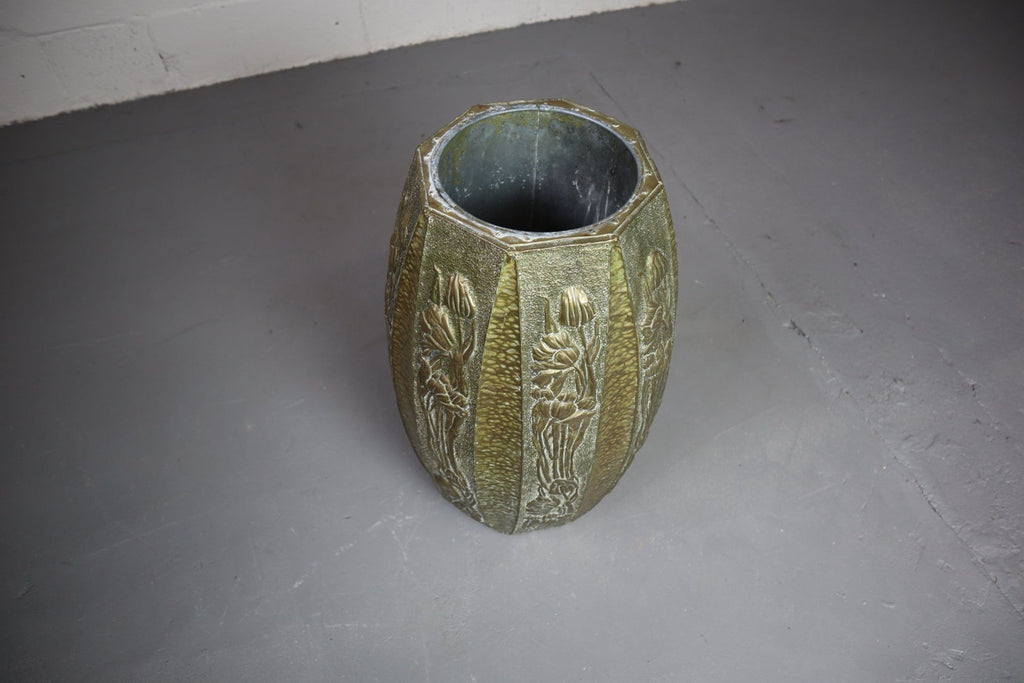 Art Nouveau Umbrella Stand in Hammered Embossed Copper