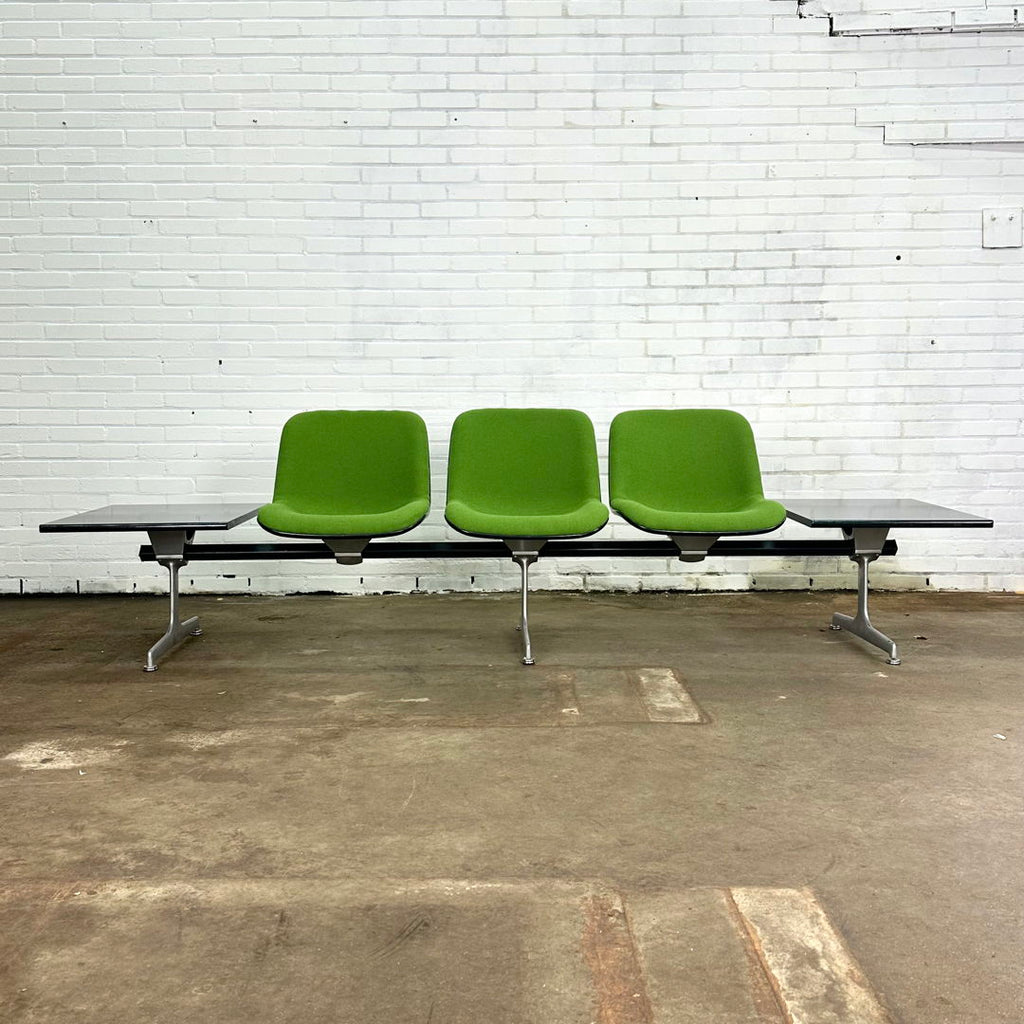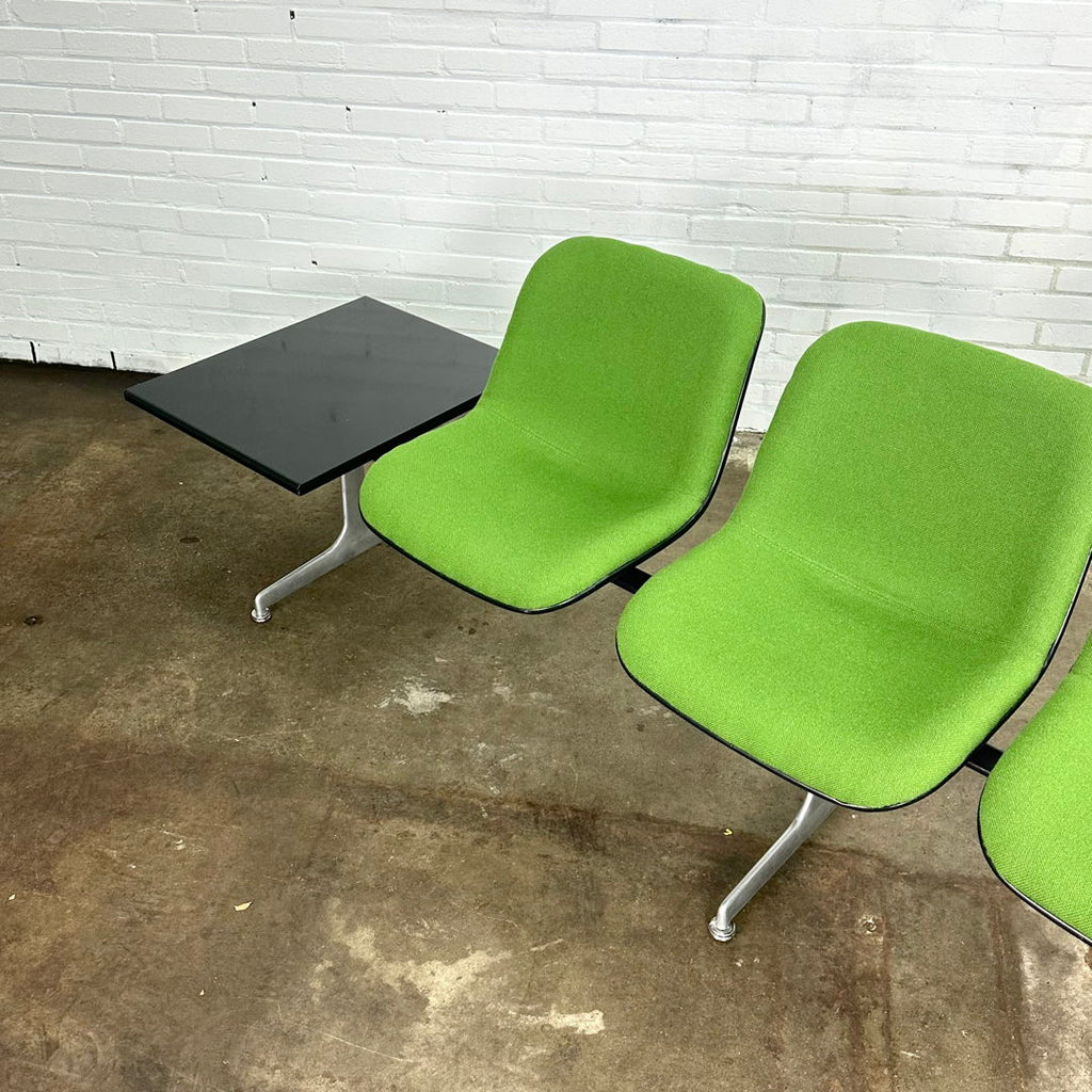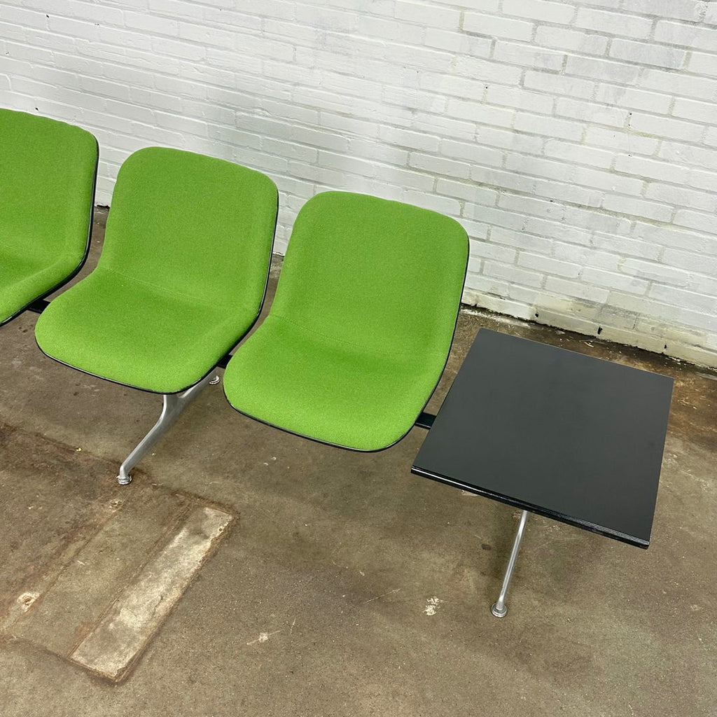 Description:Artifort Houtoku waiting room sofa, 3-seater, green/black. This bench is ideal for use in a shop, waiting area or restaurant. We have completely renovated the sofa: the planks have been repainted and the seats have new upholstery (see last photo of what the sofa looked like before!).