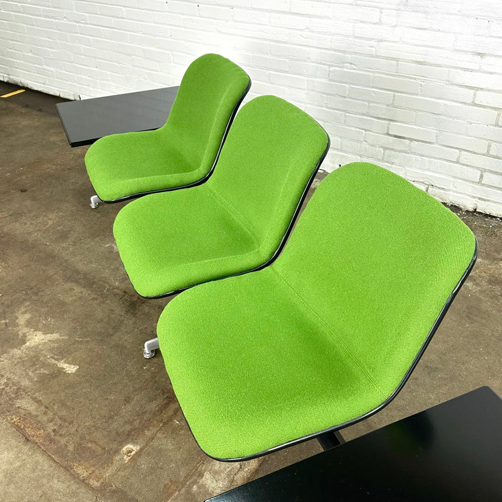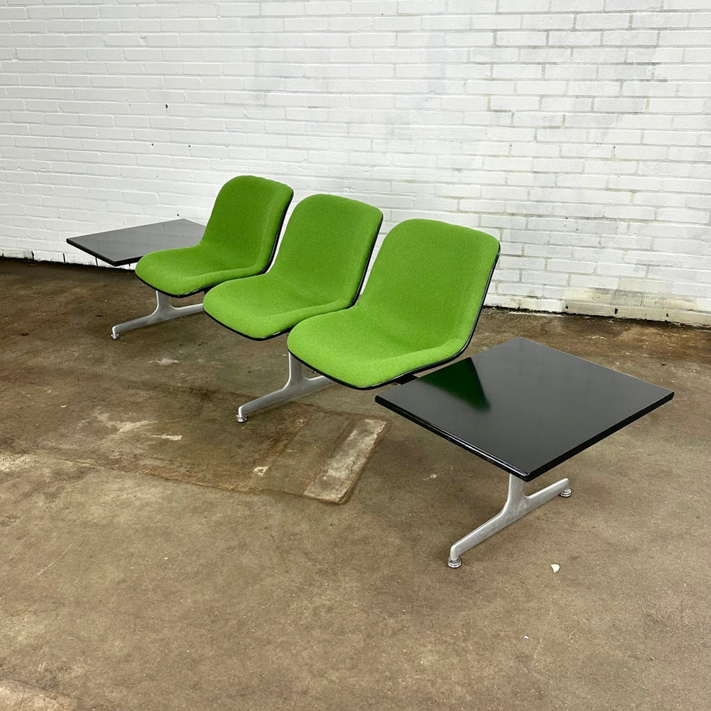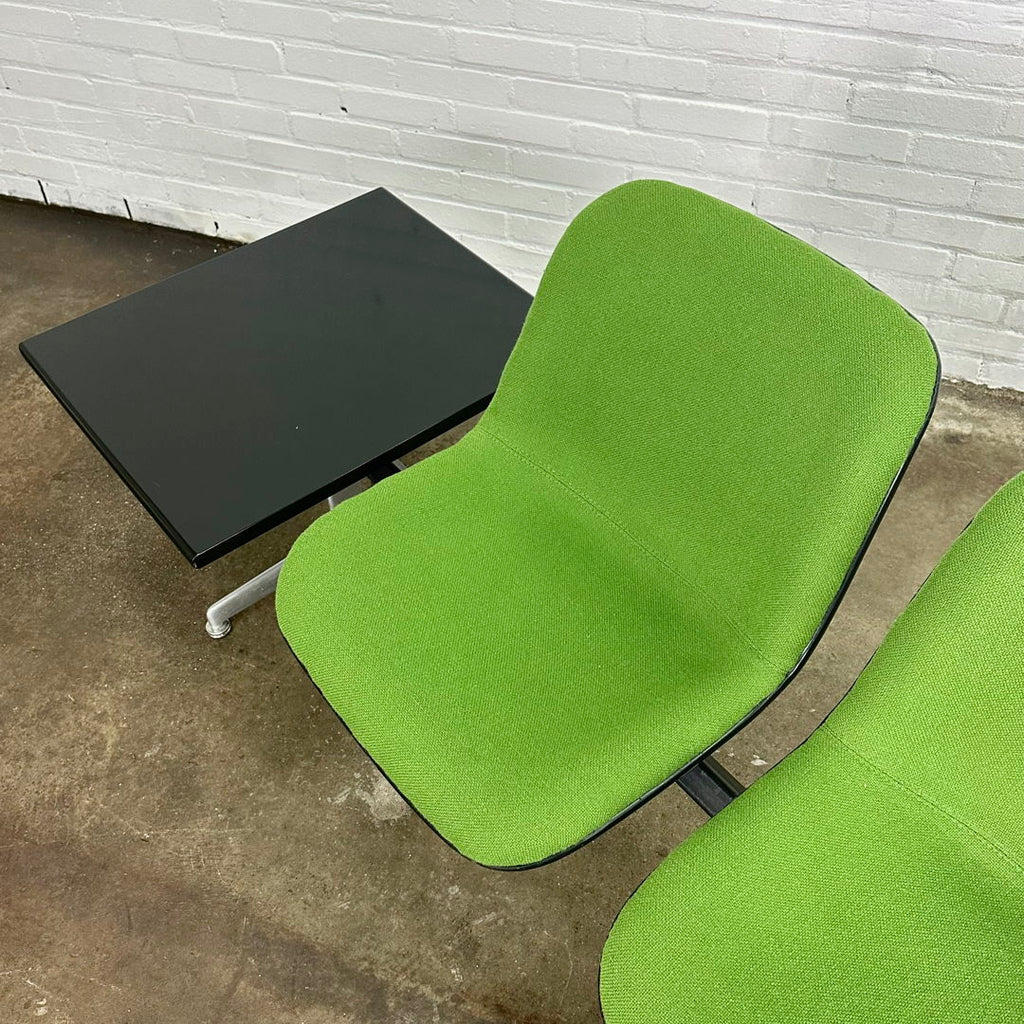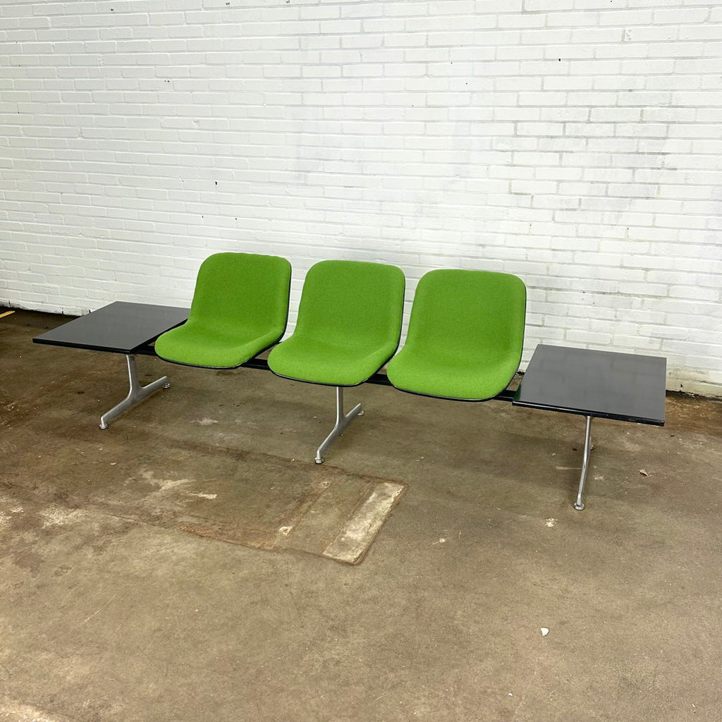Description:Artifort Houtoku waiting room sofa, 3-seater, green/black. This bench is ideal for use in a shop, waiting area or restaurant. We have completely renovated the sofa: the planks have been repainted and the seats have new upholstery (see last photo of what the sofa looked like before!).