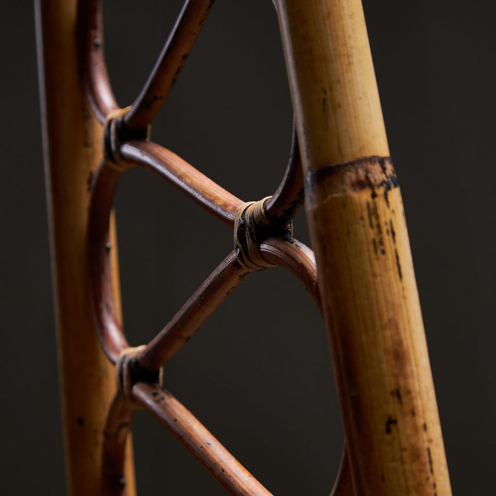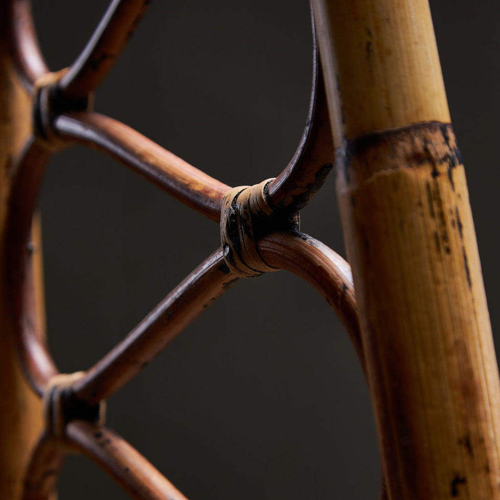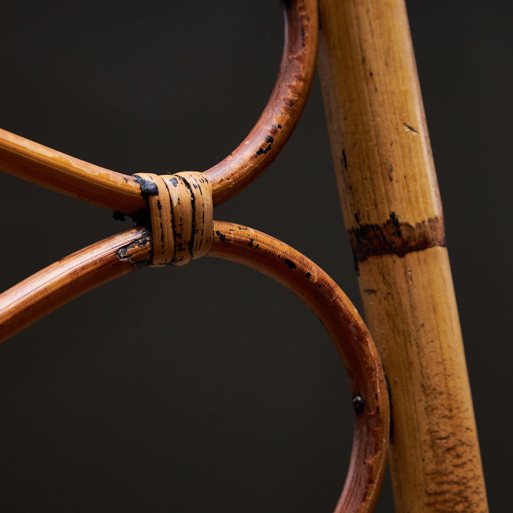 "피에란토니오 보나치나가 1960년 보나치나를 위해 디자인한 대나무 하이백 체어. 나선형과 라운드 디테일이 어우러진 절묘한 장인정신. 하자는 없지만 약간의 사용감이 있을 수 있는 상품입니다."