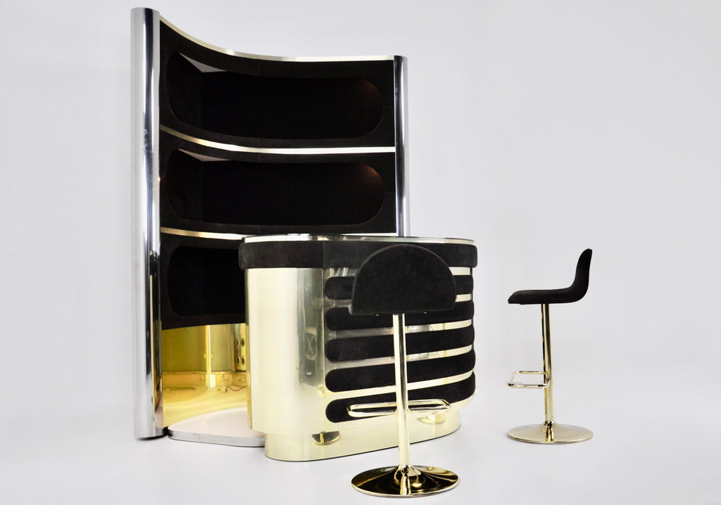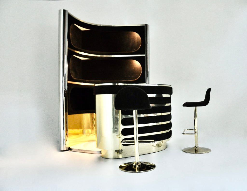 Bar set with 2 stools attributed to Willy Rizzo, 1970S