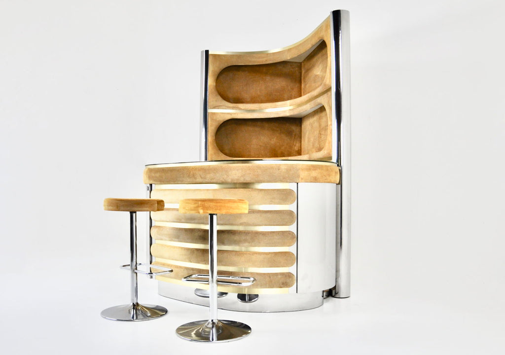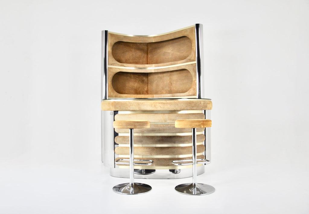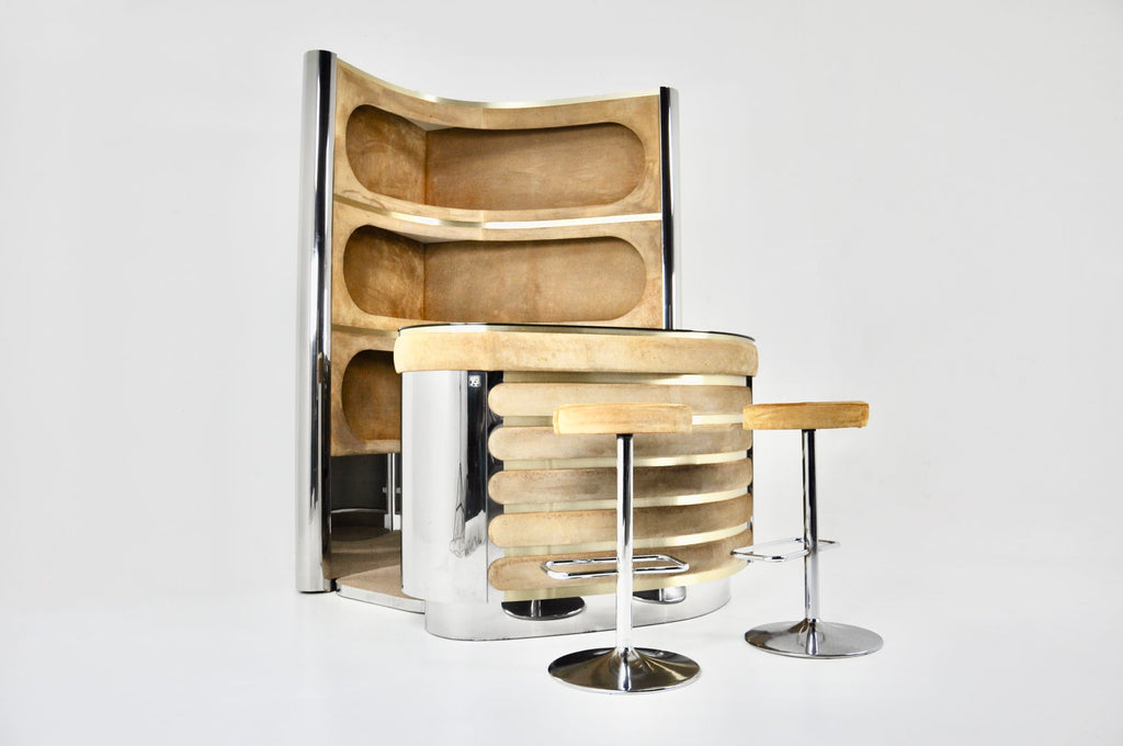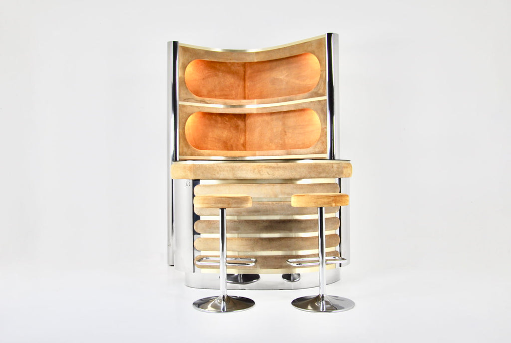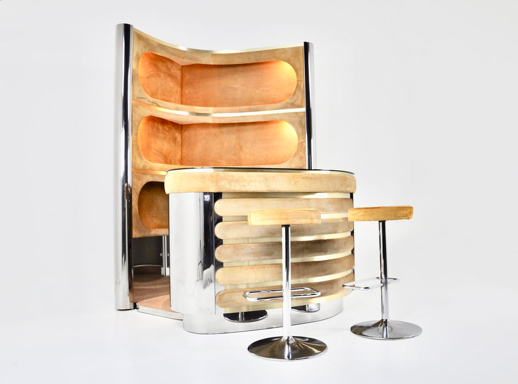 Bar set with 2 stools in the style of Willy Rizzo, 1970s