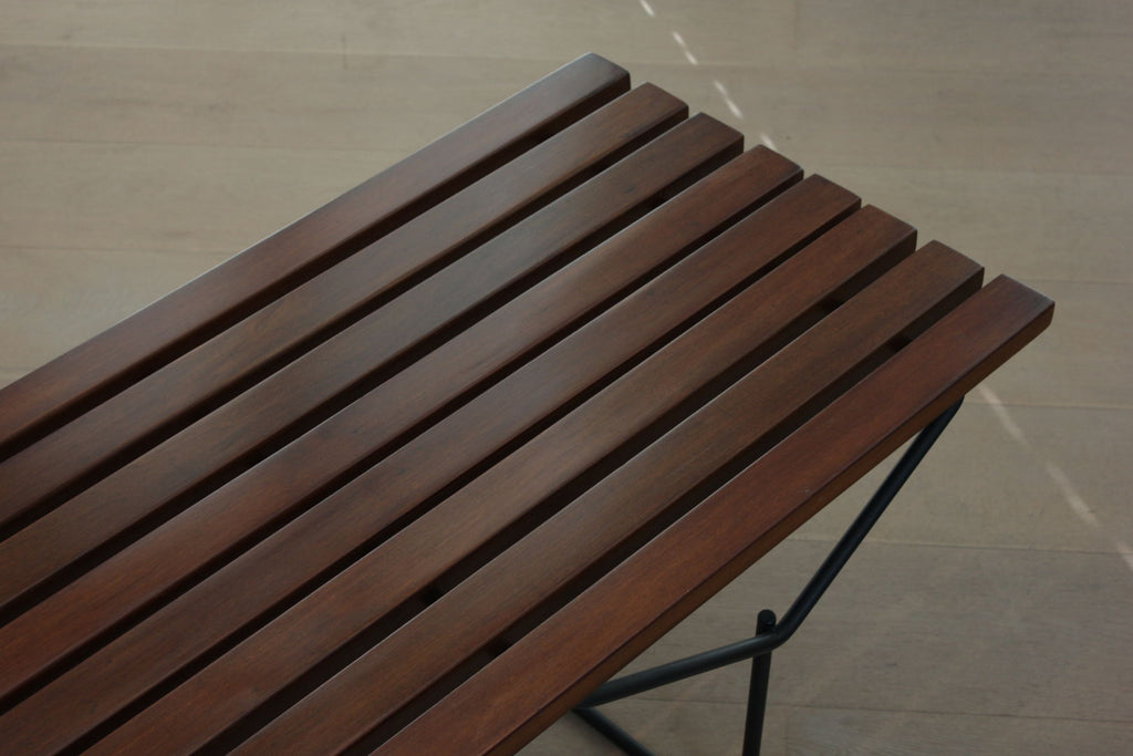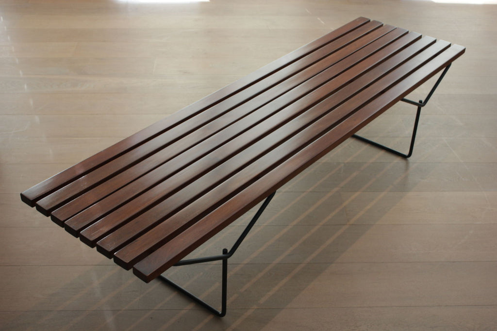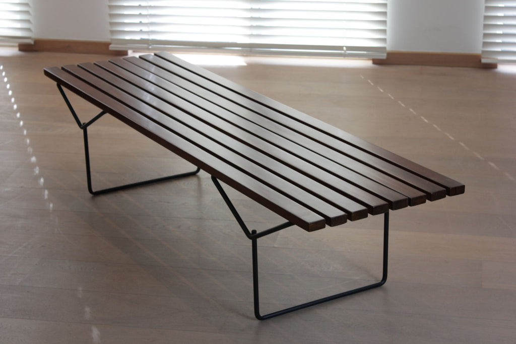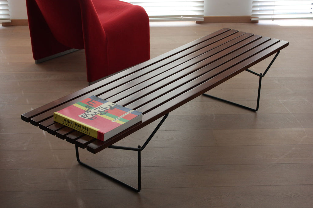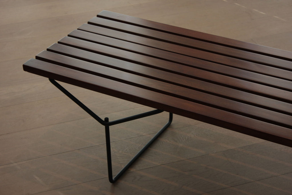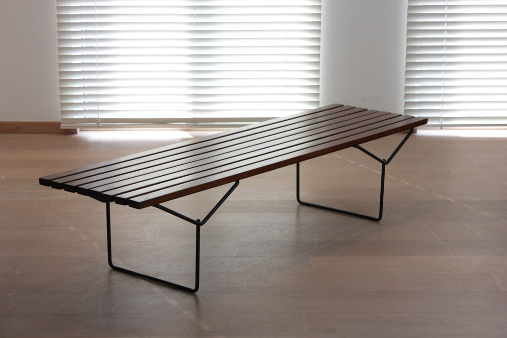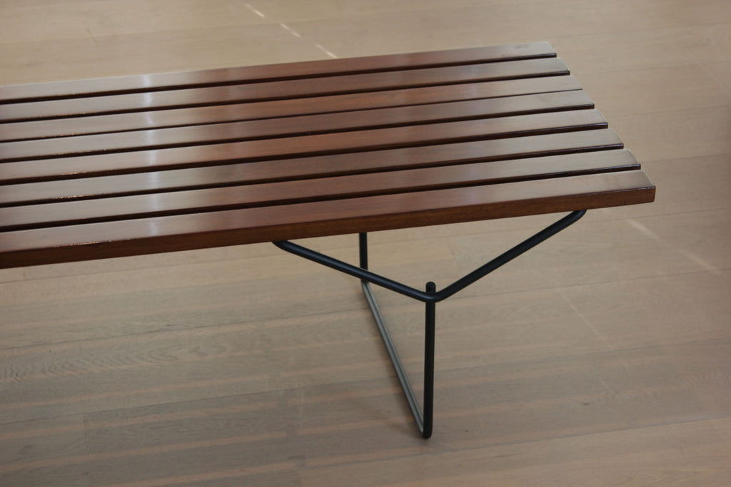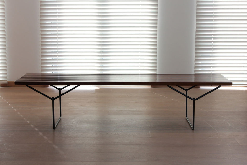 Knoll 1960년대 모델 400 USA를 위한 Harry Bertoia의 벤치 티크와 강철 높이 38.5cm, 너비 167cm, 깊이 47cm 1915년 이탈리아에서 태어난 Harry Bertoia는 미국에서 저명한 조각가이자 가구 디자이너가 되었습니다. 1930년 그곳에 정착한 후 그는 디트로이트 예술 공예 협회와 크랜브룩 예술 아카데미 같은 유명한 기관에서 공부했습니다. 월터 그로피우스(Walter Gropius), 찰스(Charles), 레이 임스(Ray Eames)와 같은 영향력 있는 인물들과의 만남은 그의 예술적 비전을 형성했습니다. 1950년에 그는 Florence Knoll의 초청으로 펜실베이니아에 스튜디오를 설립하고 용접 및 성형 와이어를 결합한 혁신적인 가구 디자인을 제작했습니다. Knoll International과의 협력을 통해 조각적 품질로 유명한 다이아몬드 의자와 모델 400 벤치(1952-53)와 같은 상징적인 작품을 제작했습니다. Bertoia의 예술적 추구는 가구를 넘어 Sonambient로 알려진 대규모 조각품까지 확장되었습니다. 그의 경력 전반에 걸쳐 그는 수많은 상을 받았으며 그의 작품은 전 세계적으로 권위 있는 컬렉션에 소개되었습니다. 그는 1978년에 세상을 떠났고, 디자인과 예술 분야에 지속적인 유산을 남겼습니다.