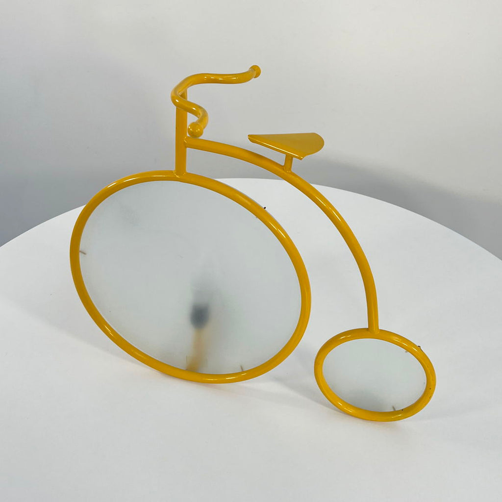 L'Isolache Non C'è의 Bicicletta 테이블 램프, 1980년대 디자이너 - L'Isolache Non C'è 디자인 기간 - 80년대 측정 - 폭 47cm x 깊이 12cm x 높이 42cm 재질 - 금속, 유리 색상 - 노란색 전기적 특성 - 유럽식 플러그(최대 240)/전구 E14 상태 - 좋은 의견 - 연식 및 사용에 따른 가벼운 마모.