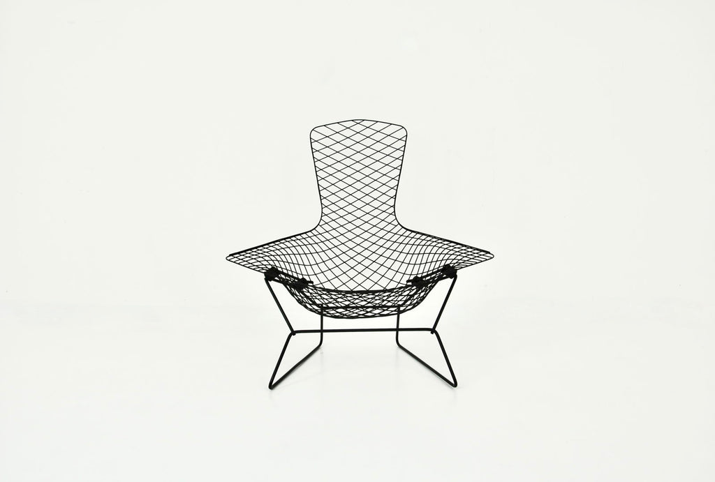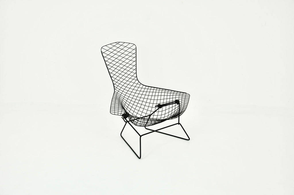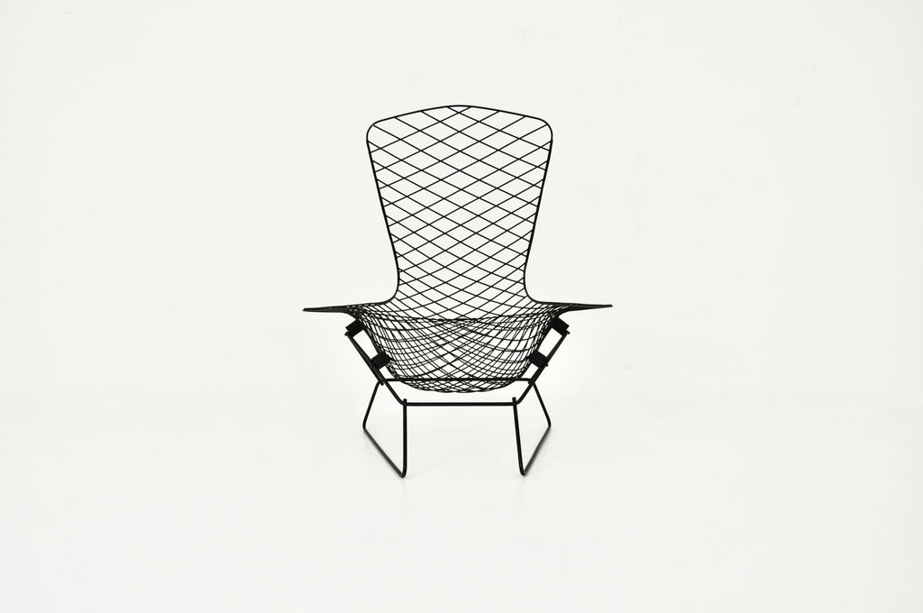 Black metal chair by Harry Bertoia. Model: Bird. Seat height: 22 cm. Wear due to time and age of the chair.