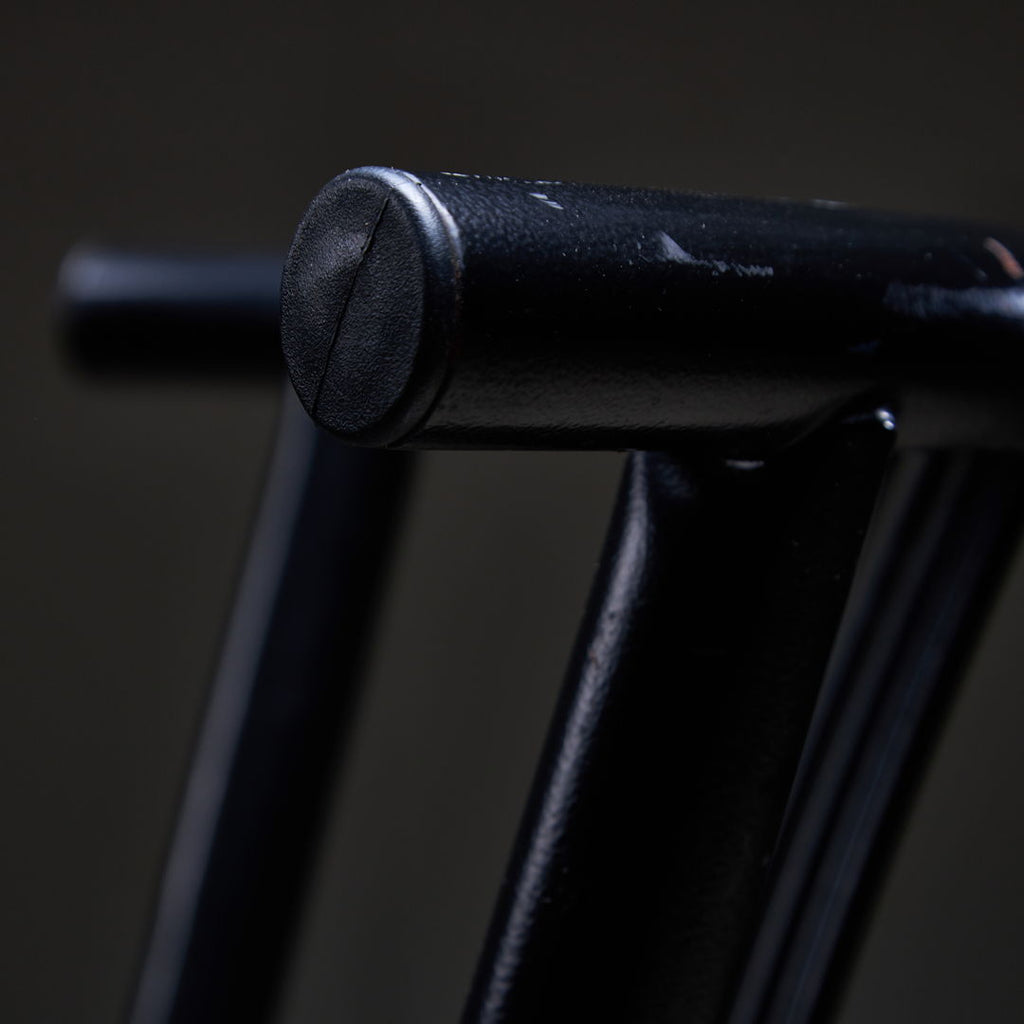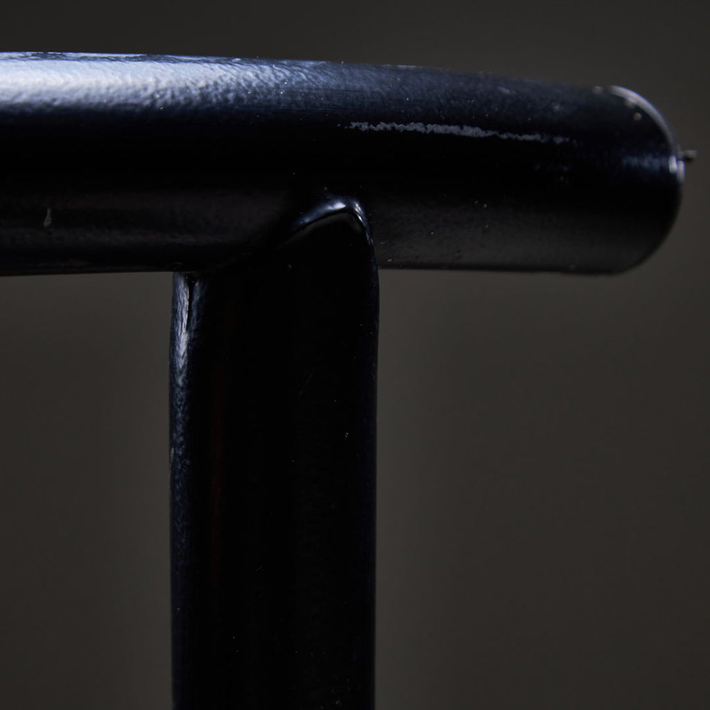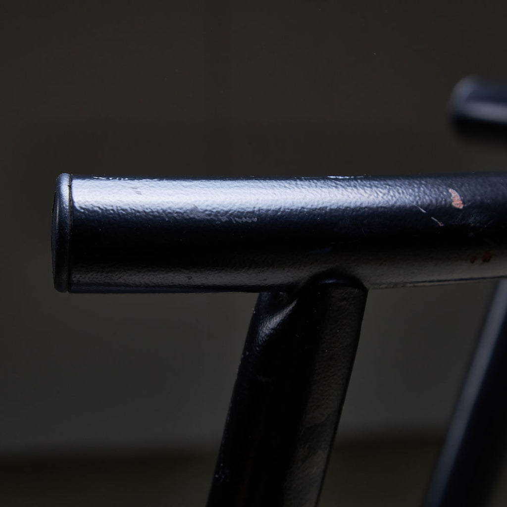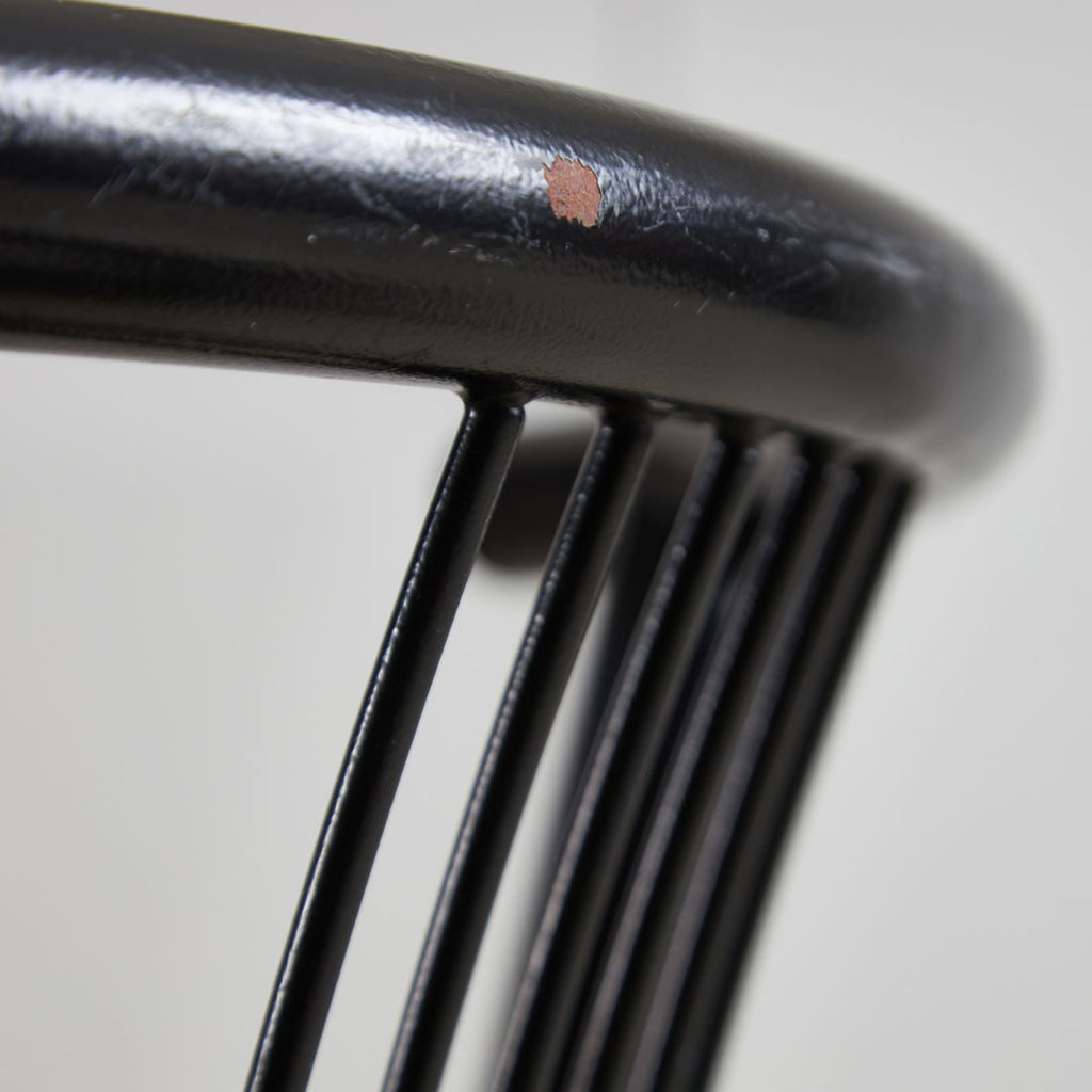 "우아한 형태와 섬세한 라인의 블랙 메탈 튜브 프레임, 80년대 이탈리아산 원형 합성가죽 시트. 등받이 중앙에 6개의 얇은 스틱이 있습니다. 스타일리시한 집에 완벽한 다이닝룸 의자입니다. 세트 4 약간의 긁힘과 사용감이 있지만 상태는 좋습니다." 4개 세트 가격