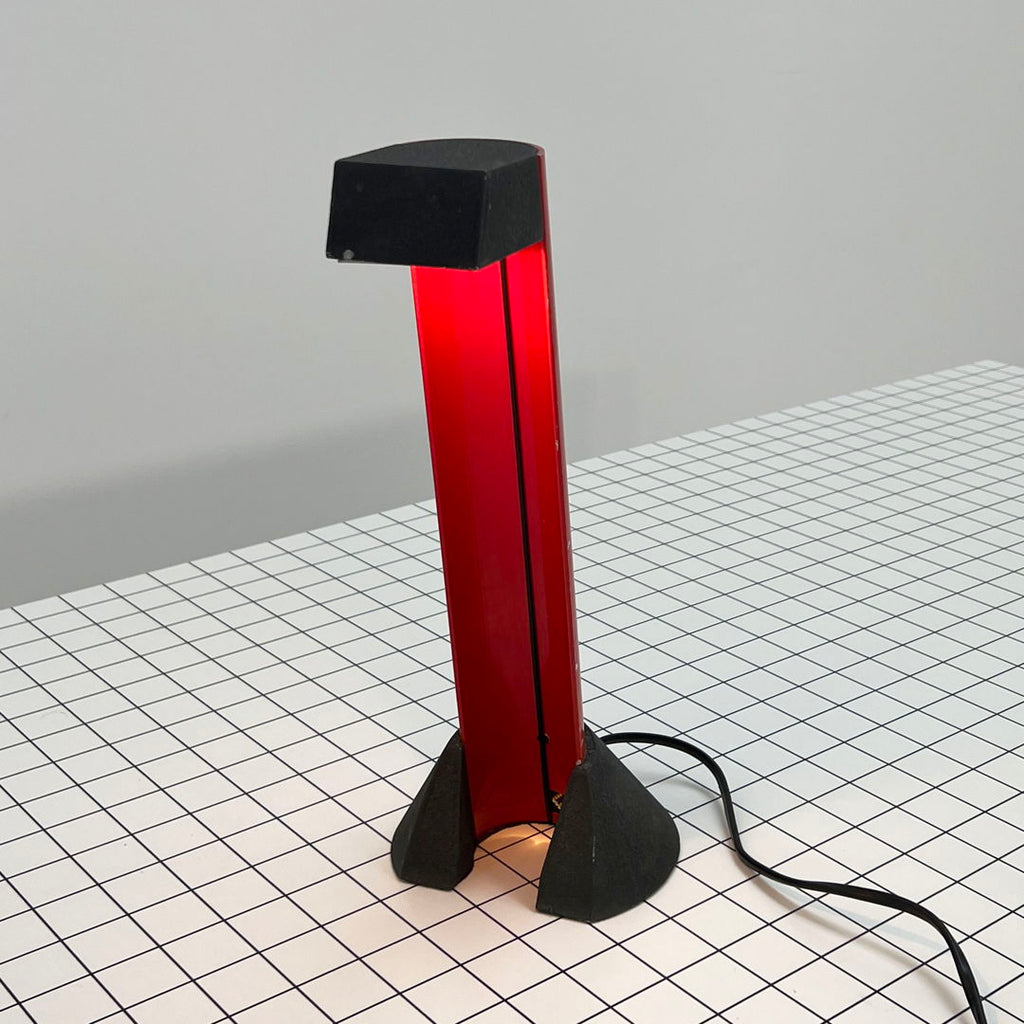 Effetto Luce의 블랙 & 레드 메탈 테이블 램프, 1980년대 제작자 - Effetto Luce 설계 기간 - 80년대 측정 - 폭 13cm x 깊이 15cm x 높이 34cm 재질 - 메탈 색상 - 검정색, 빨간색 전기적 특성 - 유럽형 플러그(200-240V) / GY635 상태 - 좋은 코멘트 - 연식 및 사용감에 따른 가벼운 착용감.