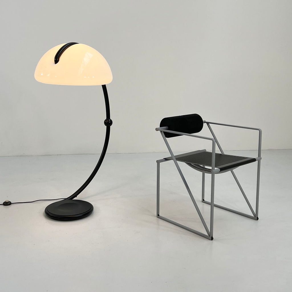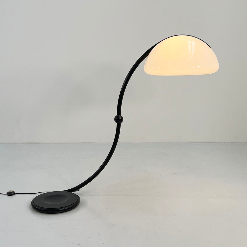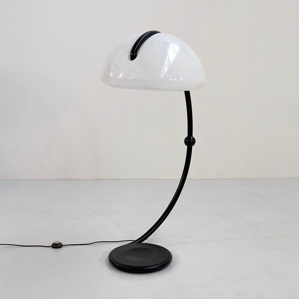 Martinelli Luce를 위한 Elio Martinelli의 Black Serpente 플로어 램프, 1970년대 디자이너 - Elio Martinelli 프로듀서 - Martinelli Luce 모델 - Serpente 플로어 램프 설계 기간 - 70년대 측정 - 폭 60cm x 깊이 80cm x 높이 120cm 재질 - 금속, 플라스틱 색상 - 검정색 , 화이트 상태 - 좋은 코멘트 - 연식 및 사용감에 따른 가벼운 착용감입니다.