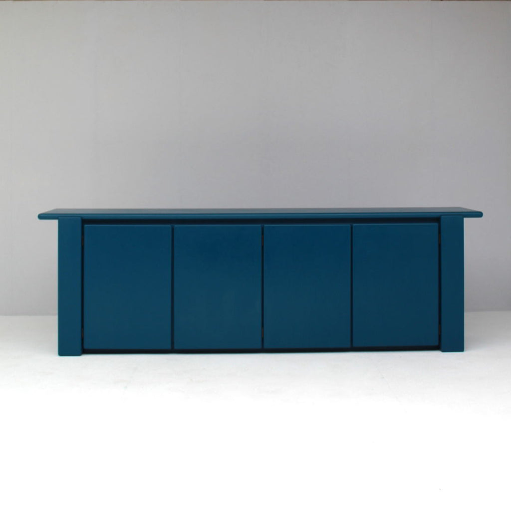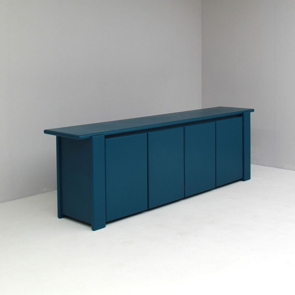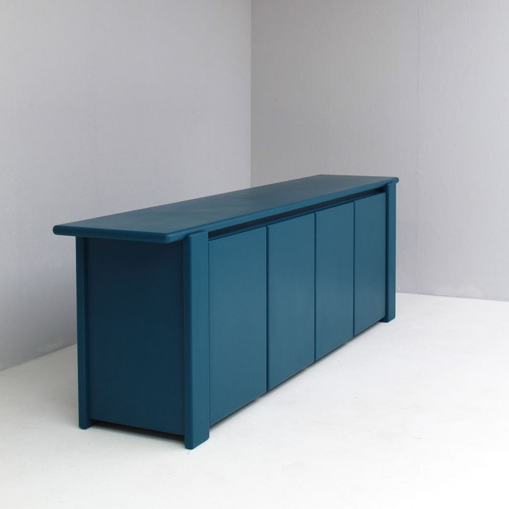 월넛 원목으로 만든 아름다운 파란색 찬장입니다. 문 하나에는 서랍이 있습니다. 크기 H79 x D52 x L248cm