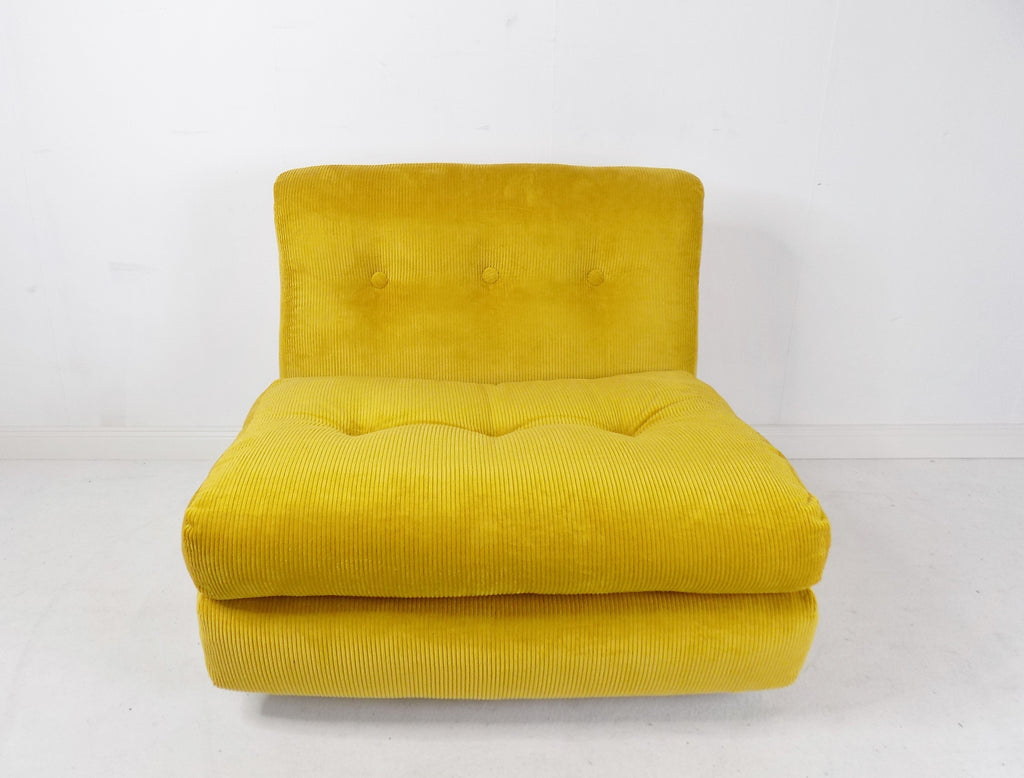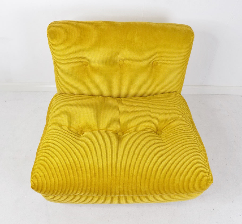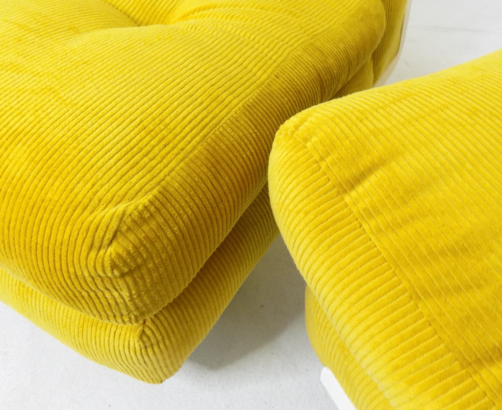 이 2개의 Amanta 안락의자는 수선화꽃과 같은 옐로우색상 패브릭으로 업홀스터리 되어 있습니다.