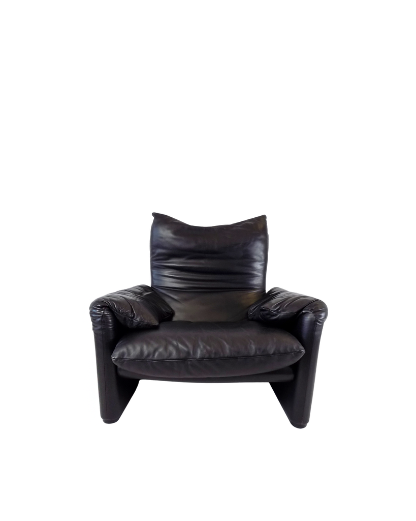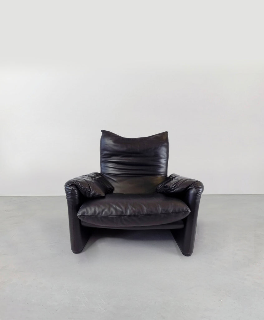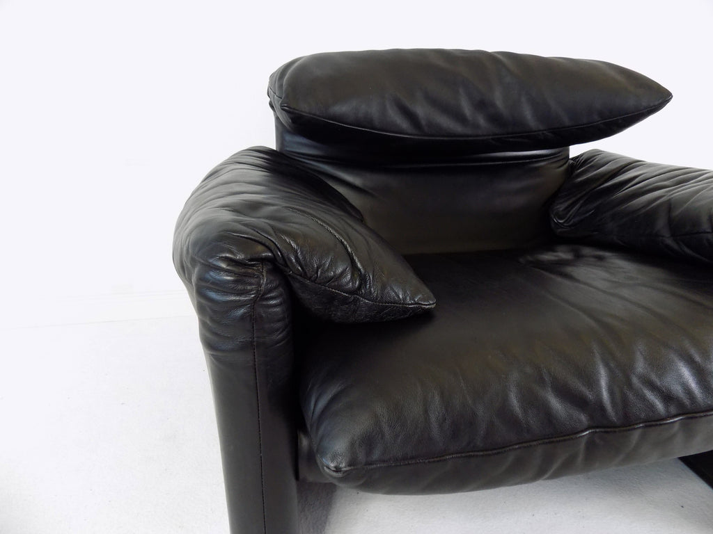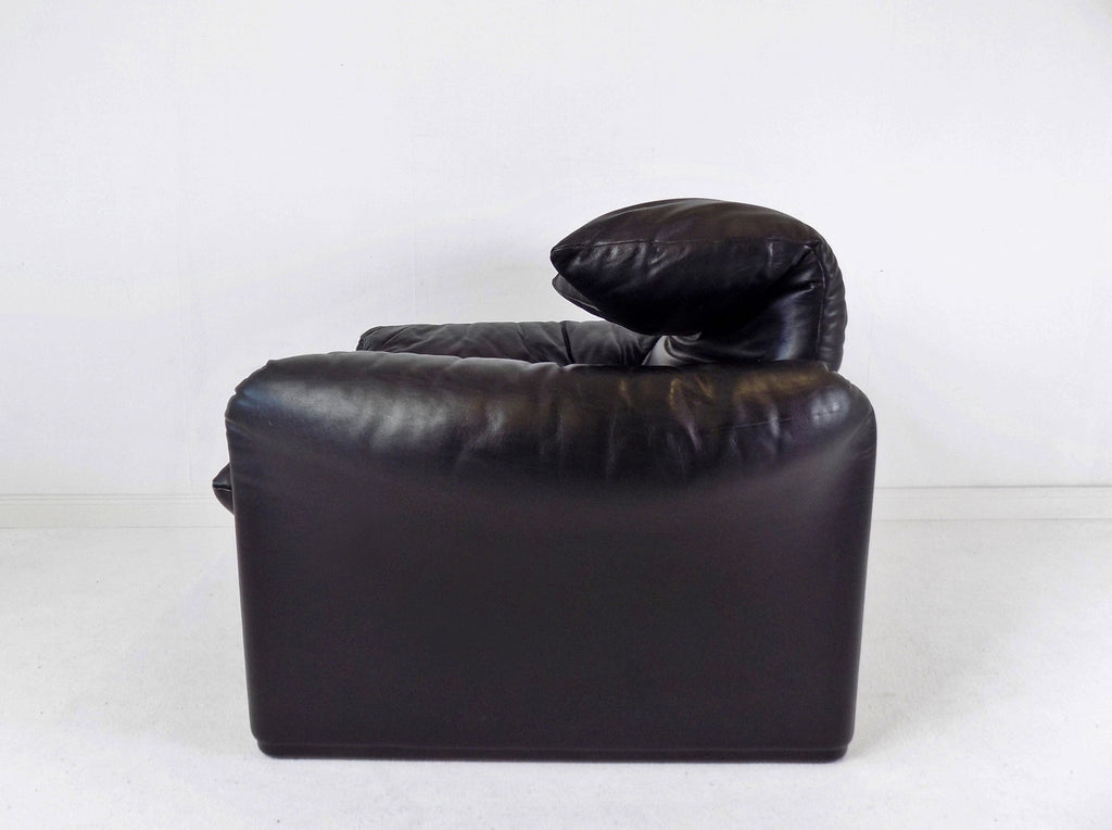 Cassina Maralunga leather armchair black by Vico Magistretti