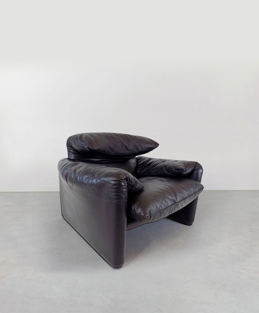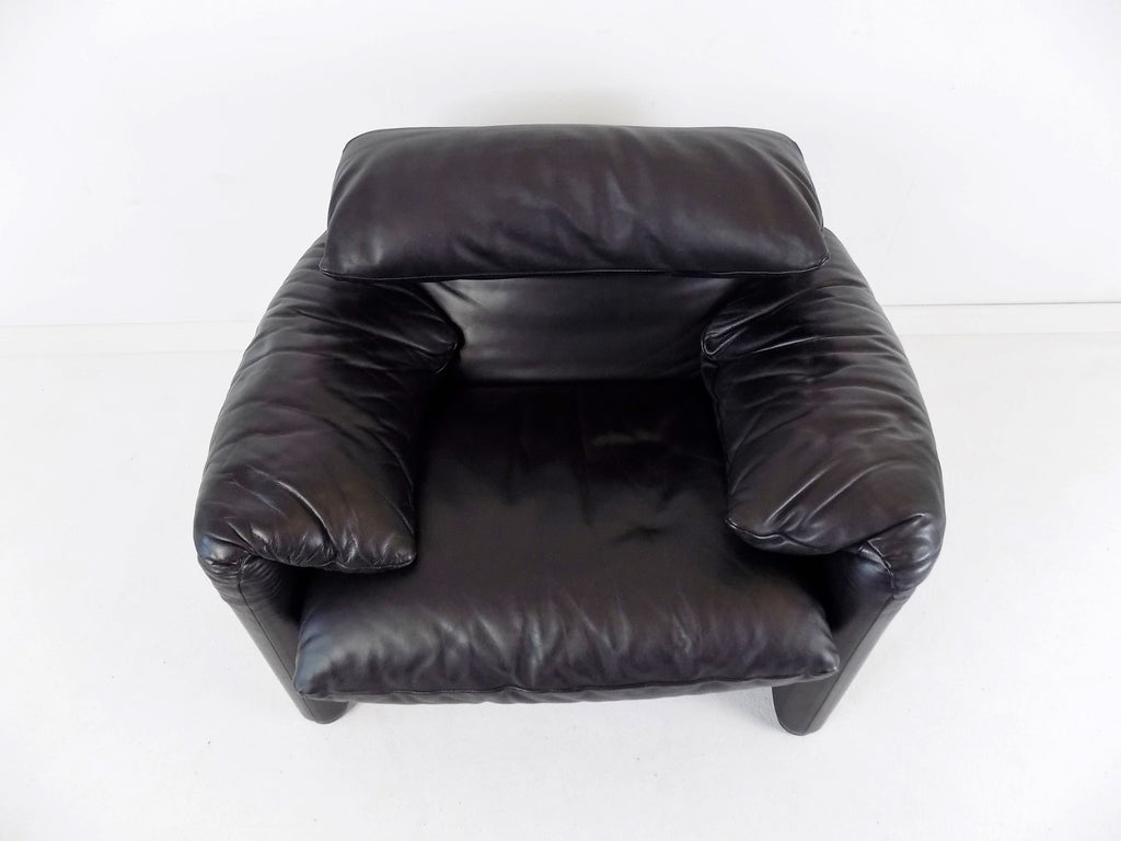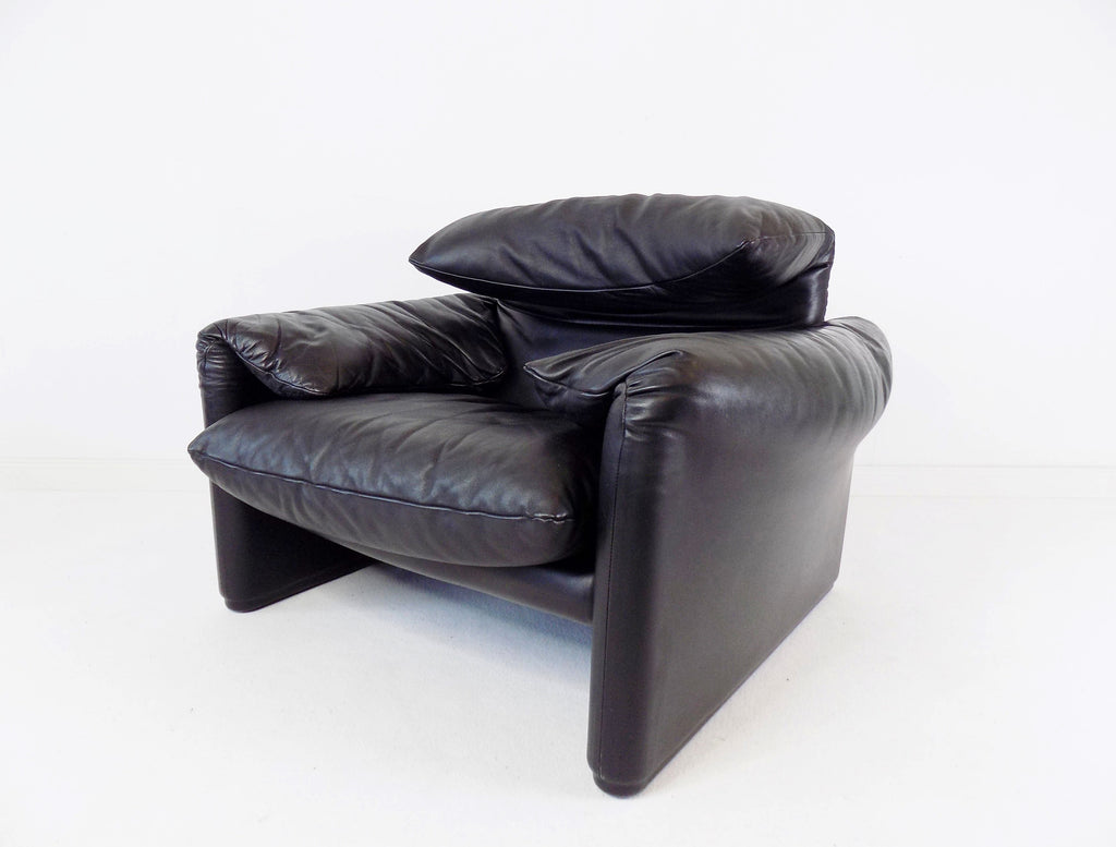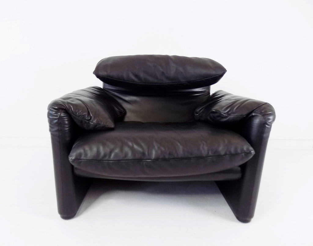 Cassina Maralunga leather armchair black by Vico Magistretti