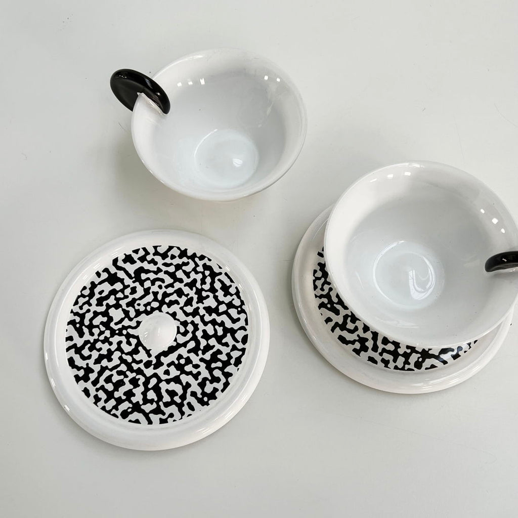 MAS 이탈리아를 위한 L. Saccardo & M. Materassi의 세라믹 서비스, 1980년대 디자이너 - Luigi Saccardo & Massimo Materassi 프로듀서 - MAS 이탈리아 디자인 기간 - 80년대 측정 - 폭 25/15 cm x 깊이 15/12 cm x 높이 16/8 cm 재료 - 세라믹 색상 - 블랙, 화이트 상태 - 좋은 코멘트 - 연식 및 사용감에 맞게 가벼운 착용감입니다.