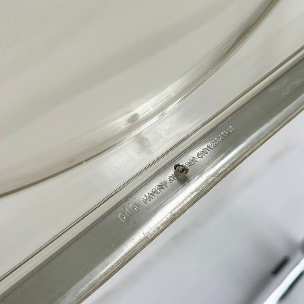 Giancarlo Piretti의 Anonima용 투명 Plia 접이식 의자, 1960년대 2개 사용 가능 - 가격은 개당 가격 디자이너 - Giancarlo Piretti 프로듀서 - Anonima Castelli 모델 - Plia 의자 디자인 기간 - 60년대 치수 - 폭 46cm x 깊이 50cm x 높이 75cm x 좌석 높이 44cm 재질 - 금속, 플라스틱 색상 - 실버, 투명 연한 사용감에 따라 빛이 일관됩니다. 플라스틱에 약간의 흠집이 있습니다. 프레임은 때때로 일부 지역에서 약간의 따끔거림/녹슬림이 있습니다. 세부 사진을 참조하세요.