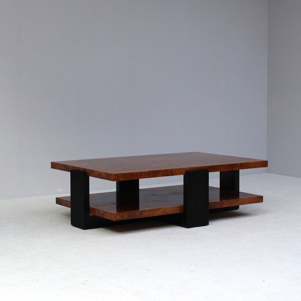 벌우드 소재의 대형 커피 테이블. 사용 흔적이 거의 없습니다. 크기: H43 x D90 x L137cm