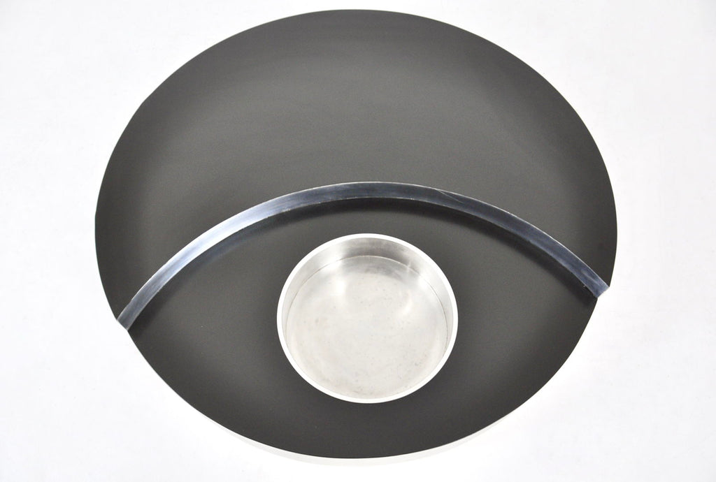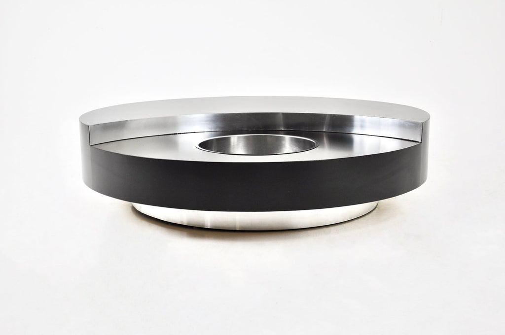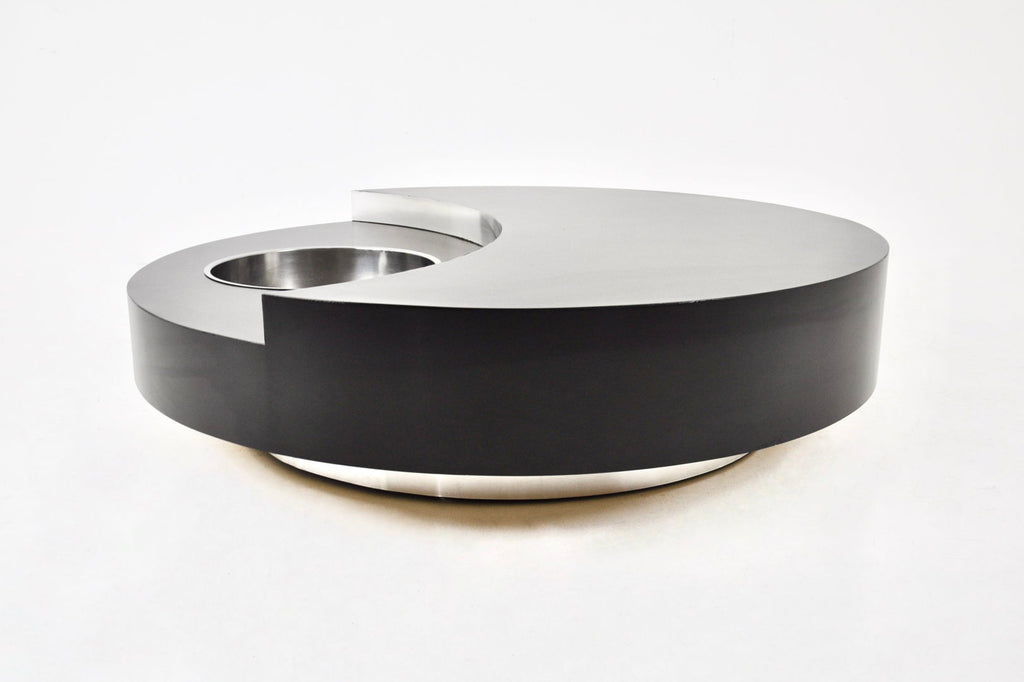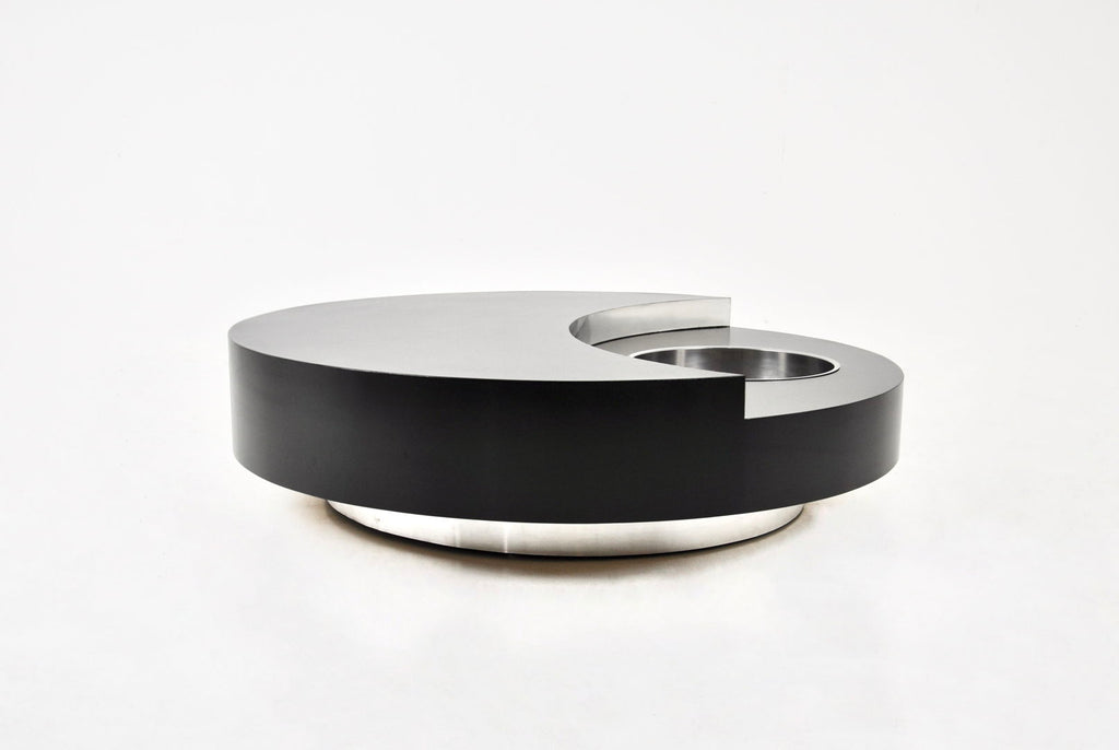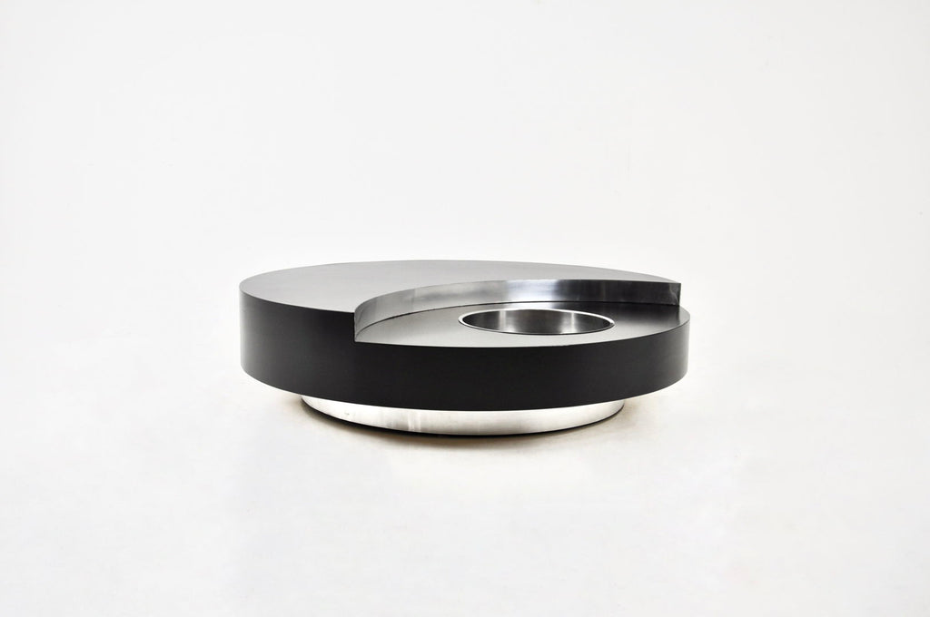 Coffee table in black wood and metal with an integrated ice bucket. The coffee table turns on itself. Designed by Willy Rizzo. Wear due to age and age of the coffee table.
