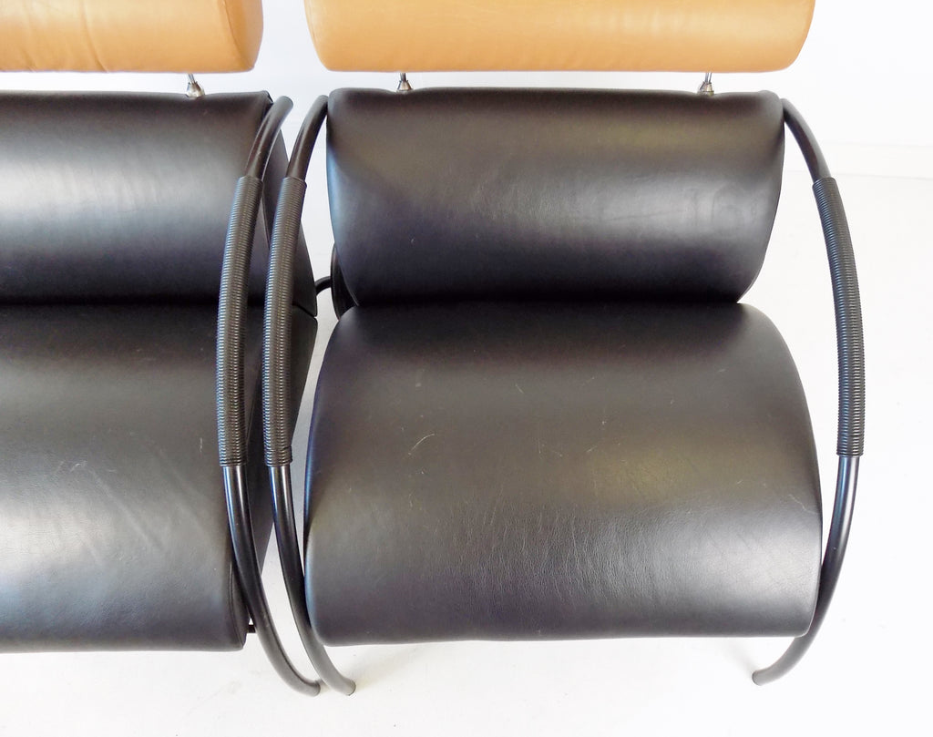 두 안락의자의 가죽은 마모의 흔적이 거의 없으며 매트 블랙 메탈 프레임도 마찬가지입니다.
