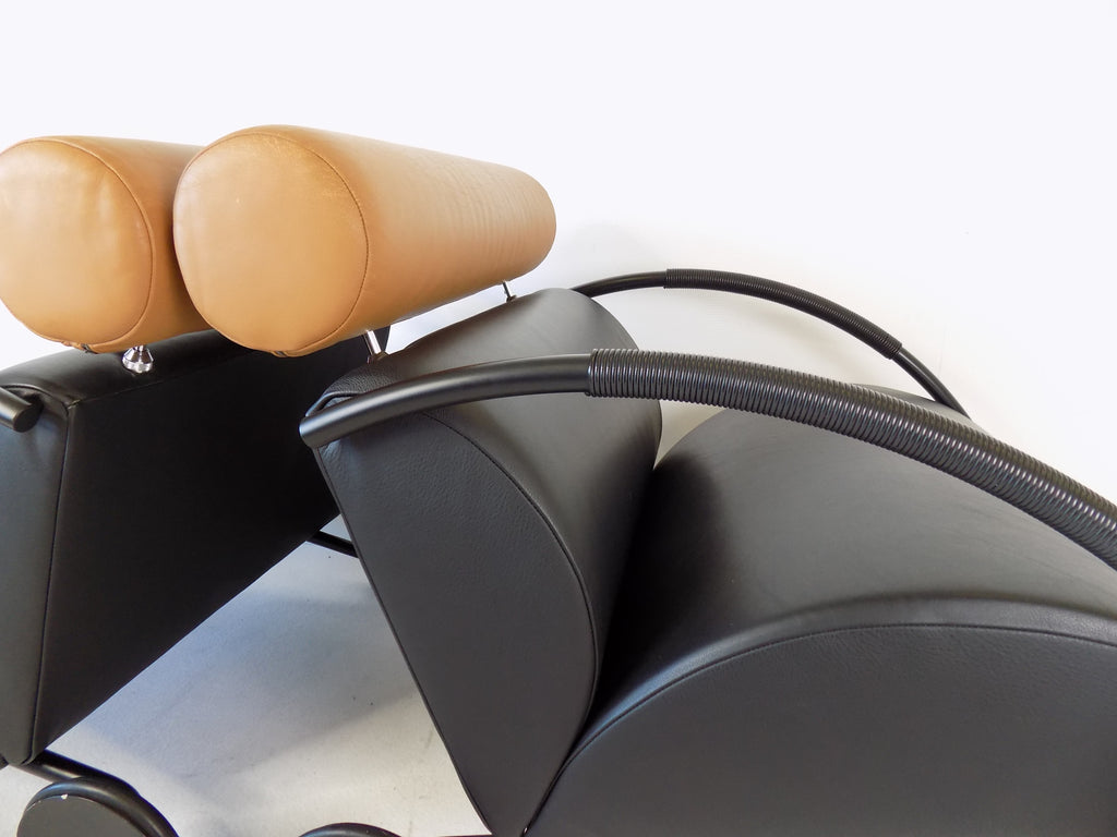 가장 인기 있는 색상 조합 중 하나인 Zyklus 2종 세트는 코냑 색상의 머리 받침, 검은색 프레임 및 검은색 바퀴가 있는 검은색 가죽으로 매우 좋은 상태를 유지하고 있습니다.