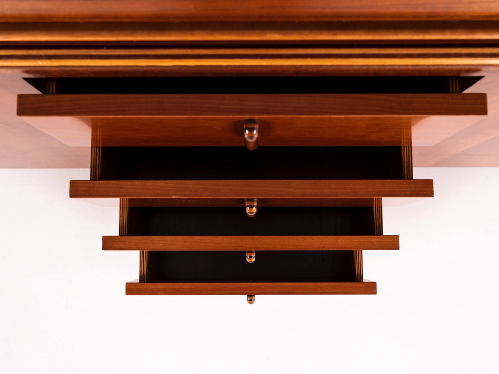 아르 데코 스타일을 가지고 있지만 후기의 것입니다. 디자인은 가장자리에 둥근 모양과 아름답게 섬세한 핸들이 있습니다. 또한 4개의 도어, 다중 선반 및 4개의 서랍으로 매우 실용적입니다. 상단 중간 선반에는 탬버 도어가 있습니다.