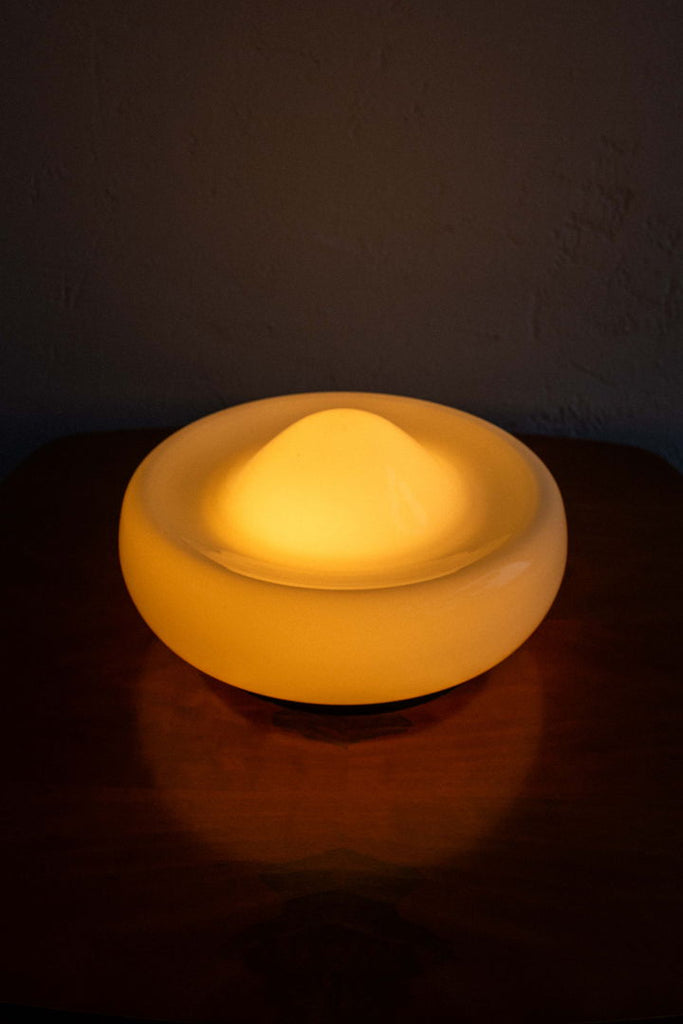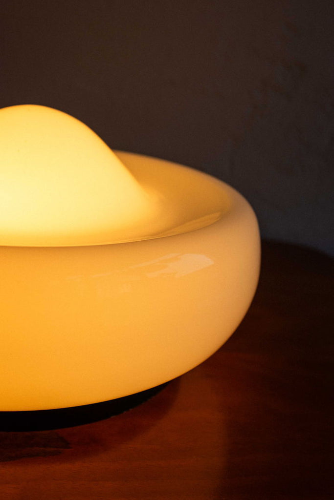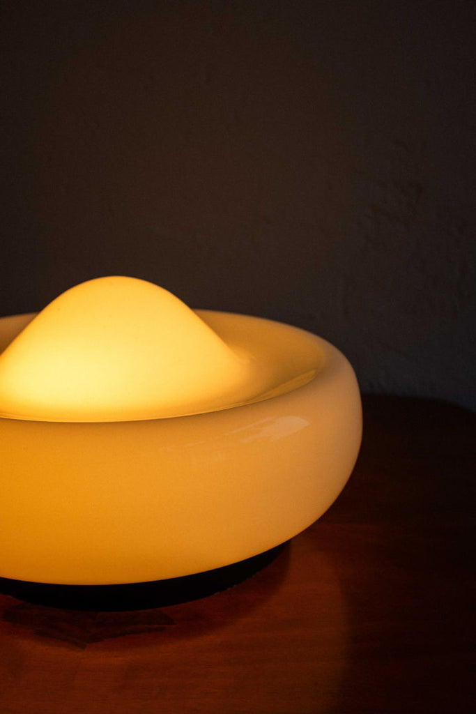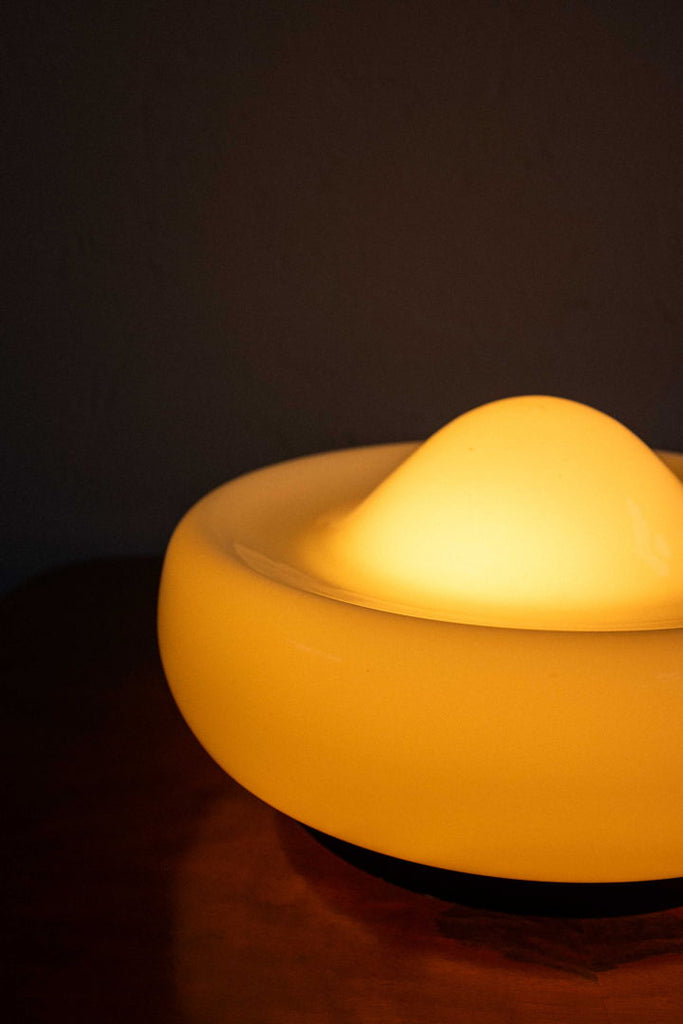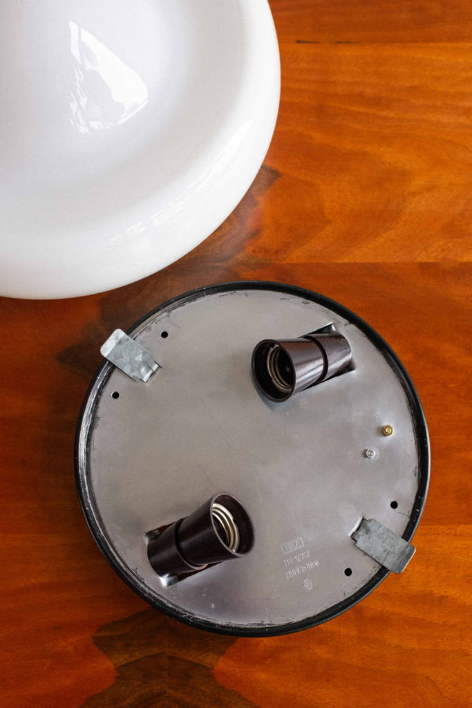 80년대 Valašské Meziříčí의 Osvětlovací Sklo가 만든 체코슬로바키아 벽 램프. 검정색으로 칠해진 금속 베이스에 우유빛 유리 갓이 있습니다. 유리 중앙에 있는 작은 칩은 아주 가까이서 봐야만 보입니다. 완전히 복원되고 다시 배선되었으며 E27 전구 2개가 필요합니다.