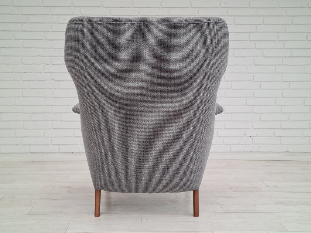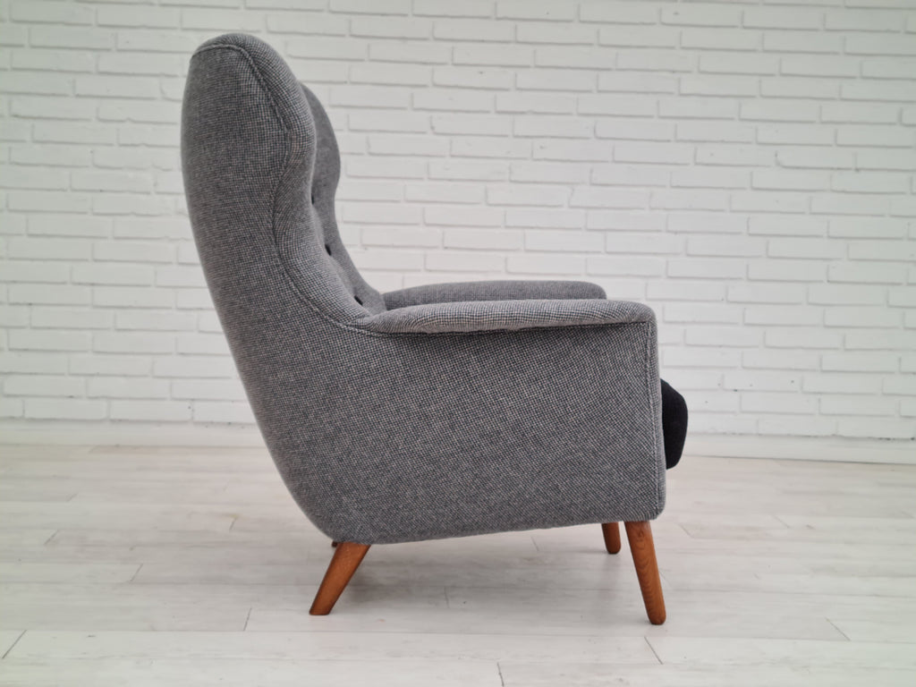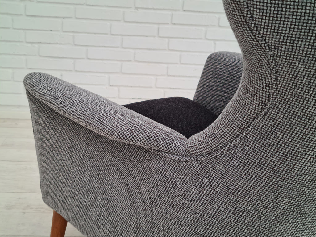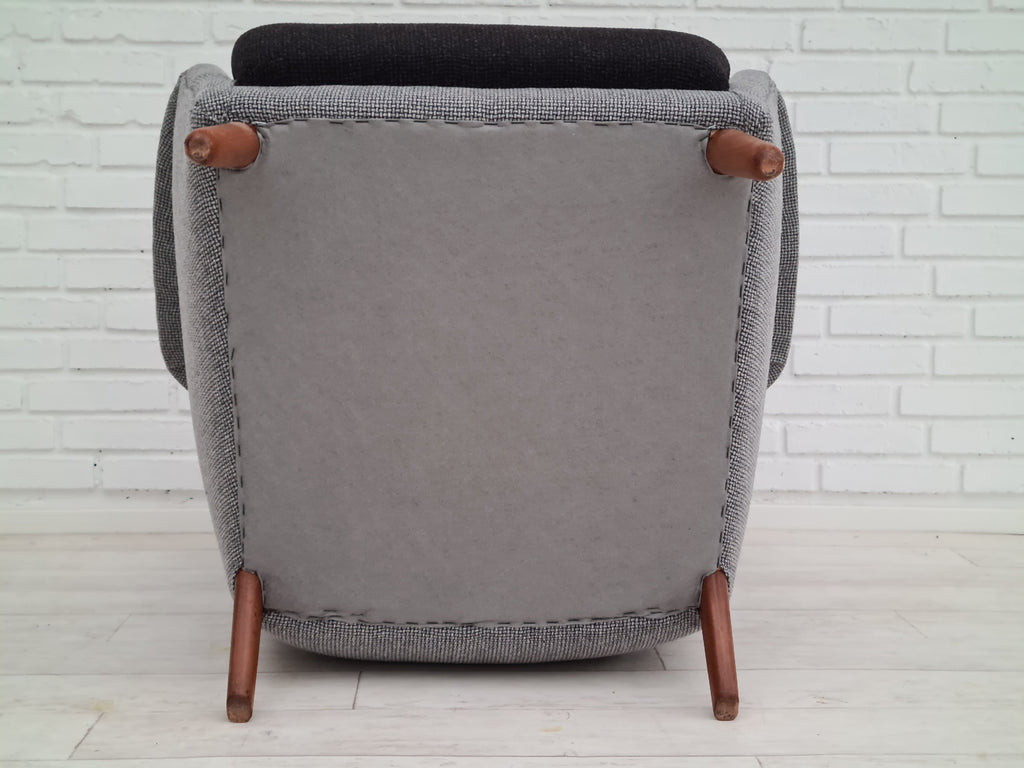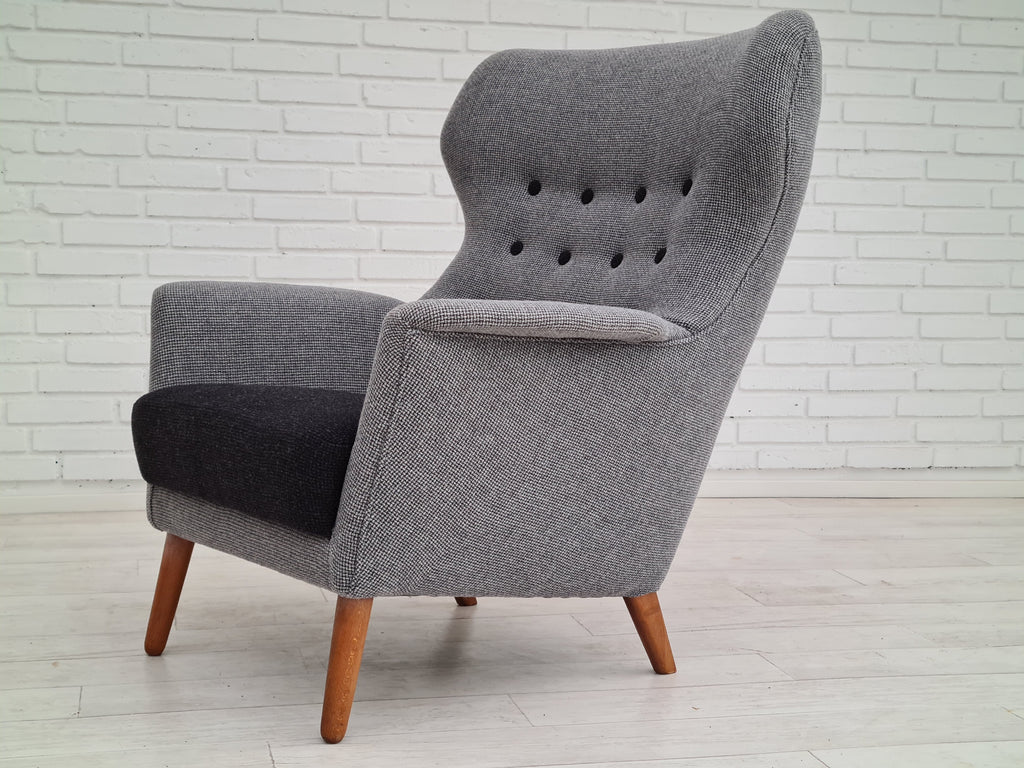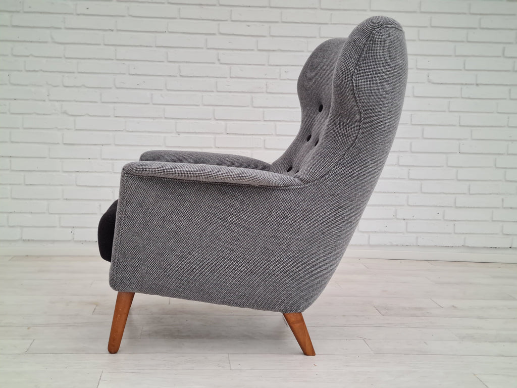 Danish design, 1960s, completely reupholstered relax armchair, quality furniture wool fabric