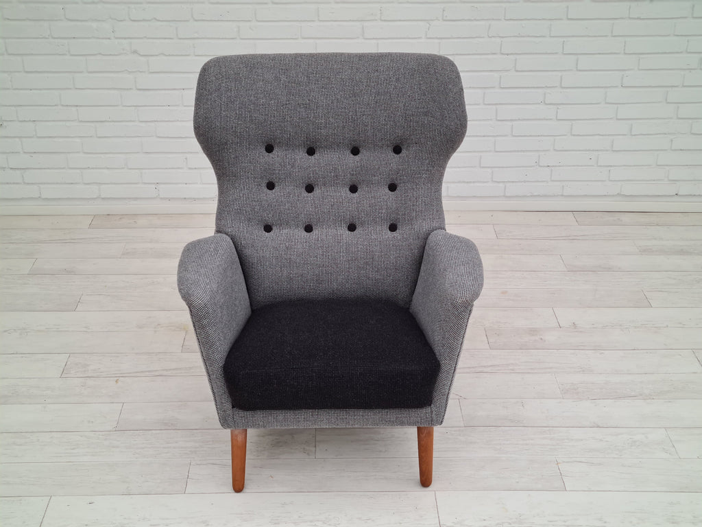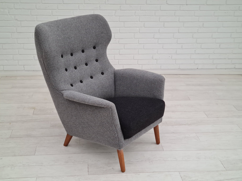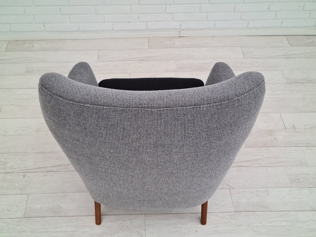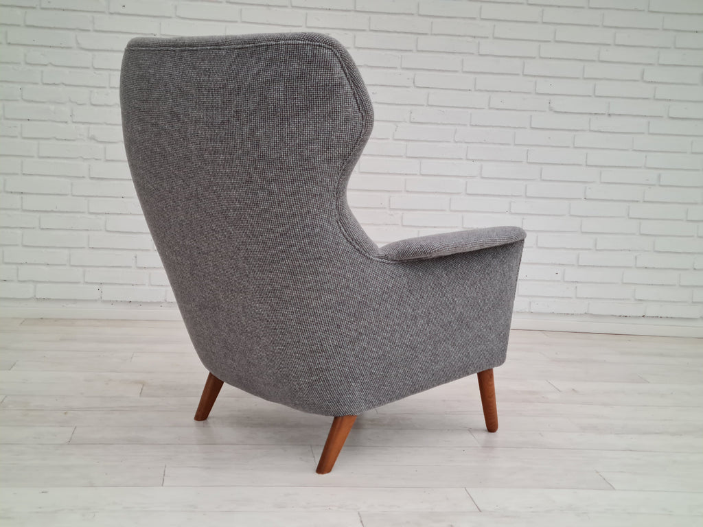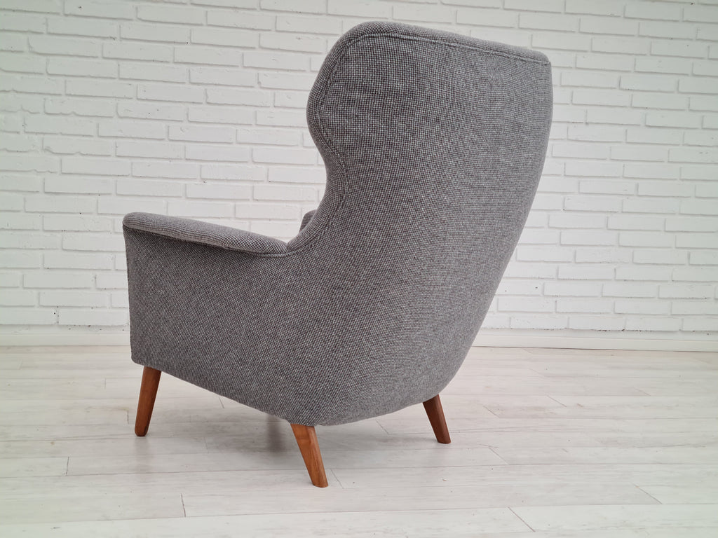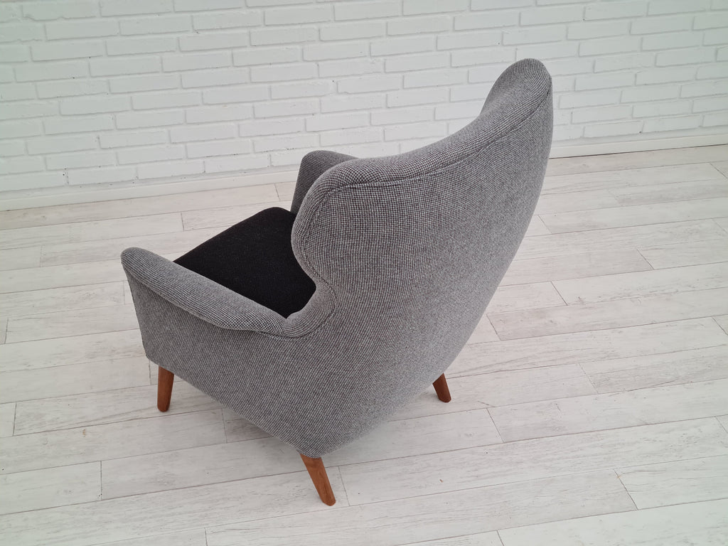Danish design, 1960s, completely reupholstered relax armchair, quality furniture wool fabric