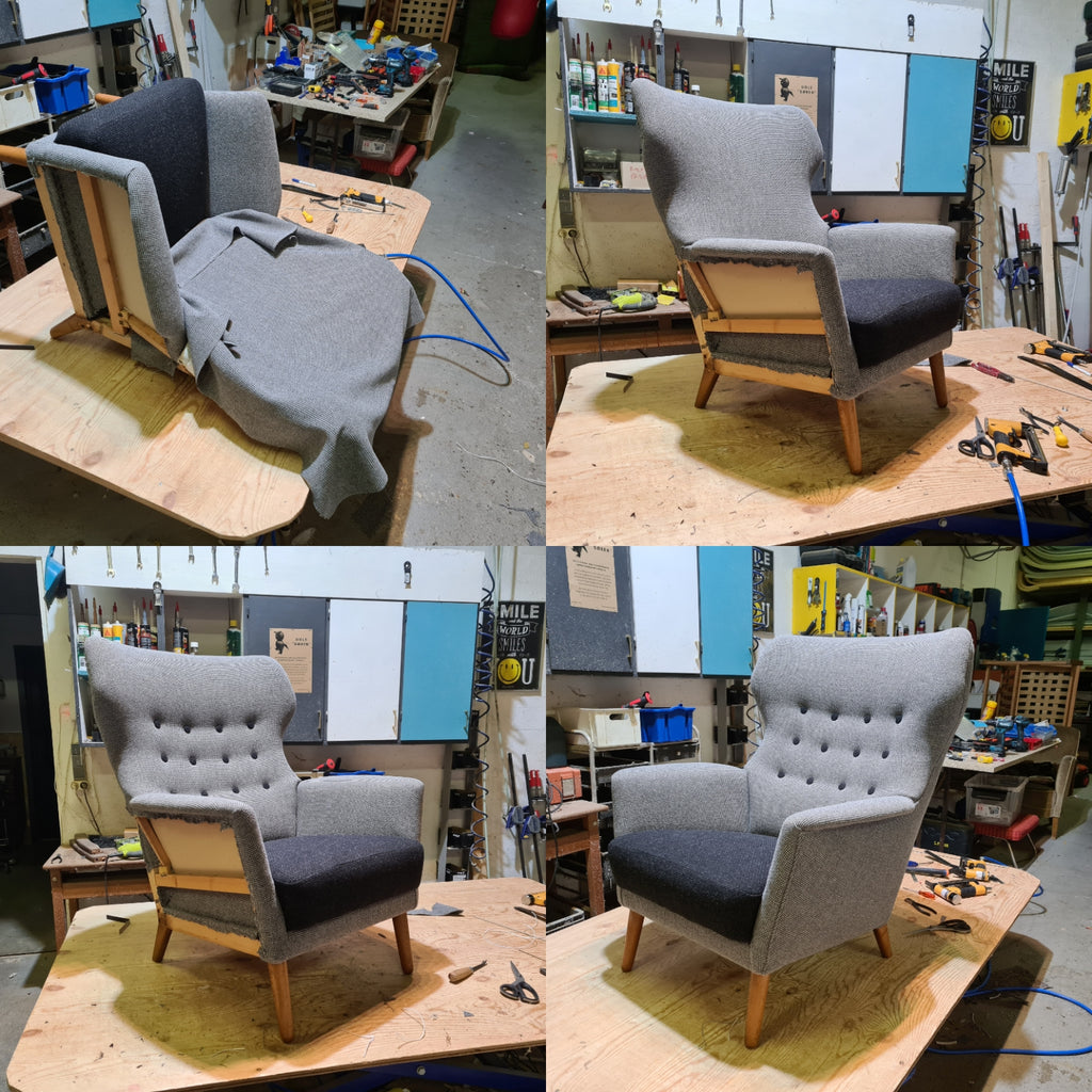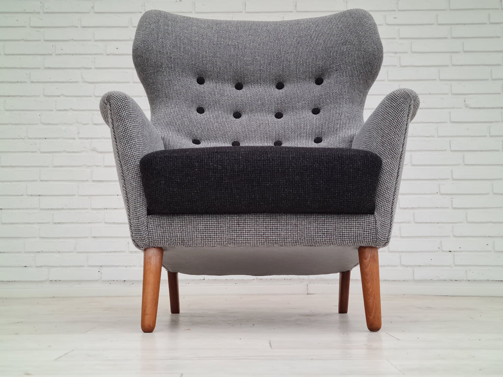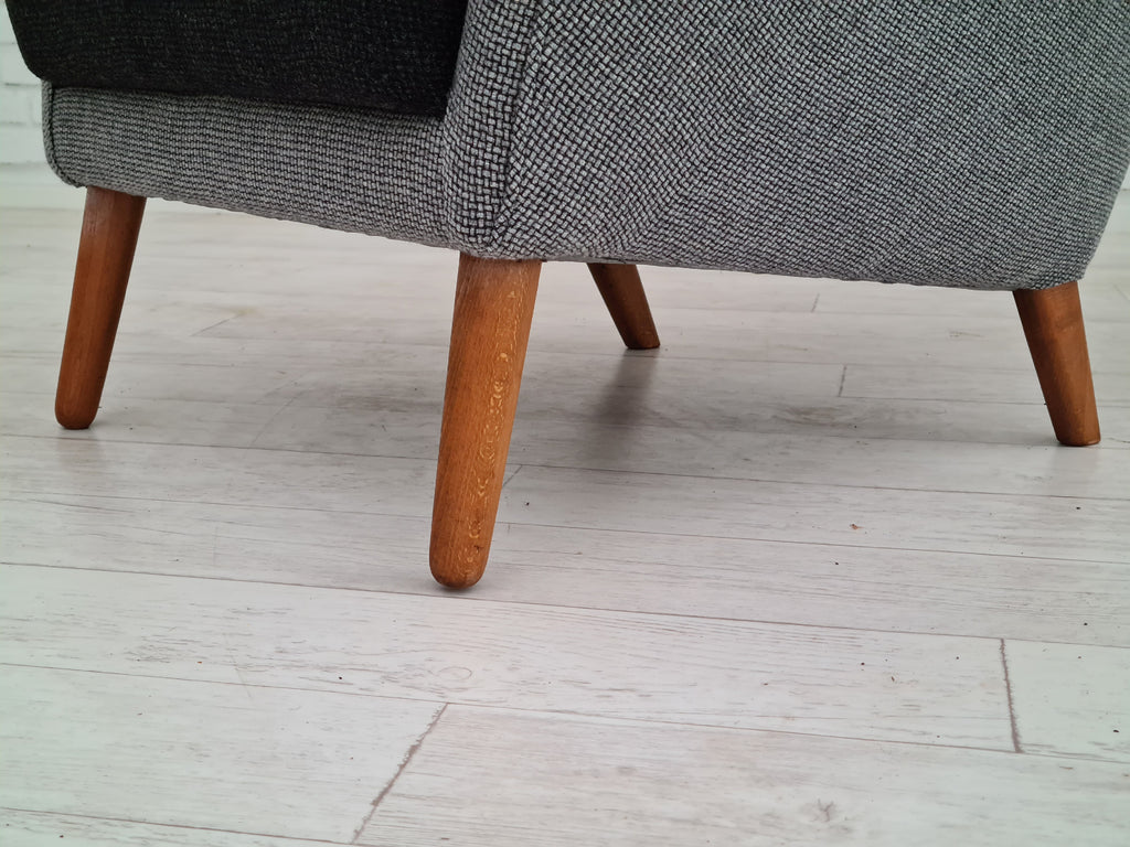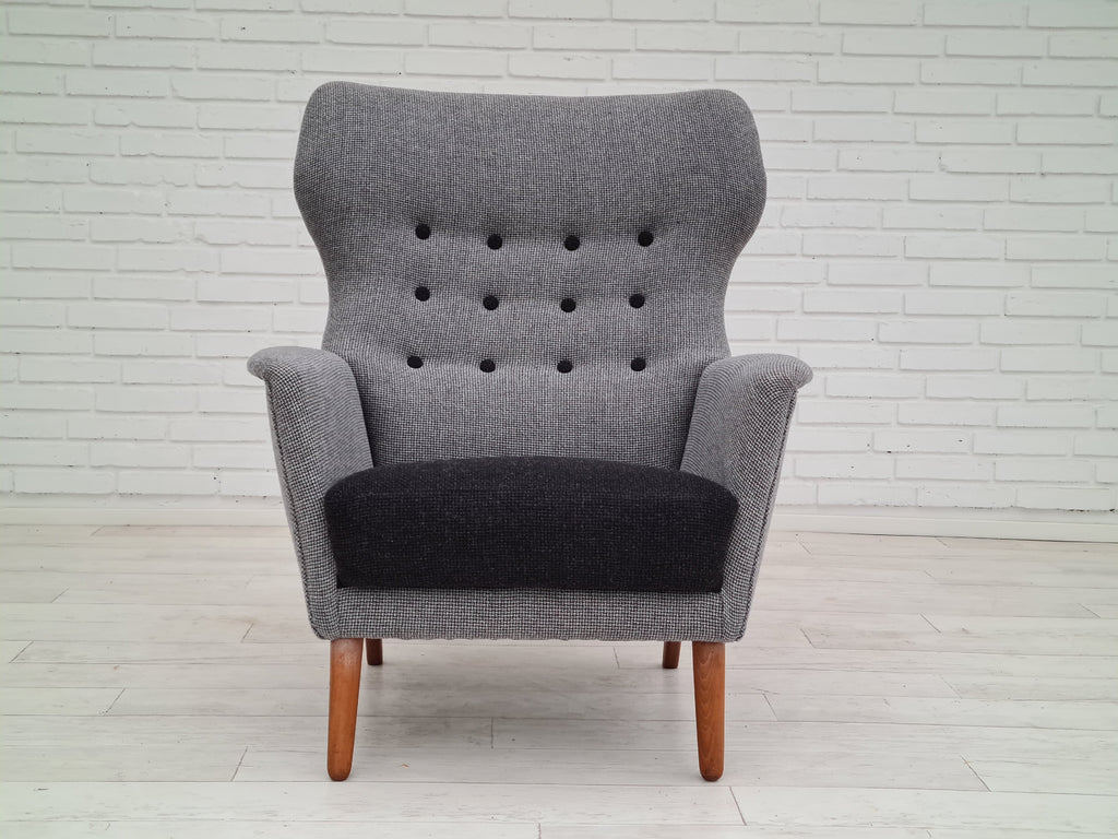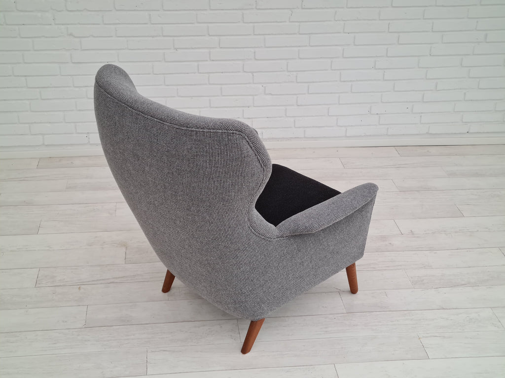 Danish design, 1960s, completely reupholstered relax armchair, quality furniture wool fabric