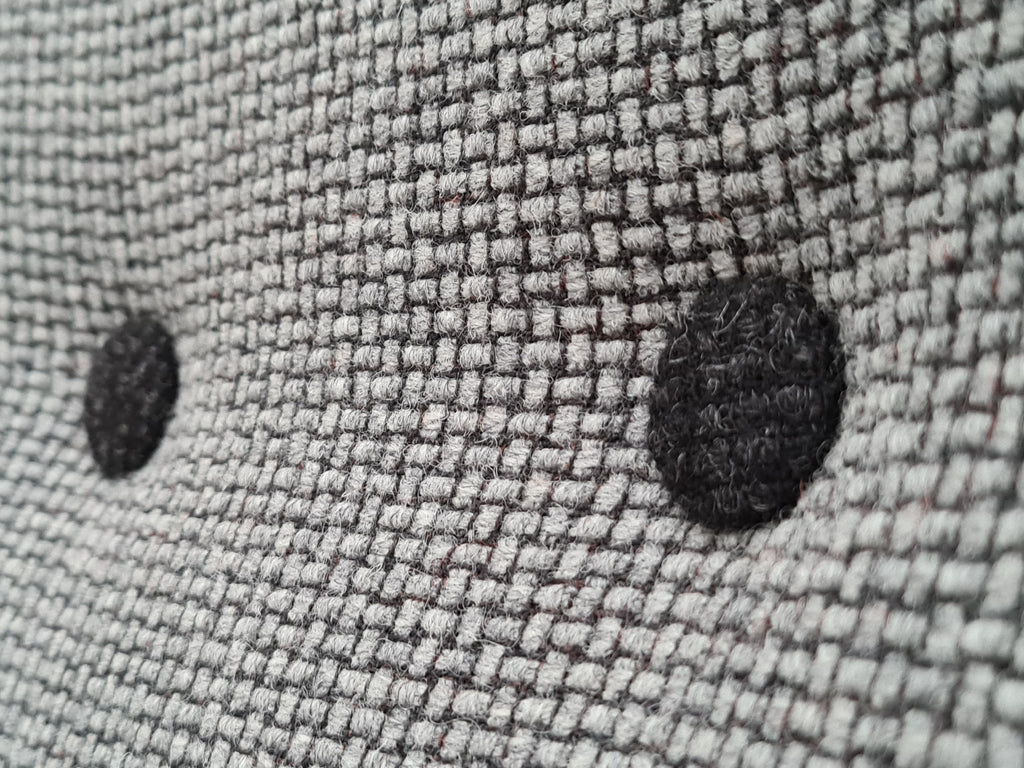 두 가지 색상의 고품질 Nevotex 가구 울 원단. 너도밤나무 다리. 천연 코코넛 매트로 되어 있으며, 시트의 스프링은 오리지널 그대로 입니다.